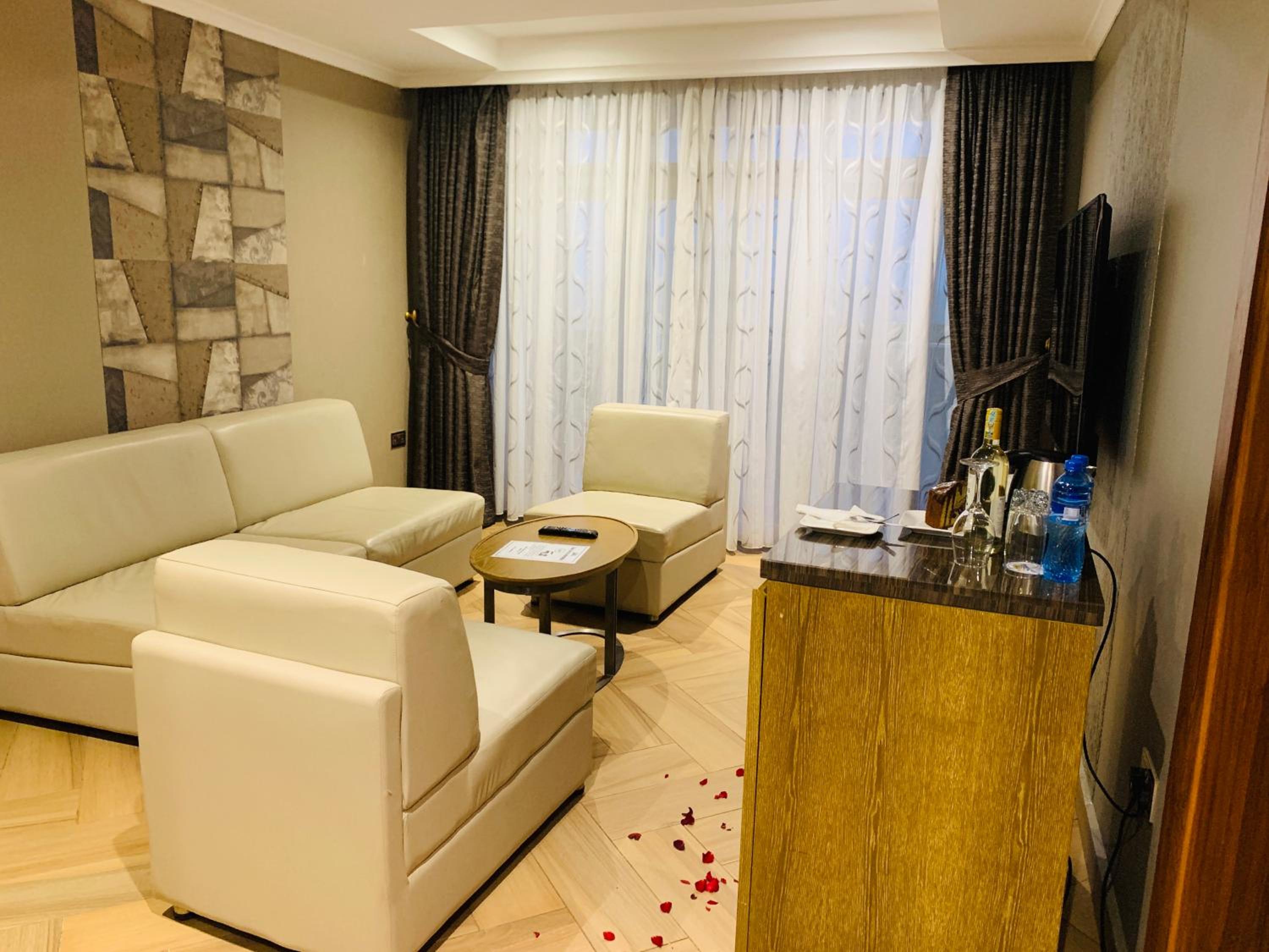 Wir hatten eine Suite gebucht. Die Lage des Hotels ist nicht direkt am Meer. Der Hotel-Name verwirrt. Aber man hat einen guten Blick aufs Meer.