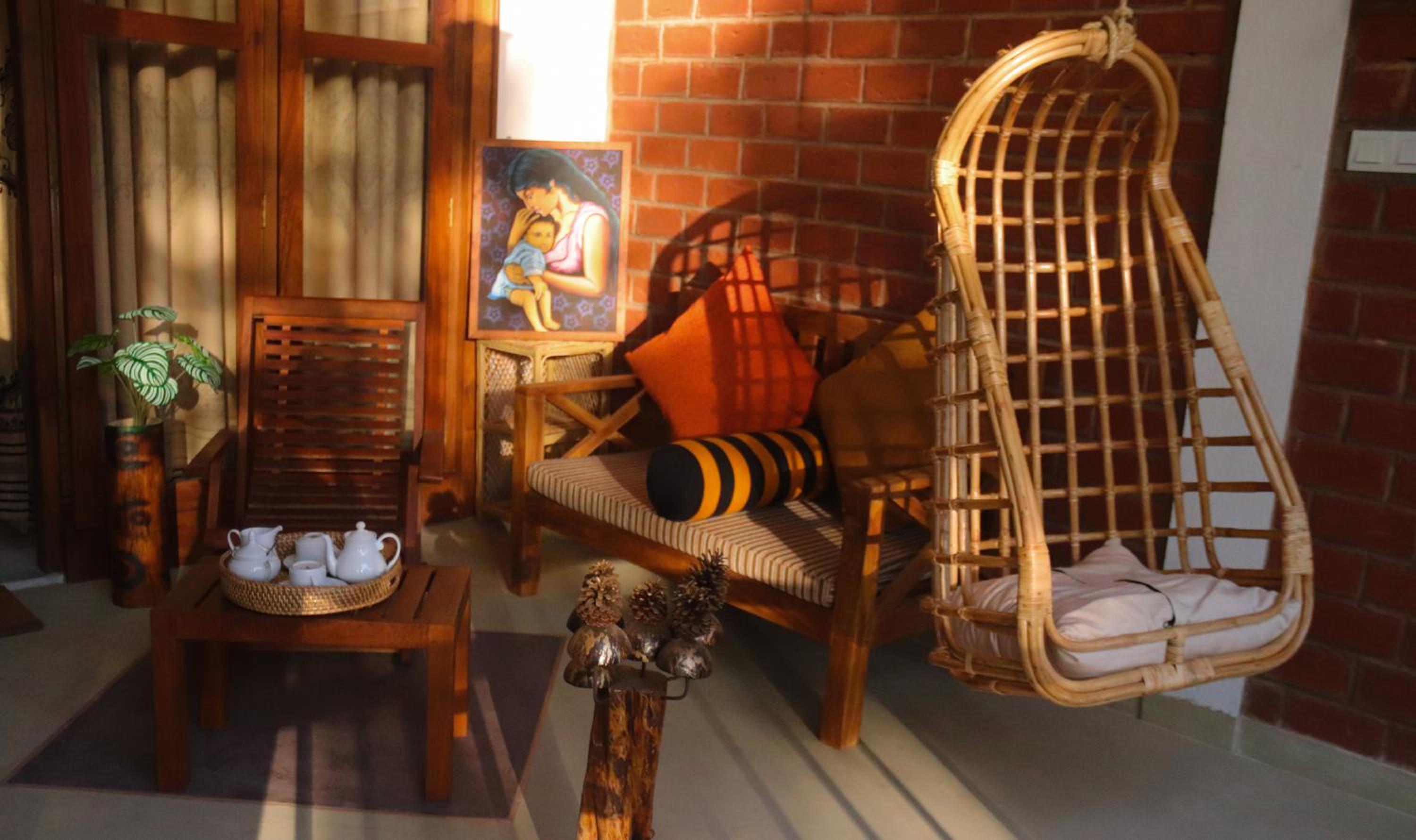 Outside each room are bean bags; a swing seat and a sofa. They have made it very comfortable to be on the baloney watching the sun setting behind the mountains.