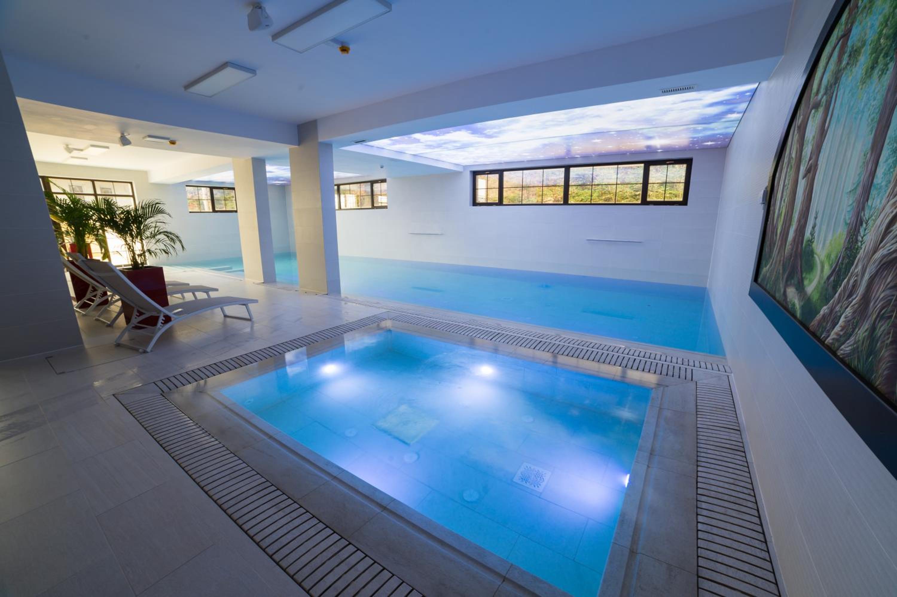 Indulge in relaxation at the SPA center, equipped with 2 swimming pools, saunas, jacuzzi, and a fitness room. Unwind in the hammam, hot tub, or sauna, and rejuvenate in the serene garden area.