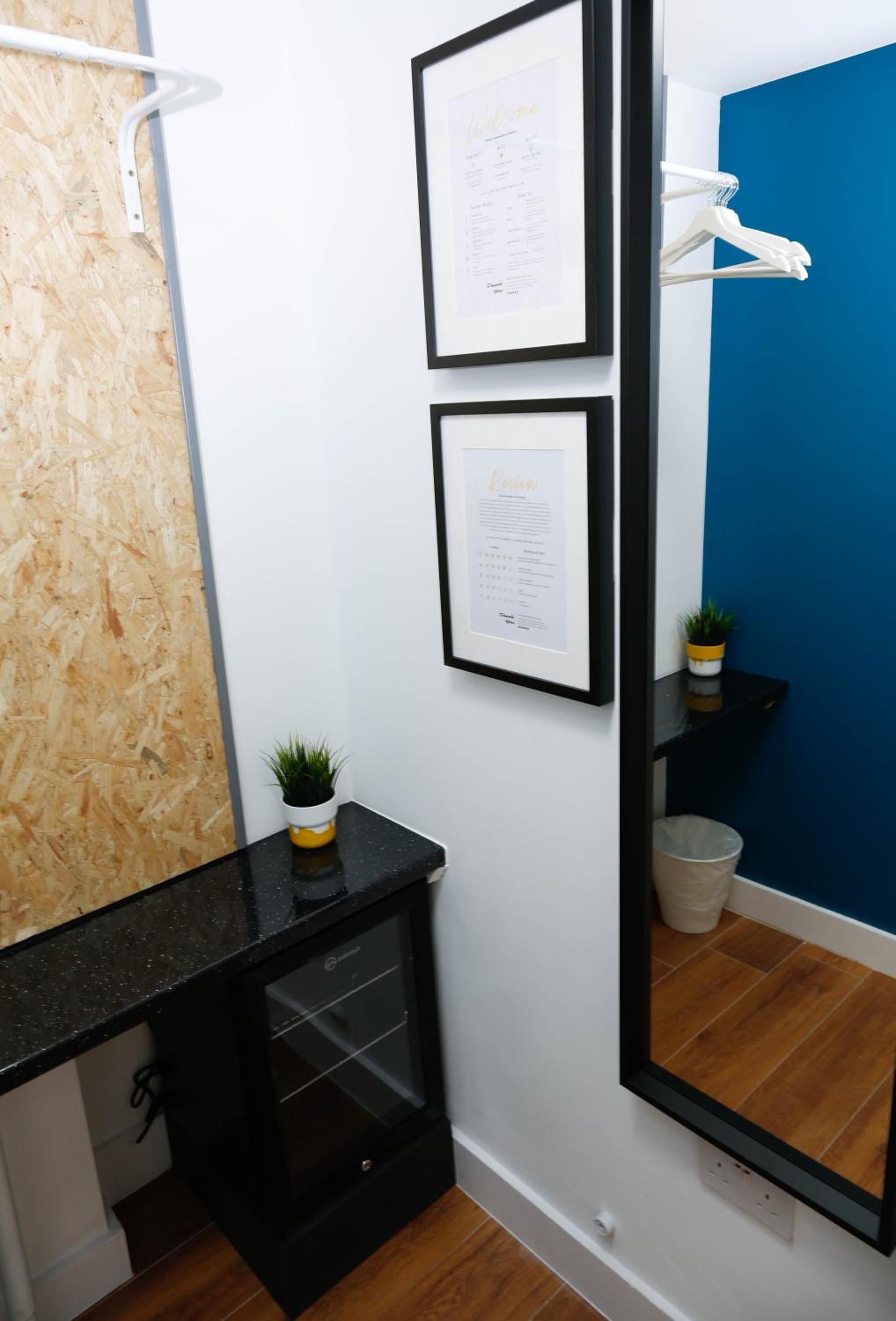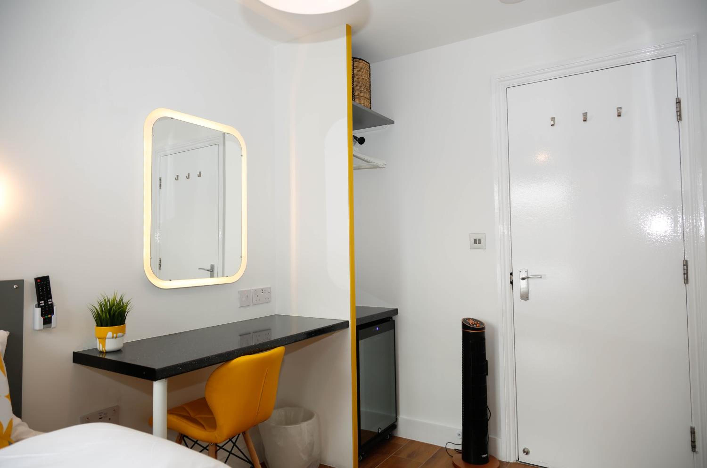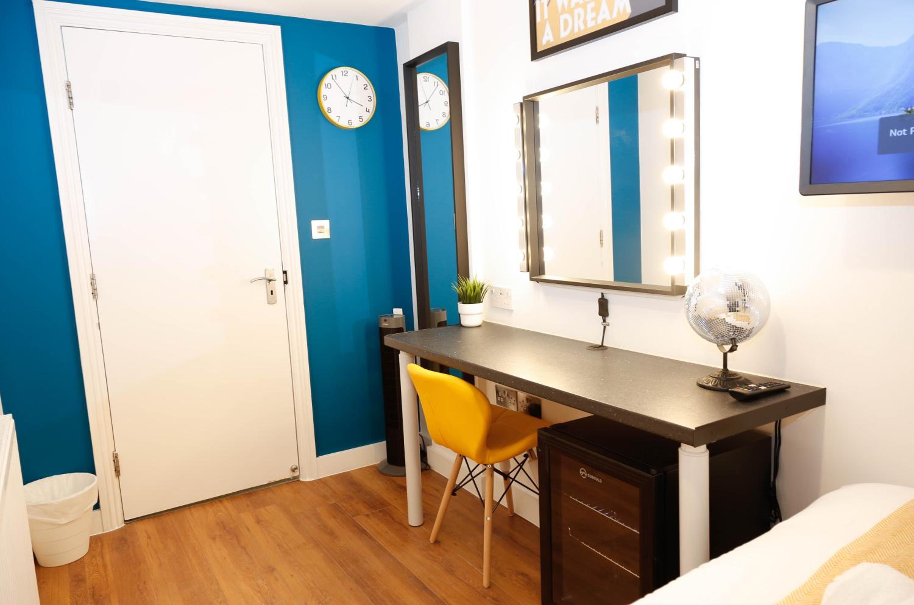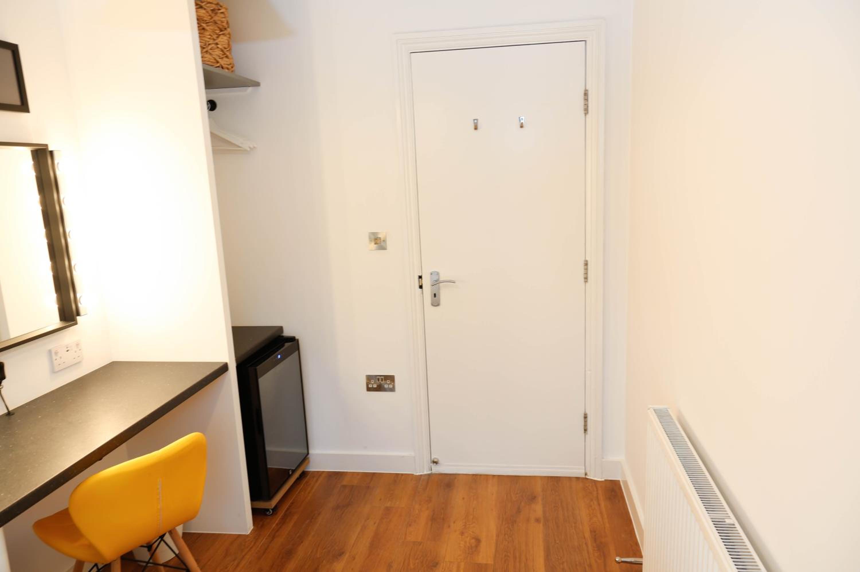 A tea and coffee and making facility would have been the perfect additional touch. Really the area was the only thing that let it down but it was exactly what we knew we were paying for. Location by the tube and amenities was super.