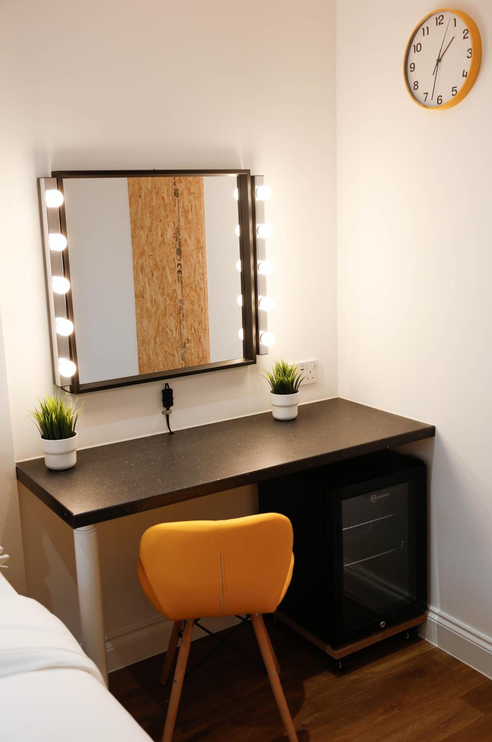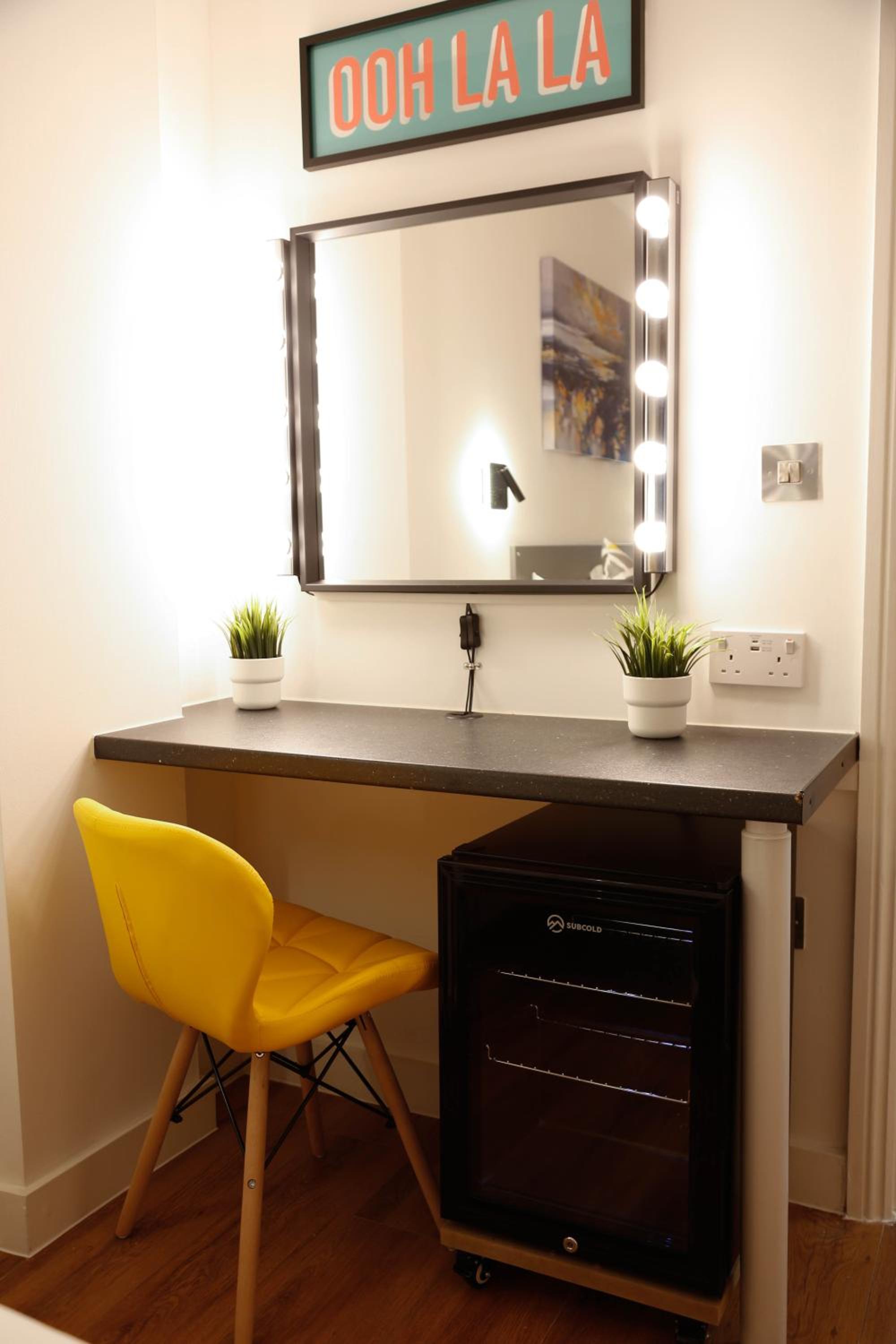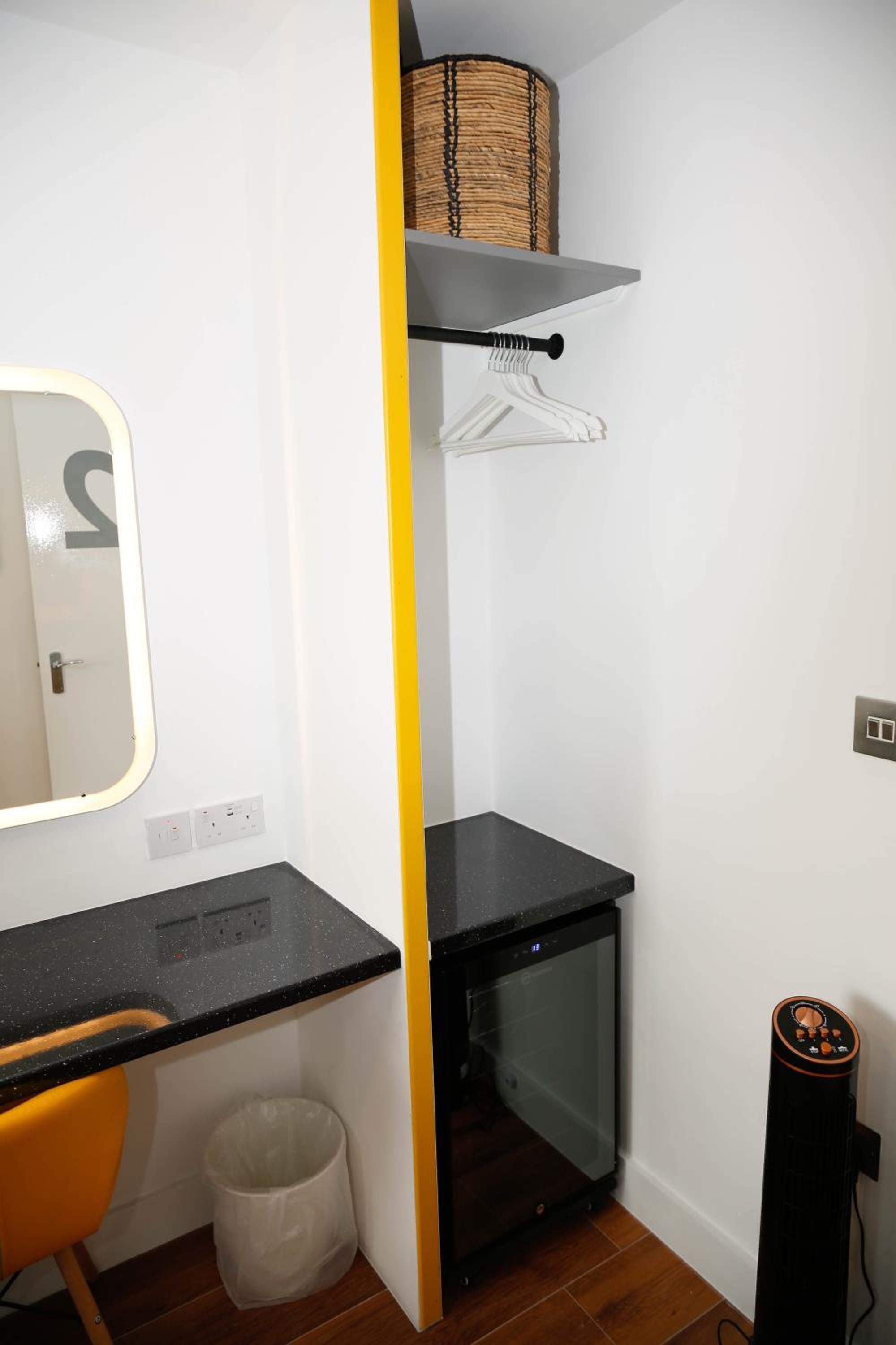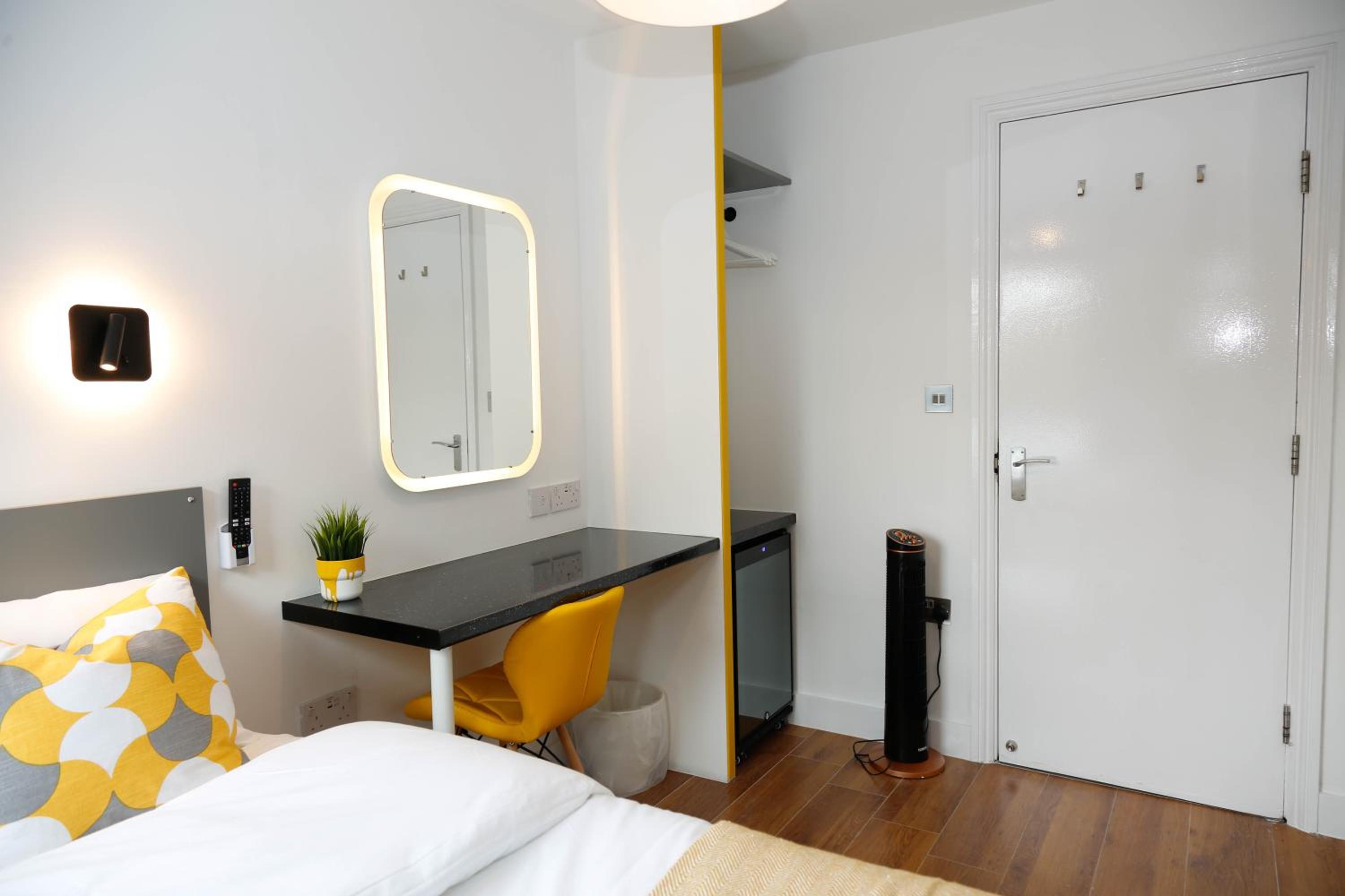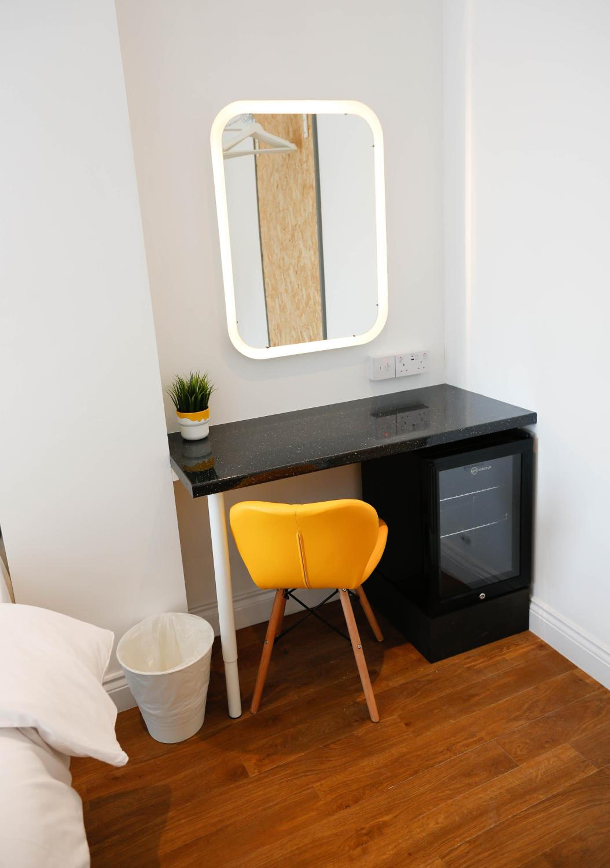 A tea and coffee and making facility would have been the perfect additional touch. Really the area was the only thing that let it down but it was exactly what we knew we were paying for. Location by the tube and amenities was super.