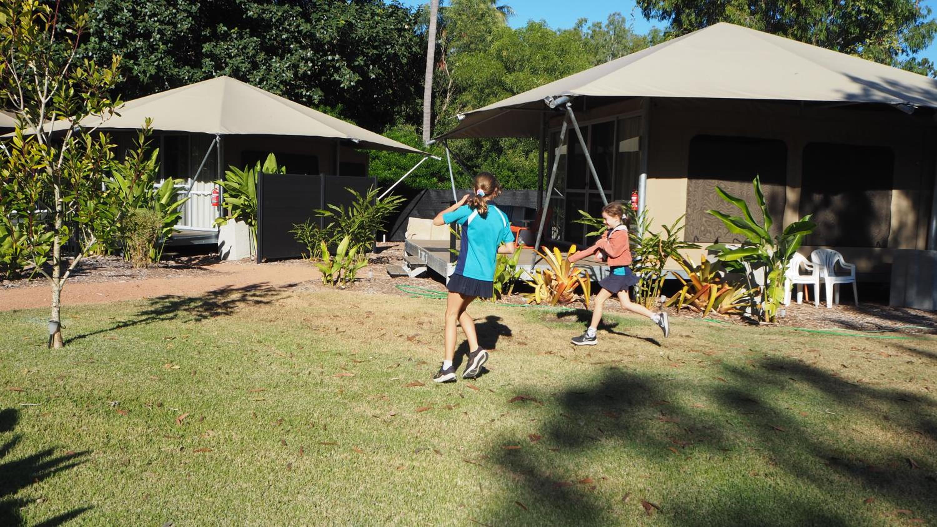 I loved the camping feel, with a he luxury of a hotel. solid floors, nicely equipped bathroom, microwave fridge toaster and jug - and although we didn’t need it, ceiling fan and air-conditioner. Loved sitting by the campfire. Lovely garden and quiet setting . Would definitely stay again.