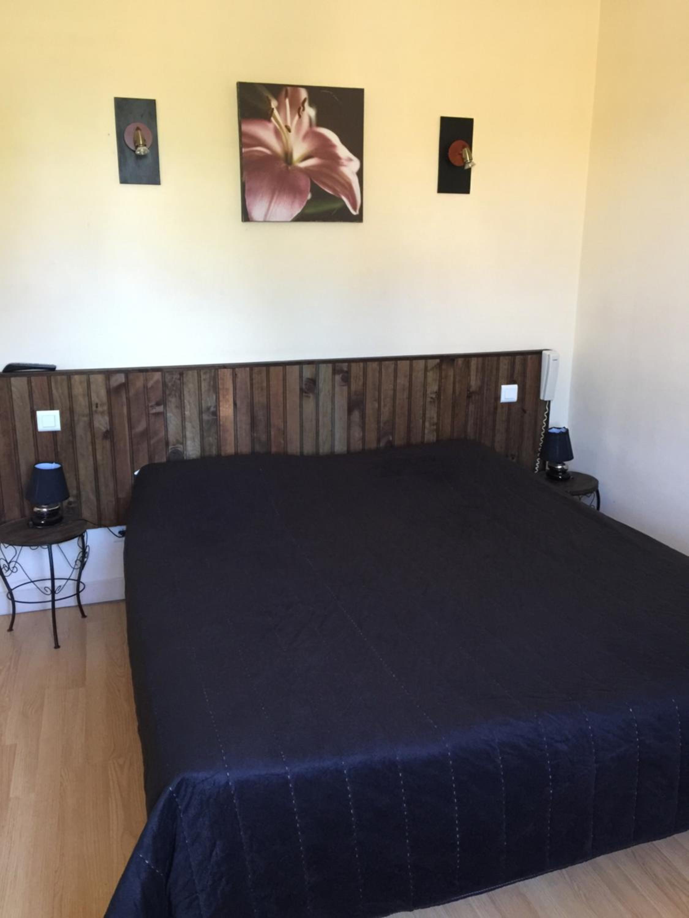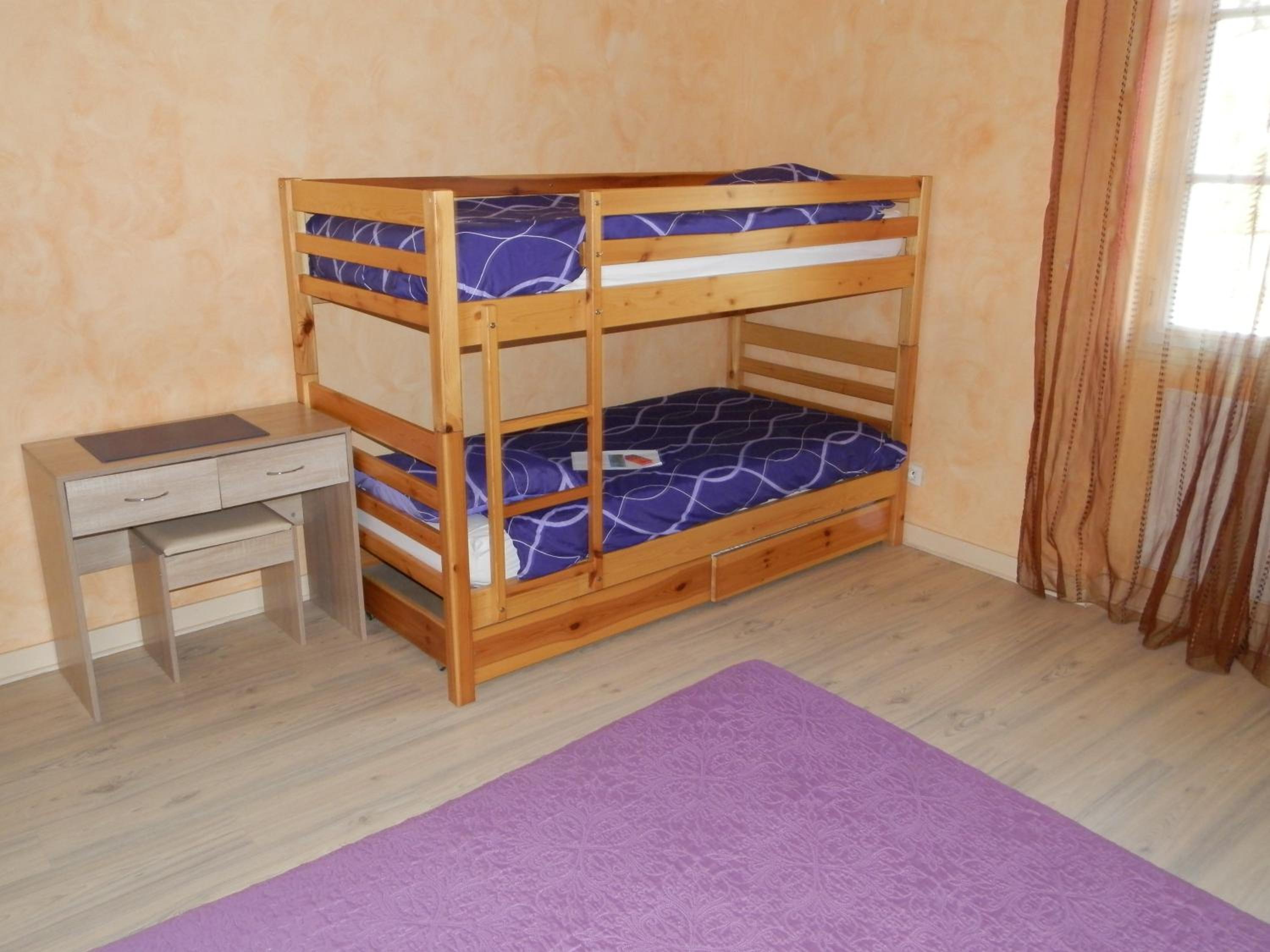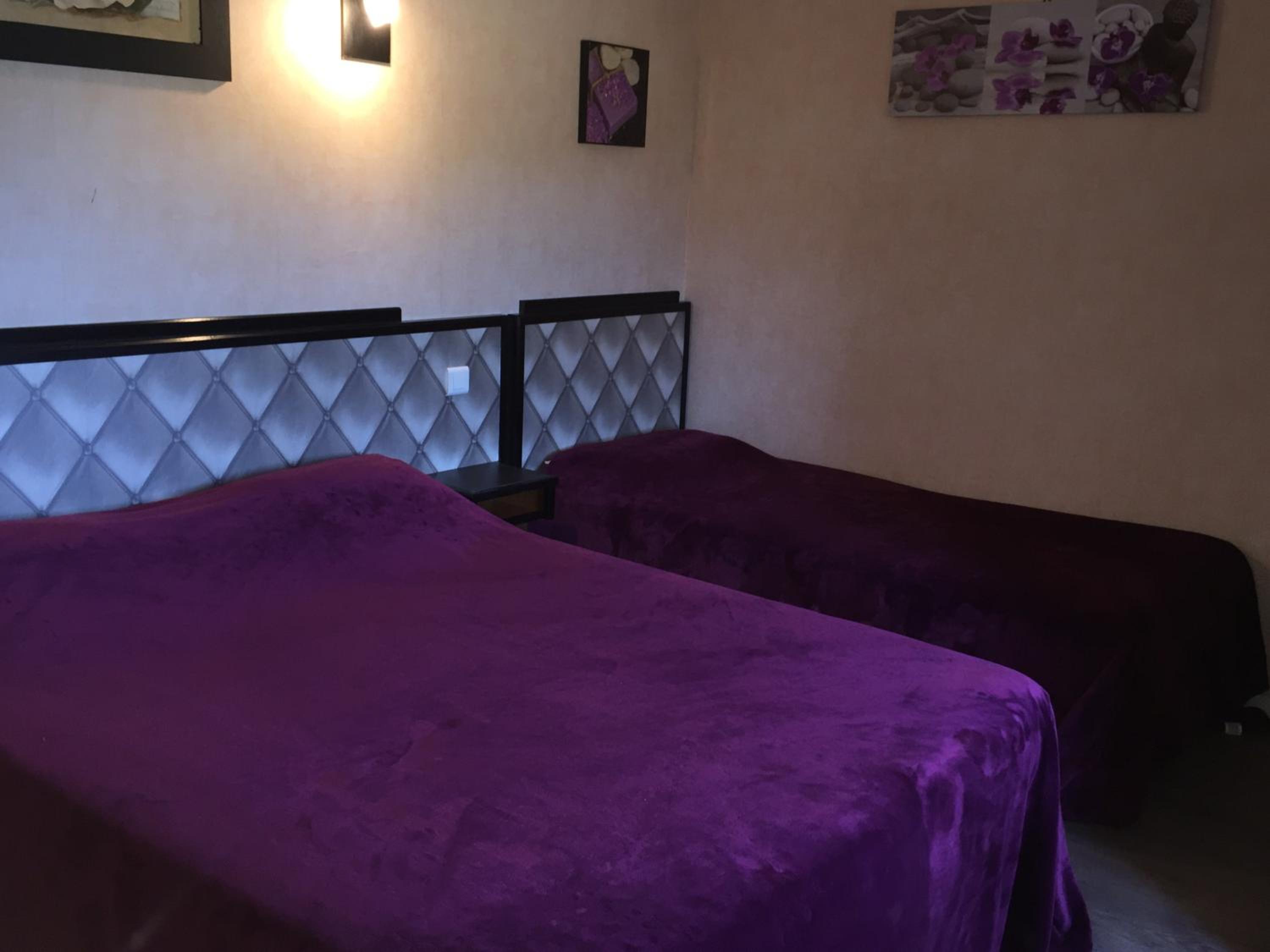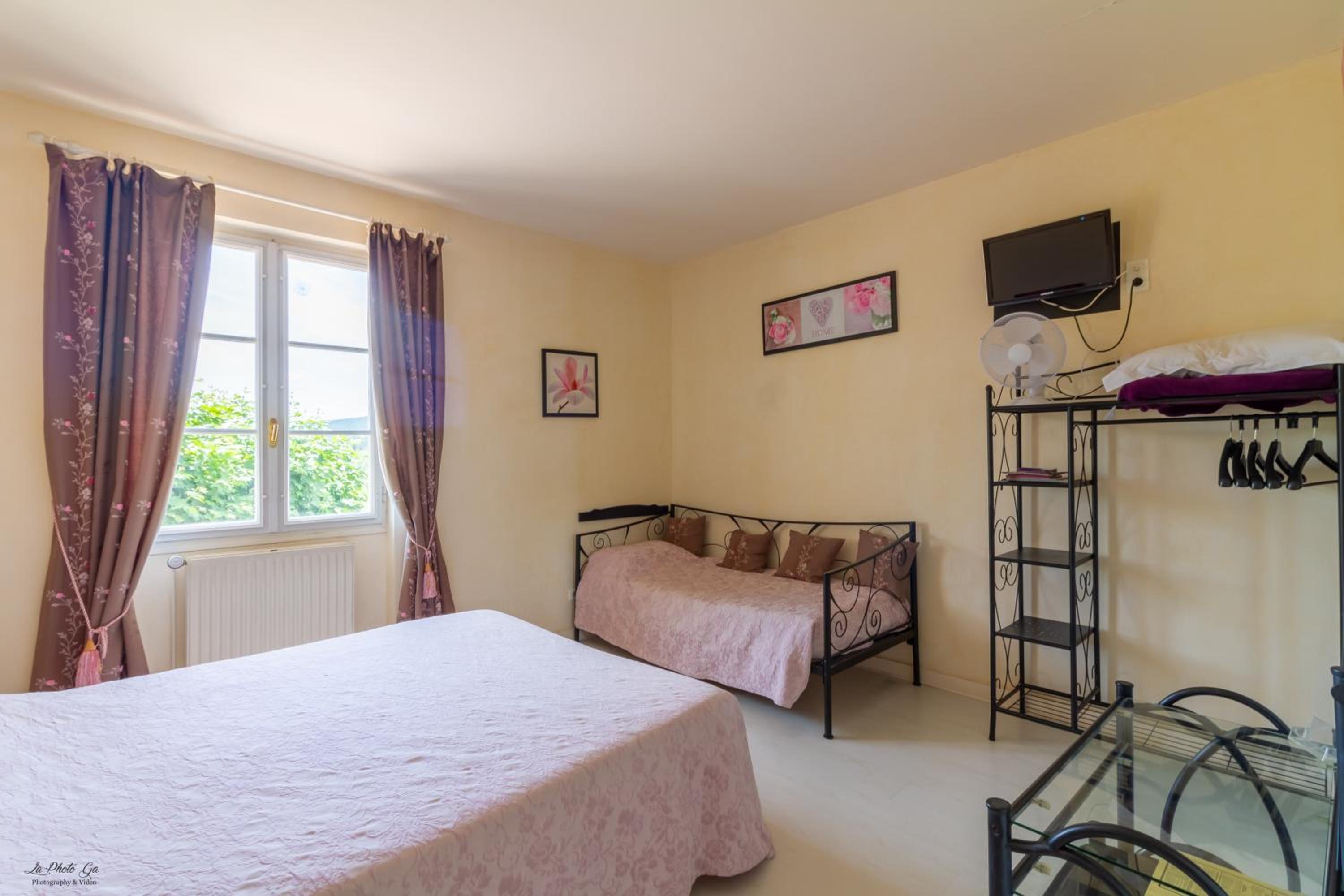 Une chambre 3 lits, mais le 3eme lit ne peu pas voir la tv, car le lit est en dessous, la tv plus petite qu un écran de pc, pas de connexion internet.