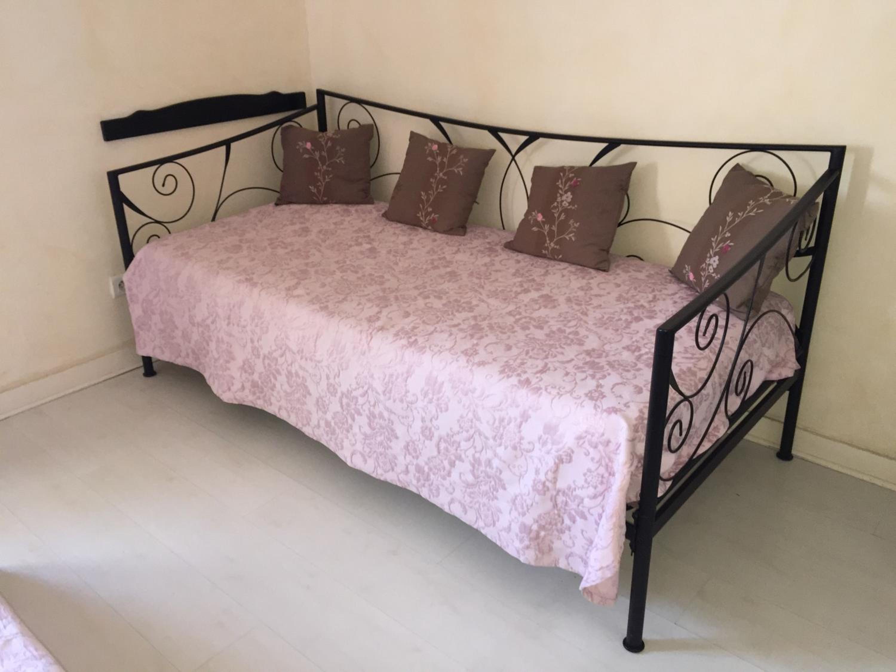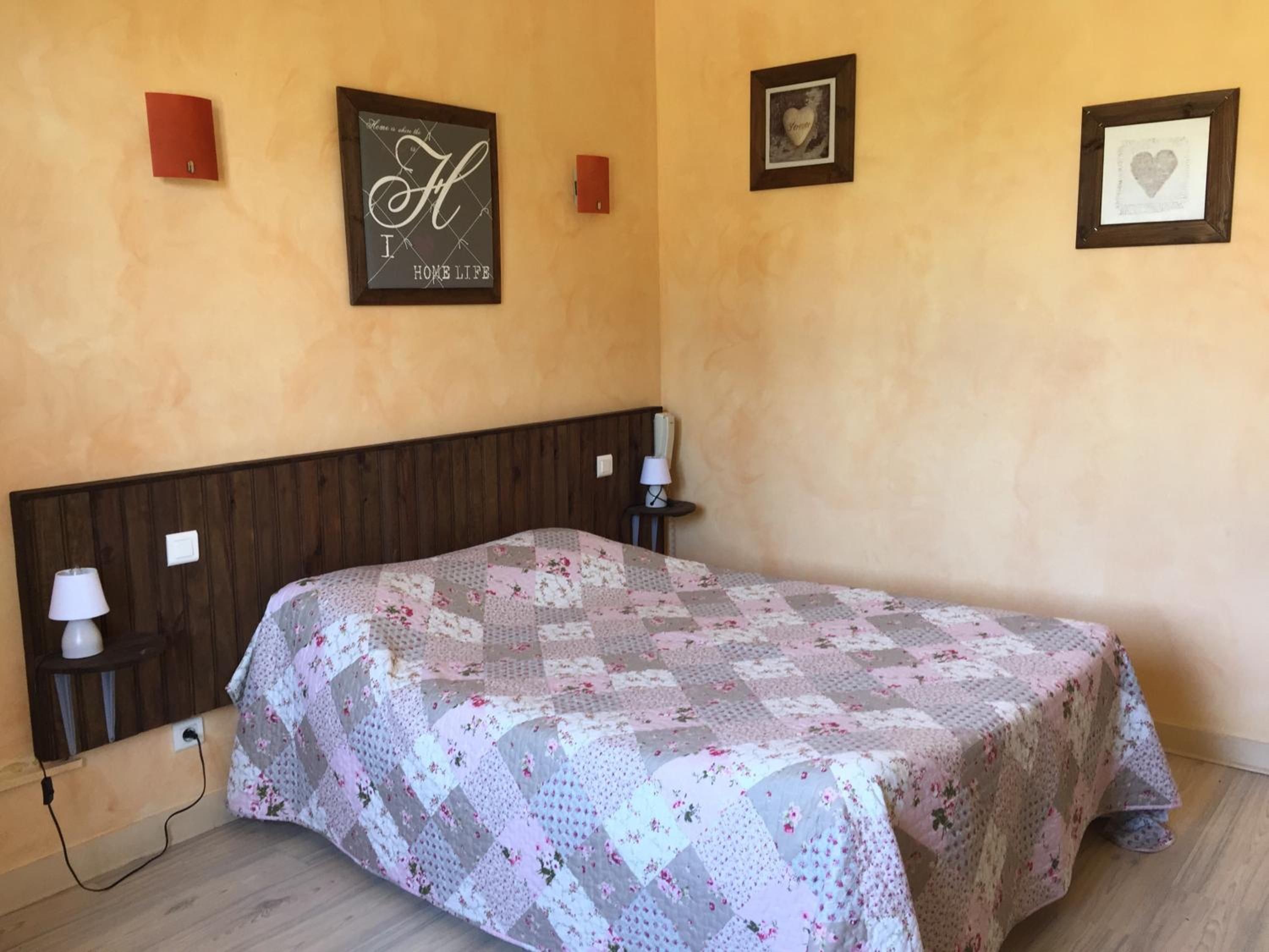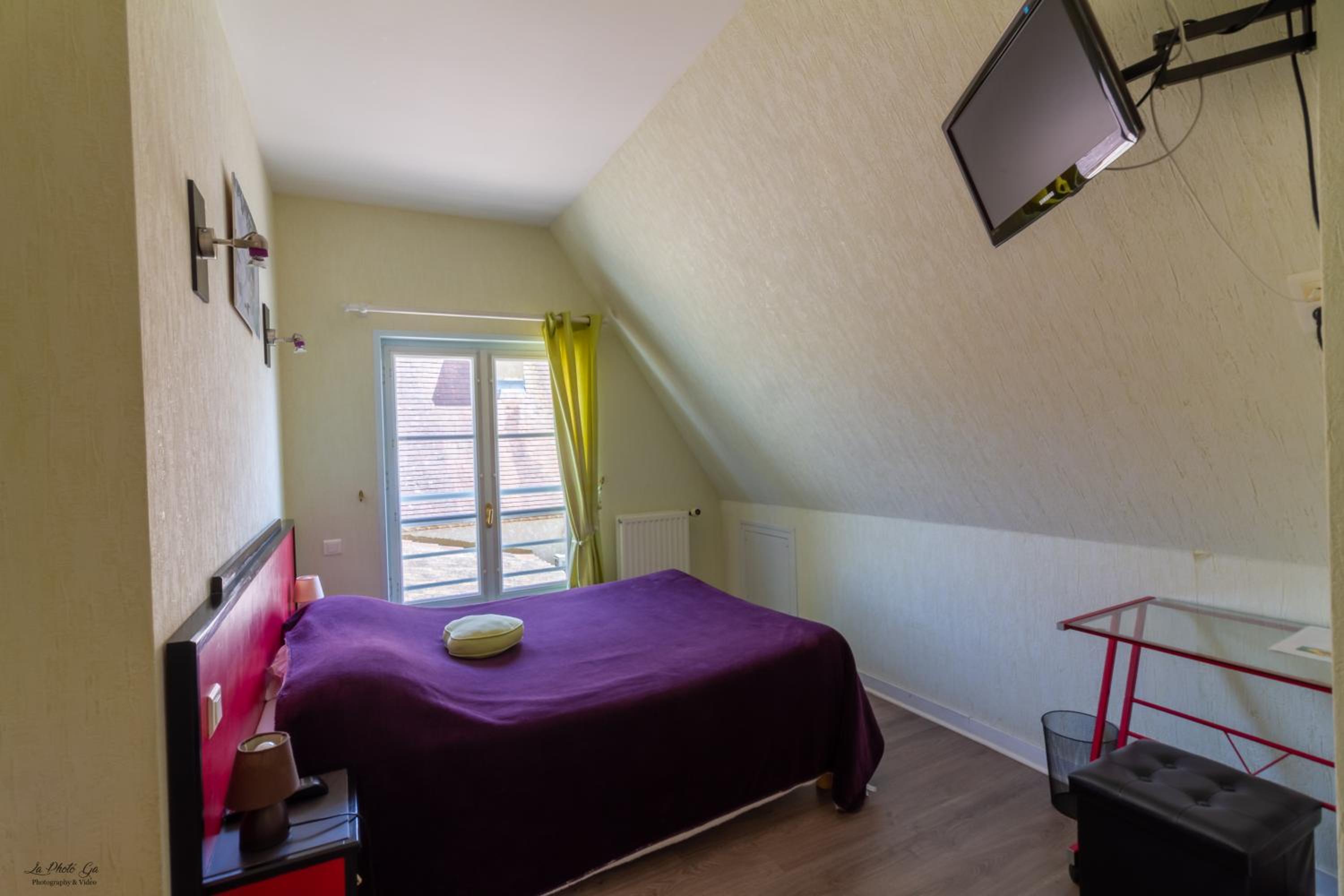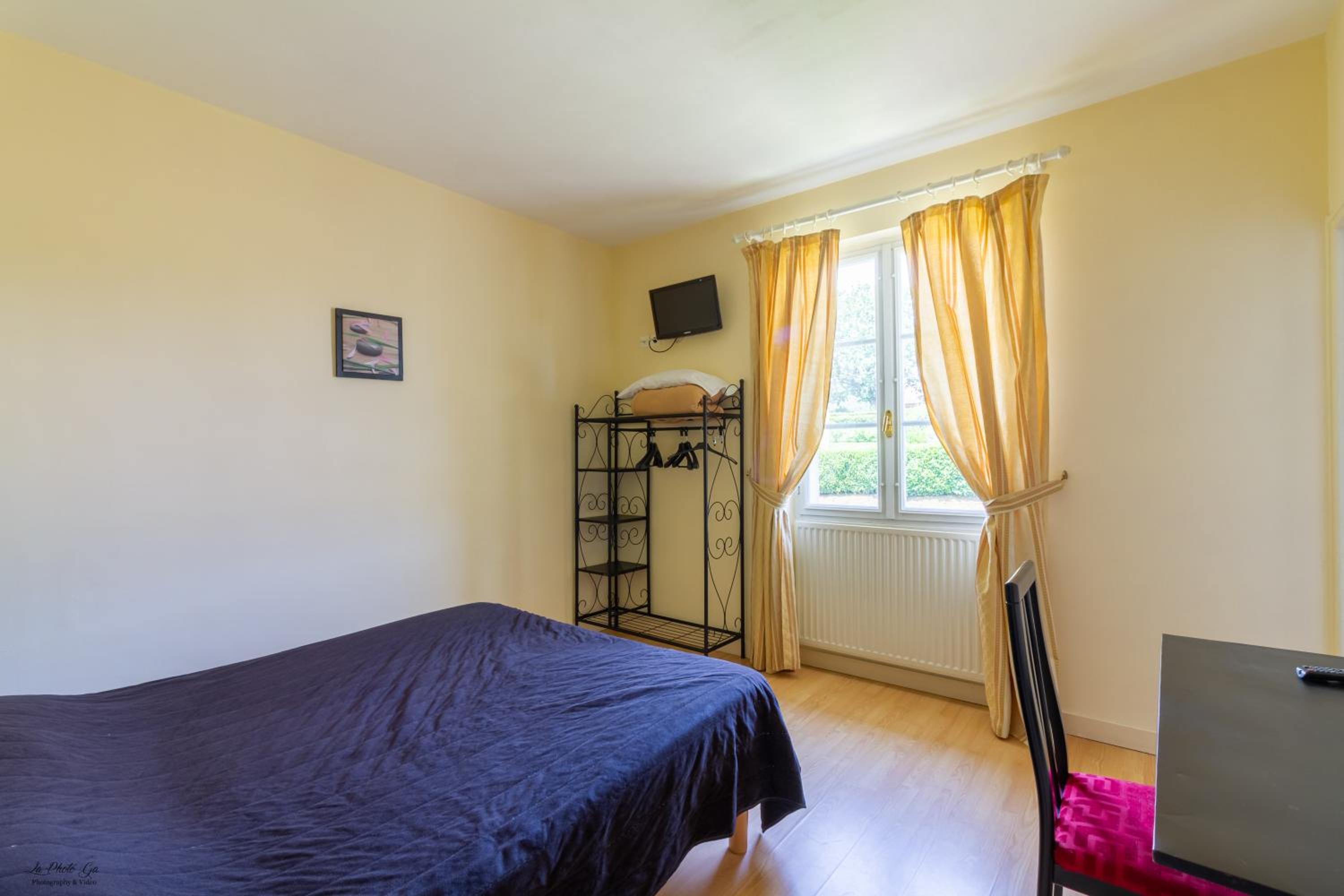 Une chambre 3 lits, mais le 3eme lit ne peu pas voir la tv, car le lit est en dessous, la tv plus petite qu un écran de pc, pas de connexion internet.
