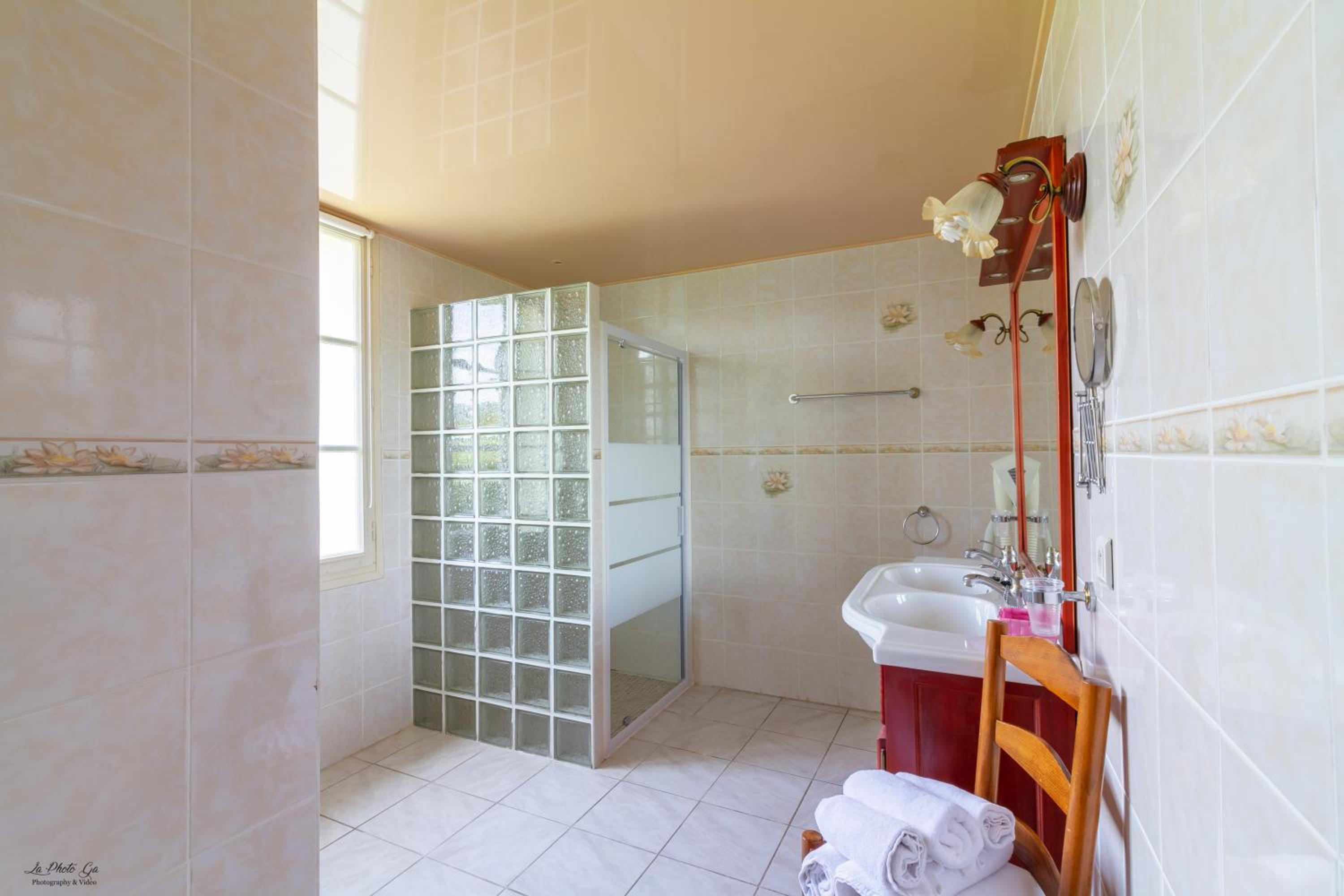chambre sous les combles; les clients booking n'ont pas les mêmes chambres; pas de tables de chevet; wifi très faible voir inexistant; robinetterie qui arrose par tout; dans la douche pas de support pour les produits de toilette; revoir la robinetterie