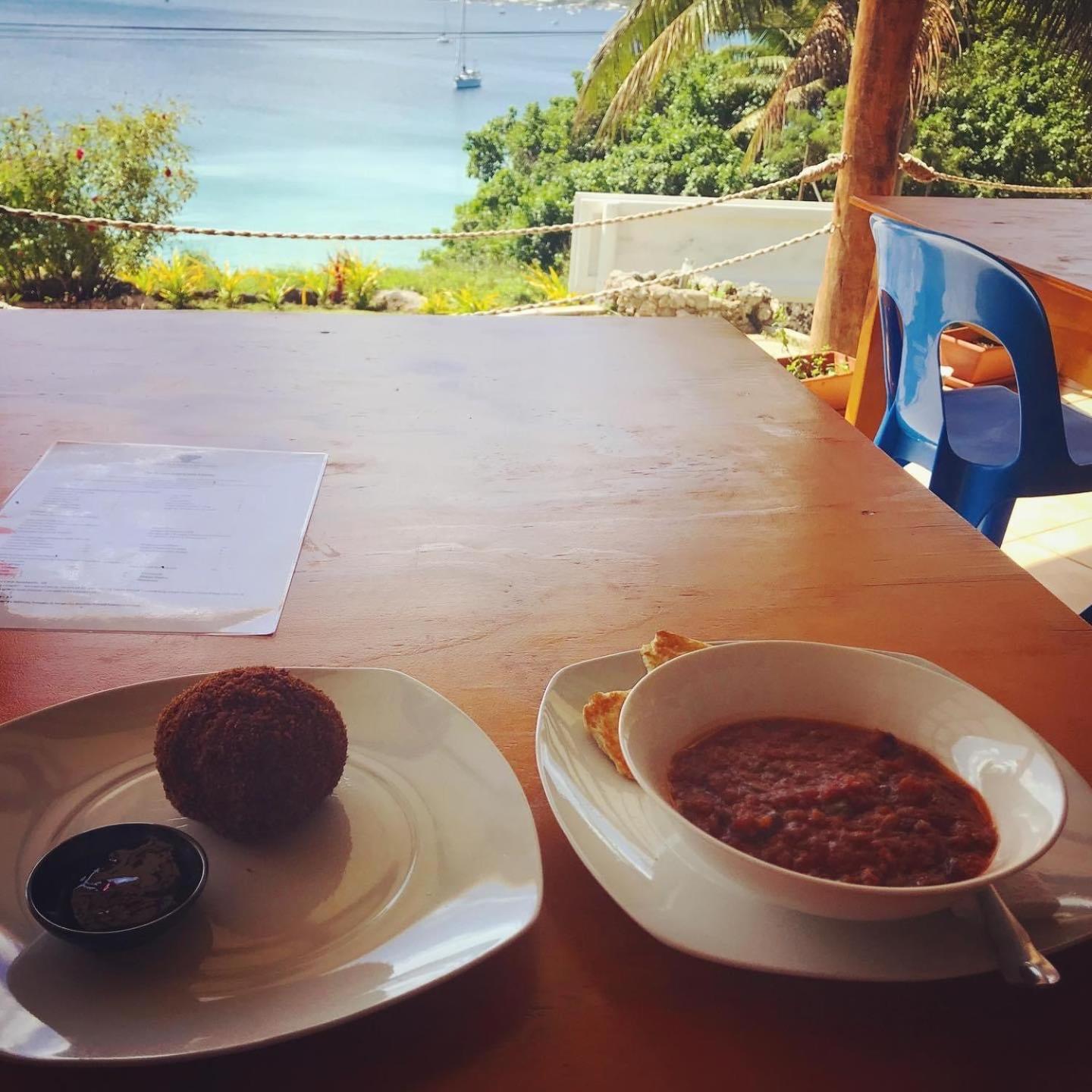 The food at the restaurant is the best I've had in the south pacific. Cocktails at sunset over the harbor was a highlight.