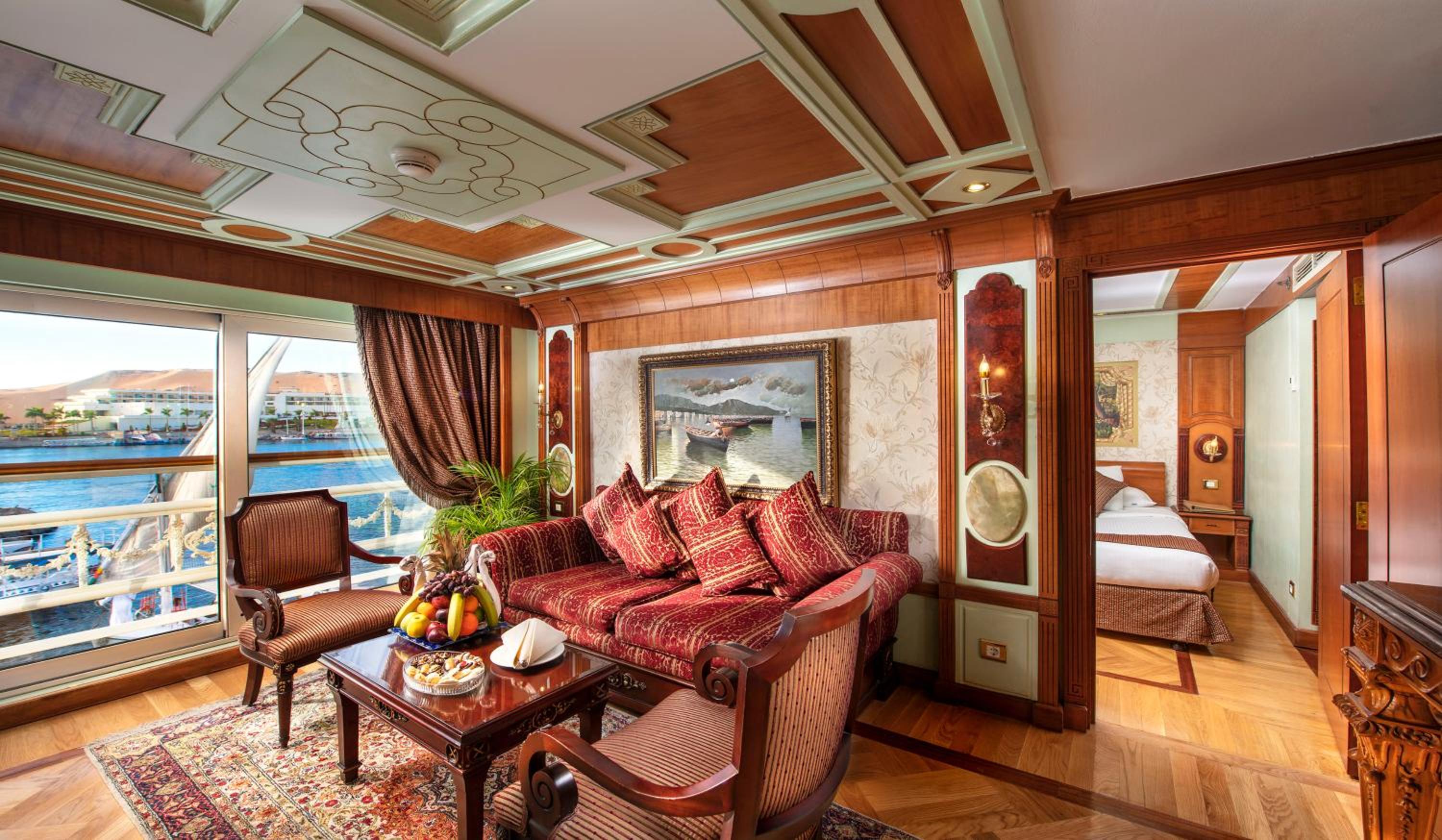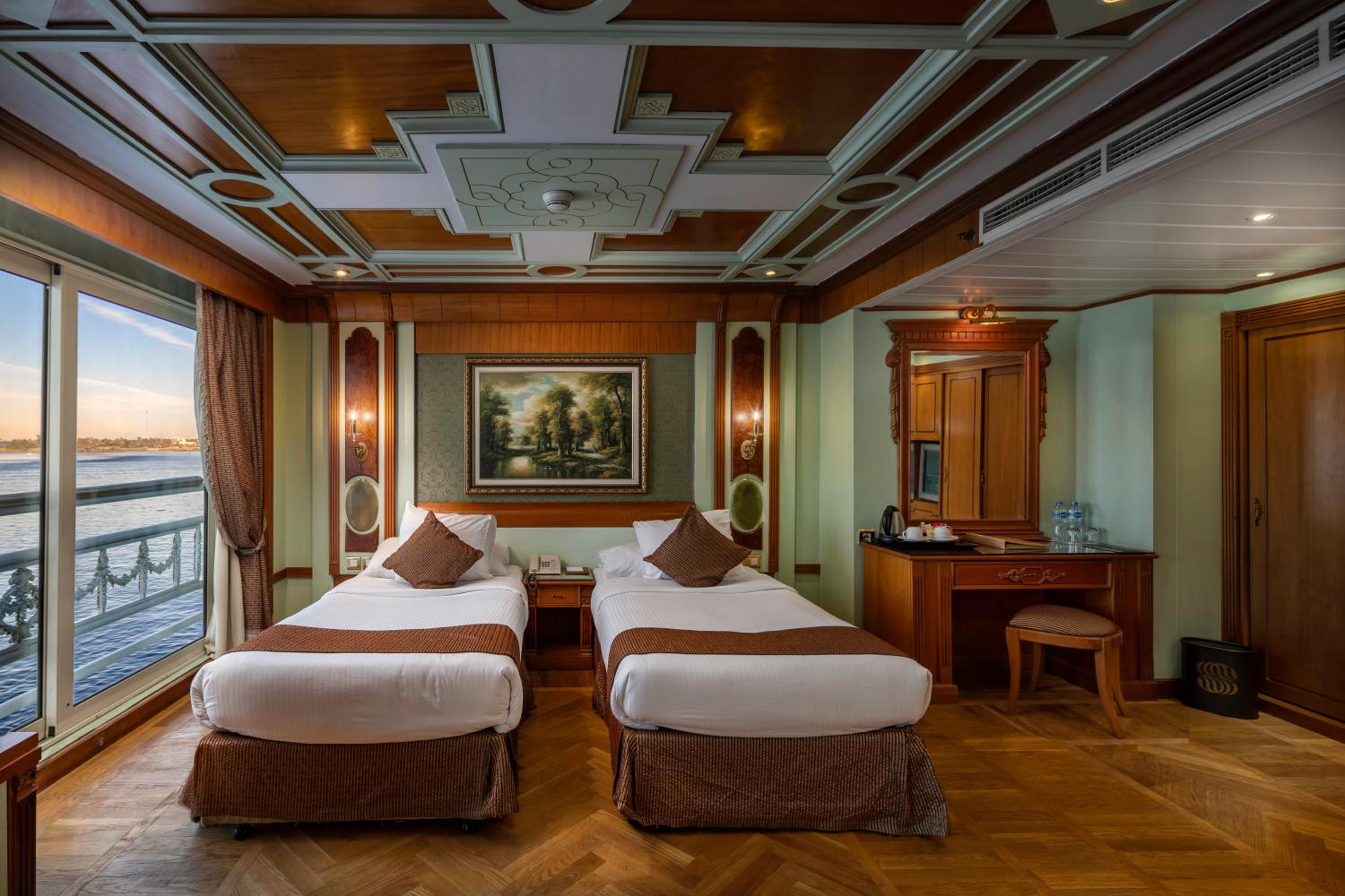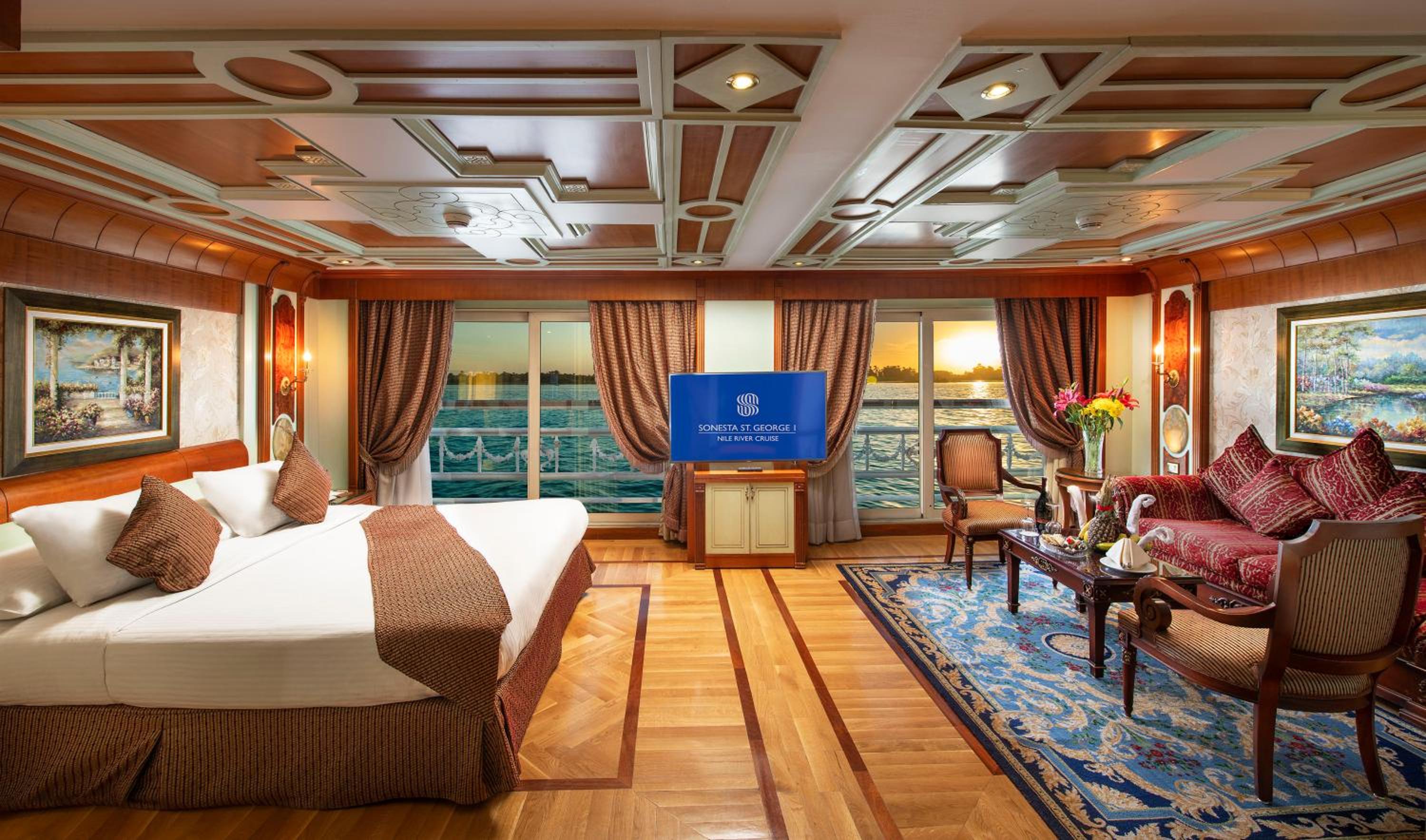 Experience 5-star luxury at Sonesta St George Nile Cruise - Luxor to Aswan 4 Nights from Monday to Friday. Wake up to breathtaking mountain views in our air-conditioned rooms equipped with modern amenities. Unwind in the spa and wellness centre, including a fitness centre, outdoor pool, and sauna, or relax in the shared lounge and bar.