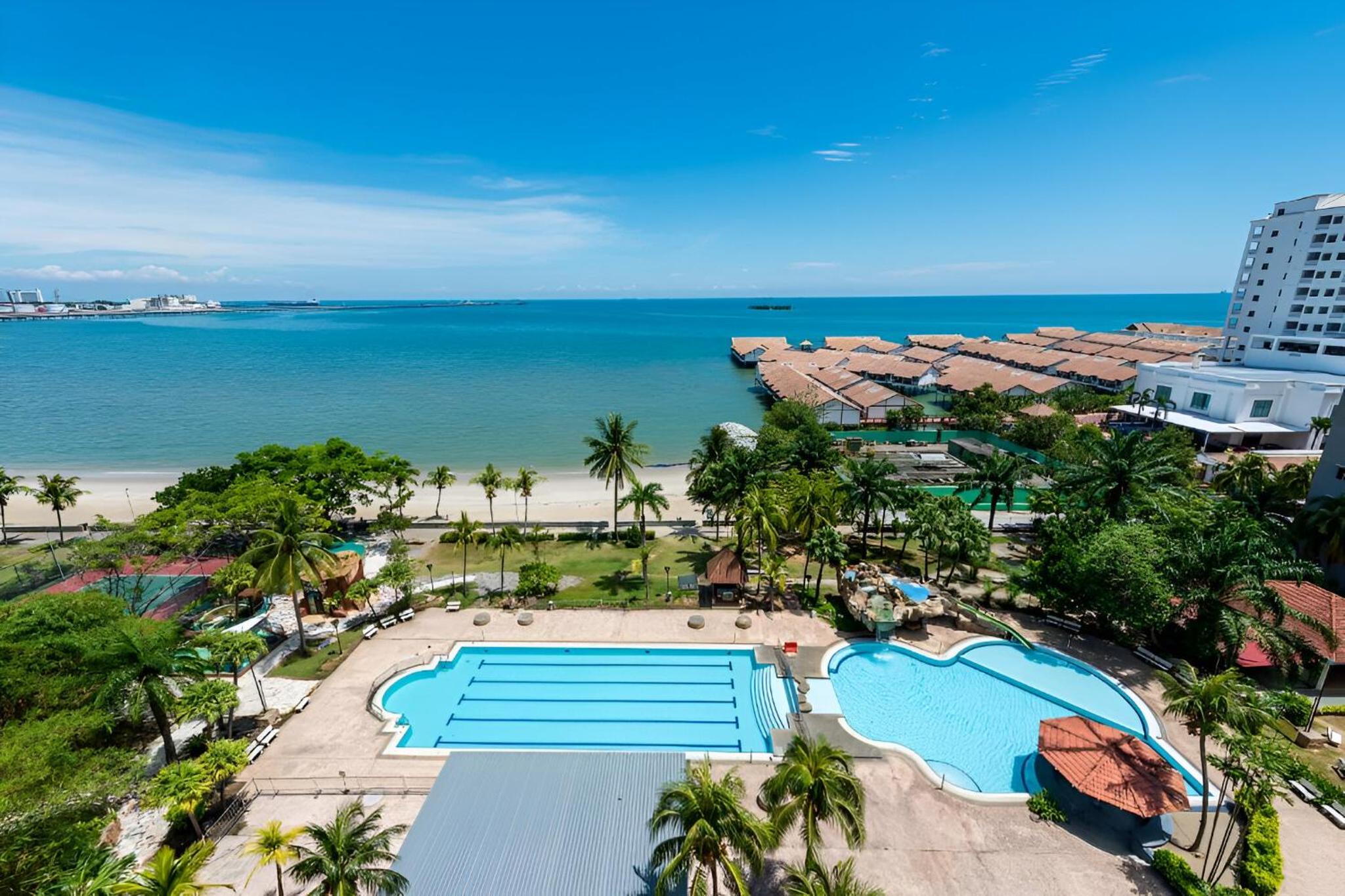 Indulge in the breathtaking pool views and private beach area at this beachfront property in Port Dickson. Enjoy a seamless blend of comfort and luxury at the 3-bedroom seaview condo with modern amenities and a spacious balcony offering panoramic sea views.