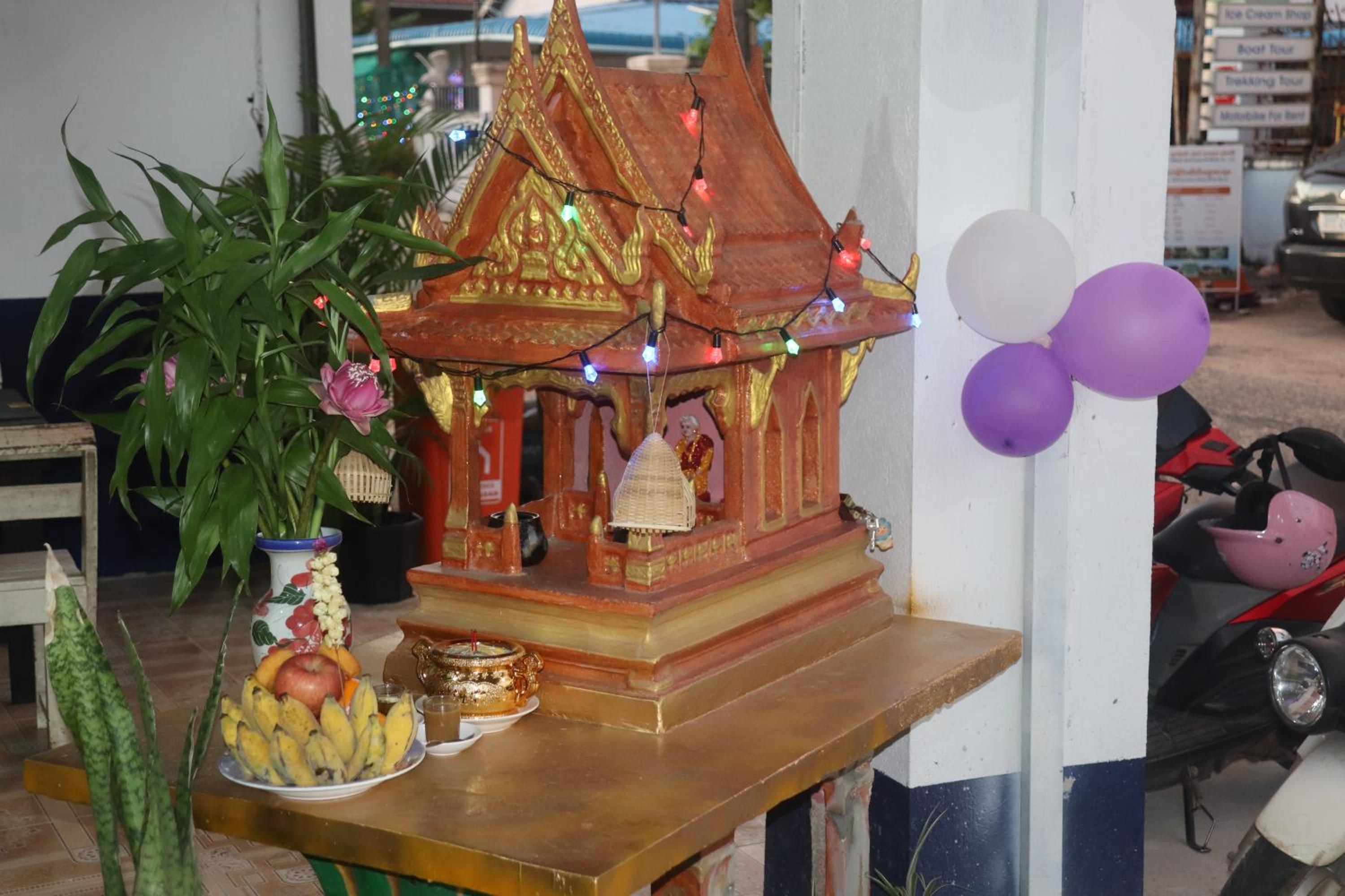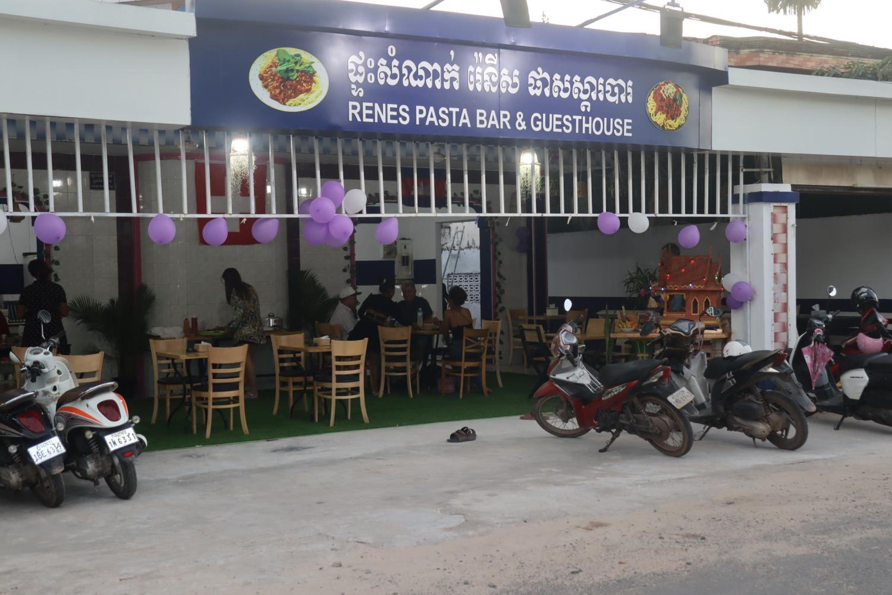 Experience comfort and style at Rene's Pasta Bar & Guesthouse in Koh Kong. Each room is equipped with modern amenities including a flat-screen TV, a private bathroom, and a cozy bed to ensure a relaxing stay.