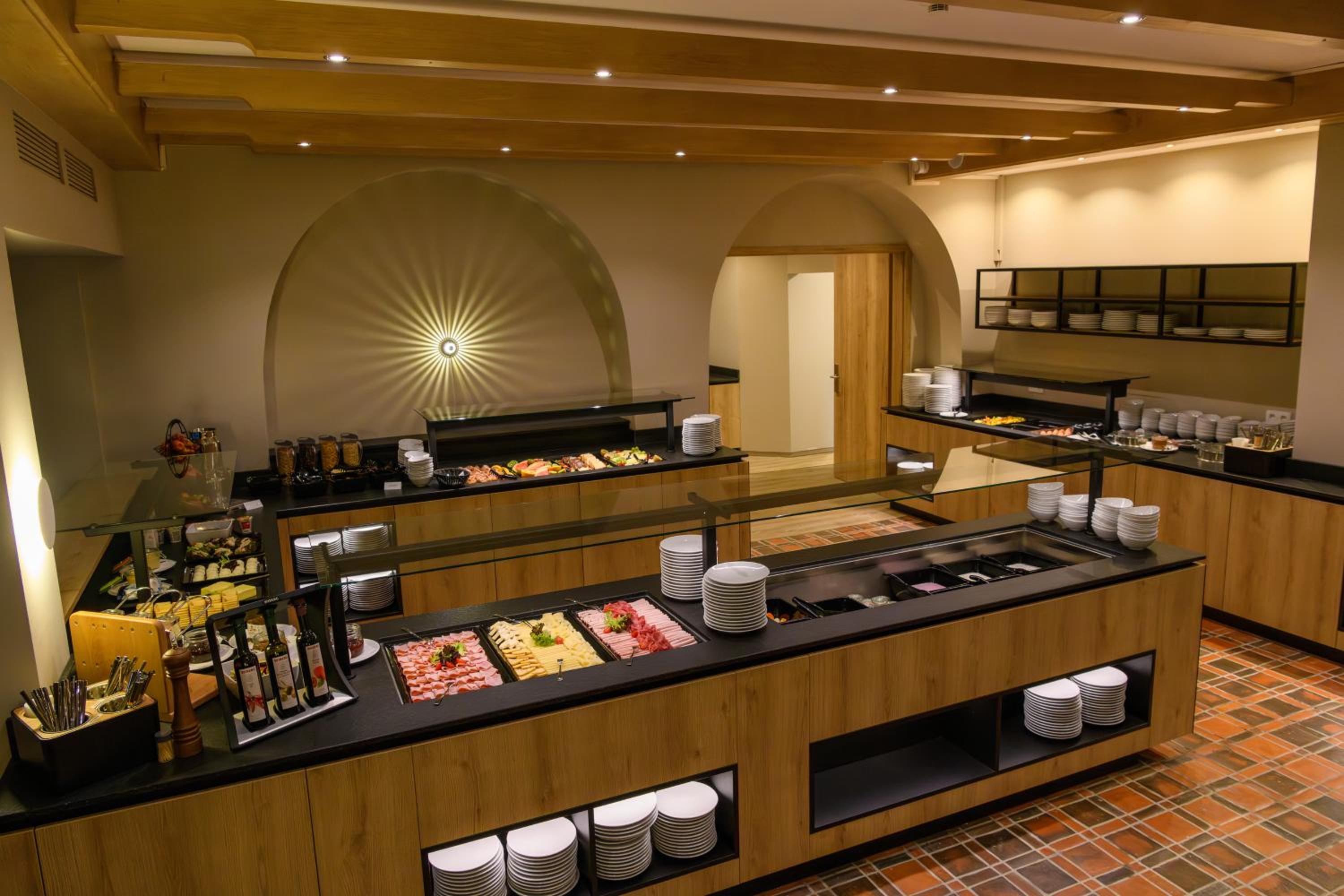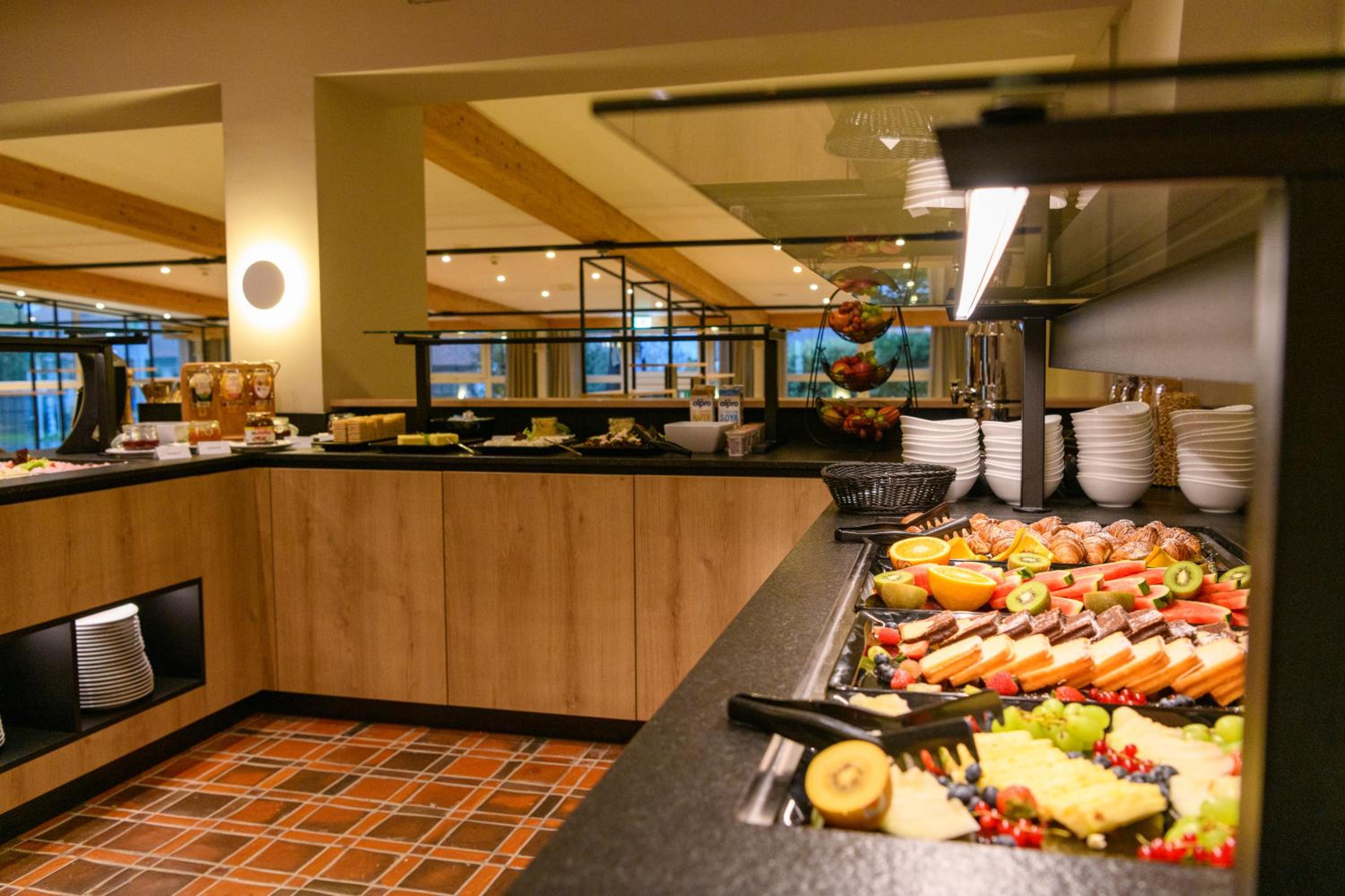 Beim All-Inklusive Paket sind Getränke nur bis 20.00 Uhr inbegriffen. Der Nachmittagssnack bestand lediglich aus den gleichen Kuchen wie beim Frühstück oder Abendessen und einer heißen Kartoffelsuppe (bei 32 Grad Außentemperatur). Für den Sommer ist das Hotel ungeeignet. Es gibt keine Klimaanlage auf den Zimmern und im Speisessaal. Bei einer Vollauslastung des Hotels ist der Speisesaal, insbesondere der Buffett-Bereich zu klein. Man kann sich kaum mehr umdrehen. Es war unerträglich warm im Speisesaal so dass vor lauter Schwitzen an Essen eigentlich nicht zu denken war. Auch im Schwimmbad gibt es nur unzureichende Belüftung. Es hatte mehr als 30 Grad im Schwimmbadbereich. Einen Ausblick in die Landschaft hat man bei den meisten Zimmern nicht. Von unserem Balkon aus blickten wir in den Innenhof und direkt in das Küchenfenster. Bei offener Balkontüre (anders war es im Zimmer nicht zu ertragen) hört man ab 6.00 Uhr morgens den Betrieb in der Küche. Parkplätze sind zwar vorhanden waren aber an beiden Tagen als wir ans Hotel kam bereits vollständig gefüllt. Wir mussten also rund 100 Metern entfernt auf einem öffentlichen Großparkplatz parken.