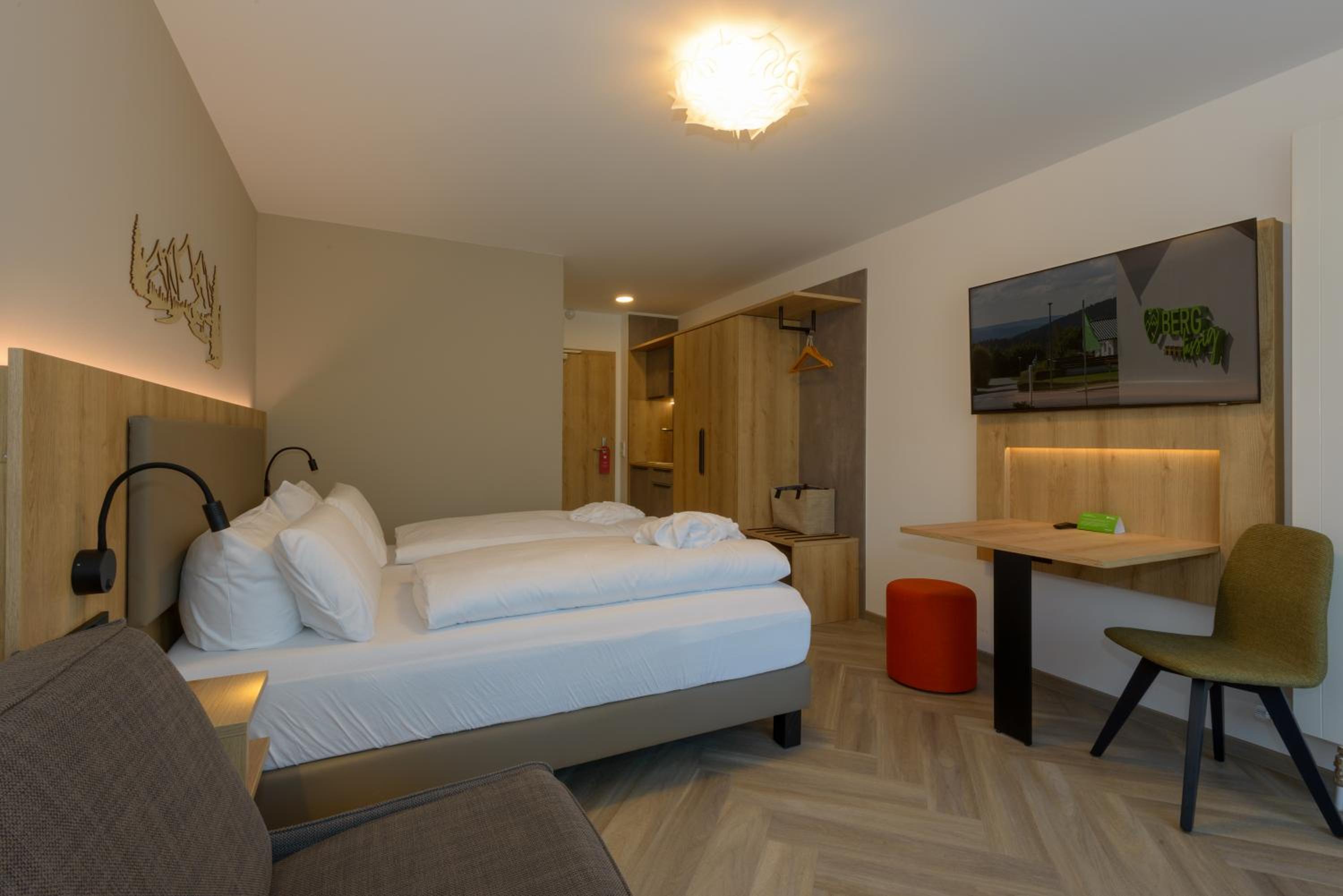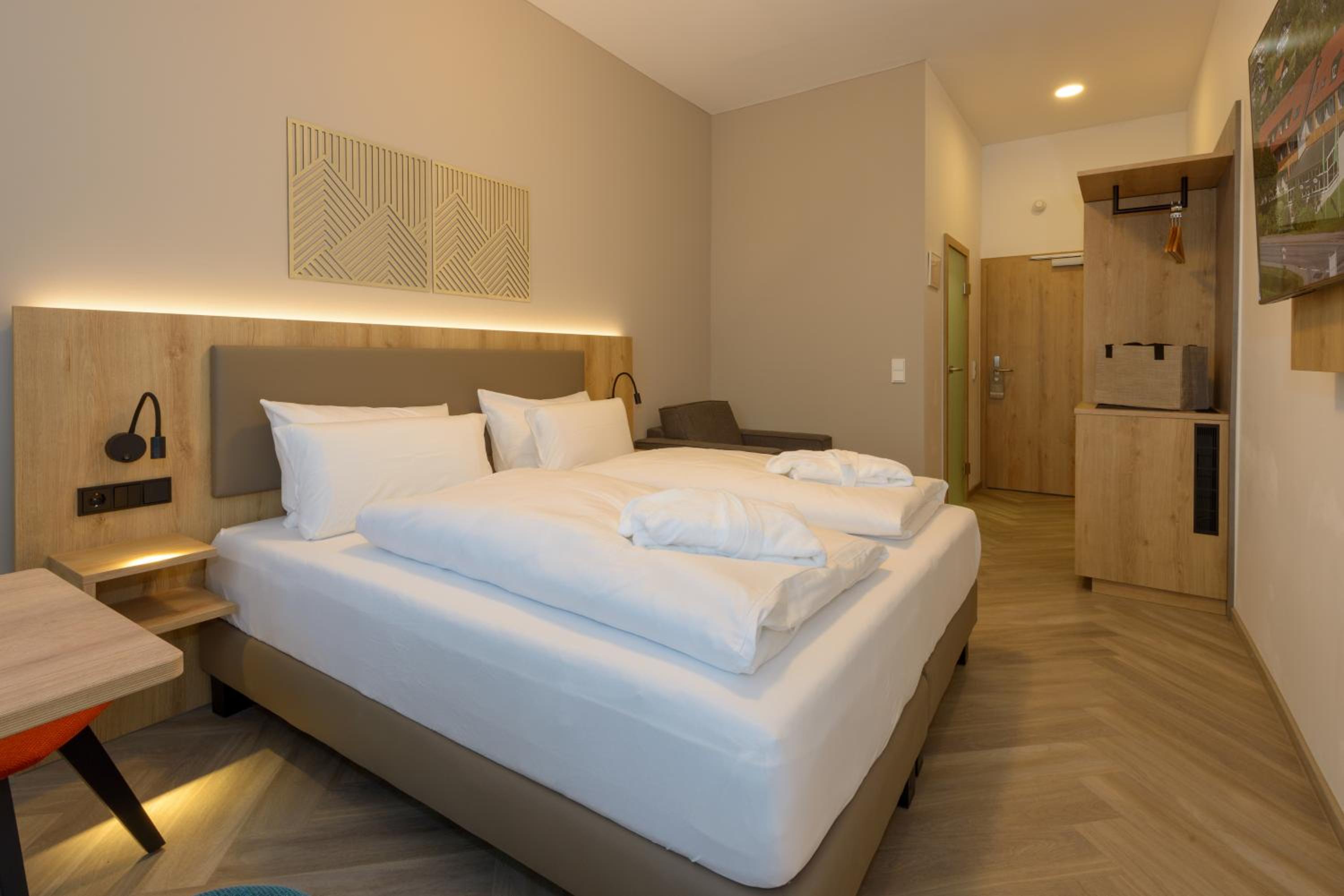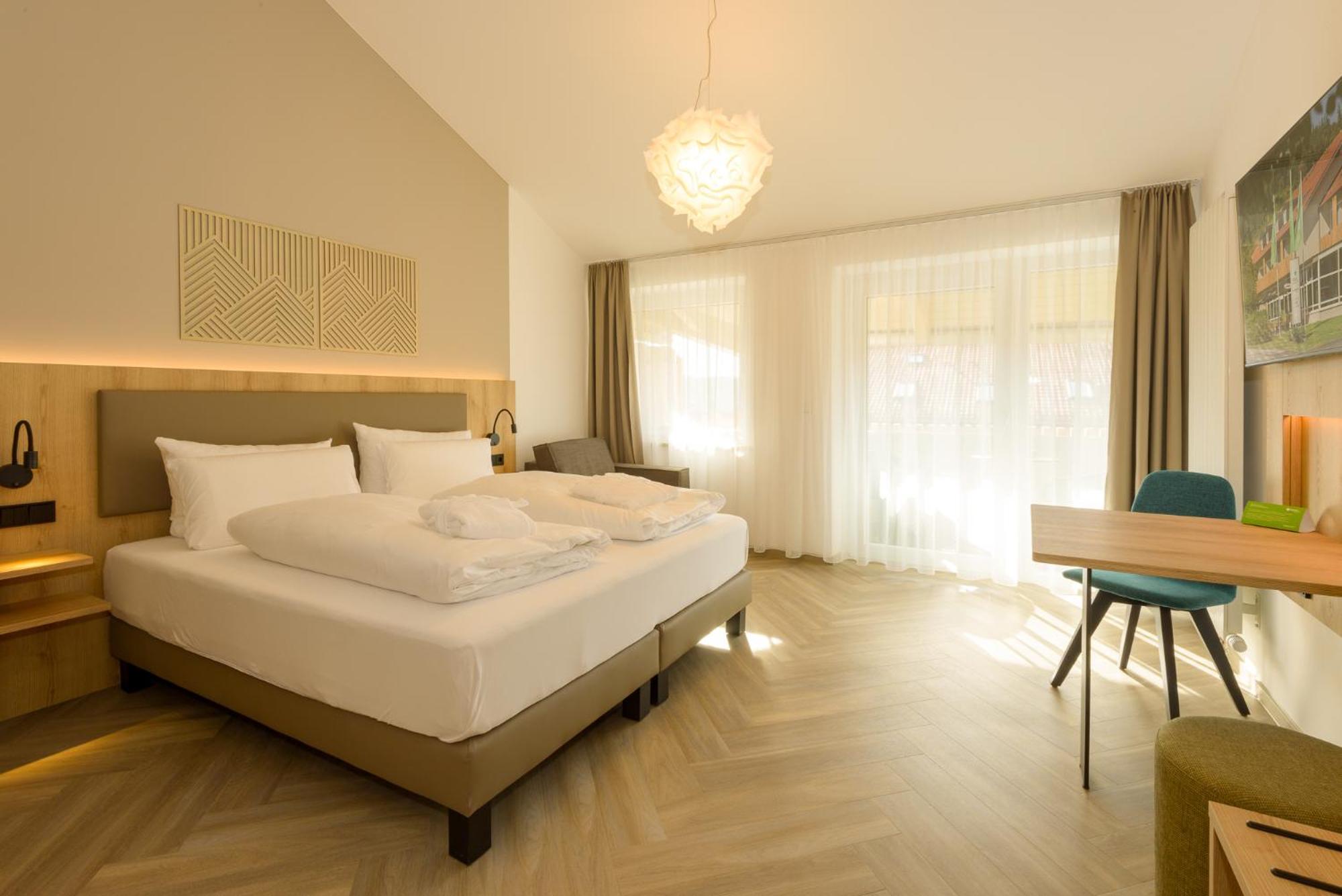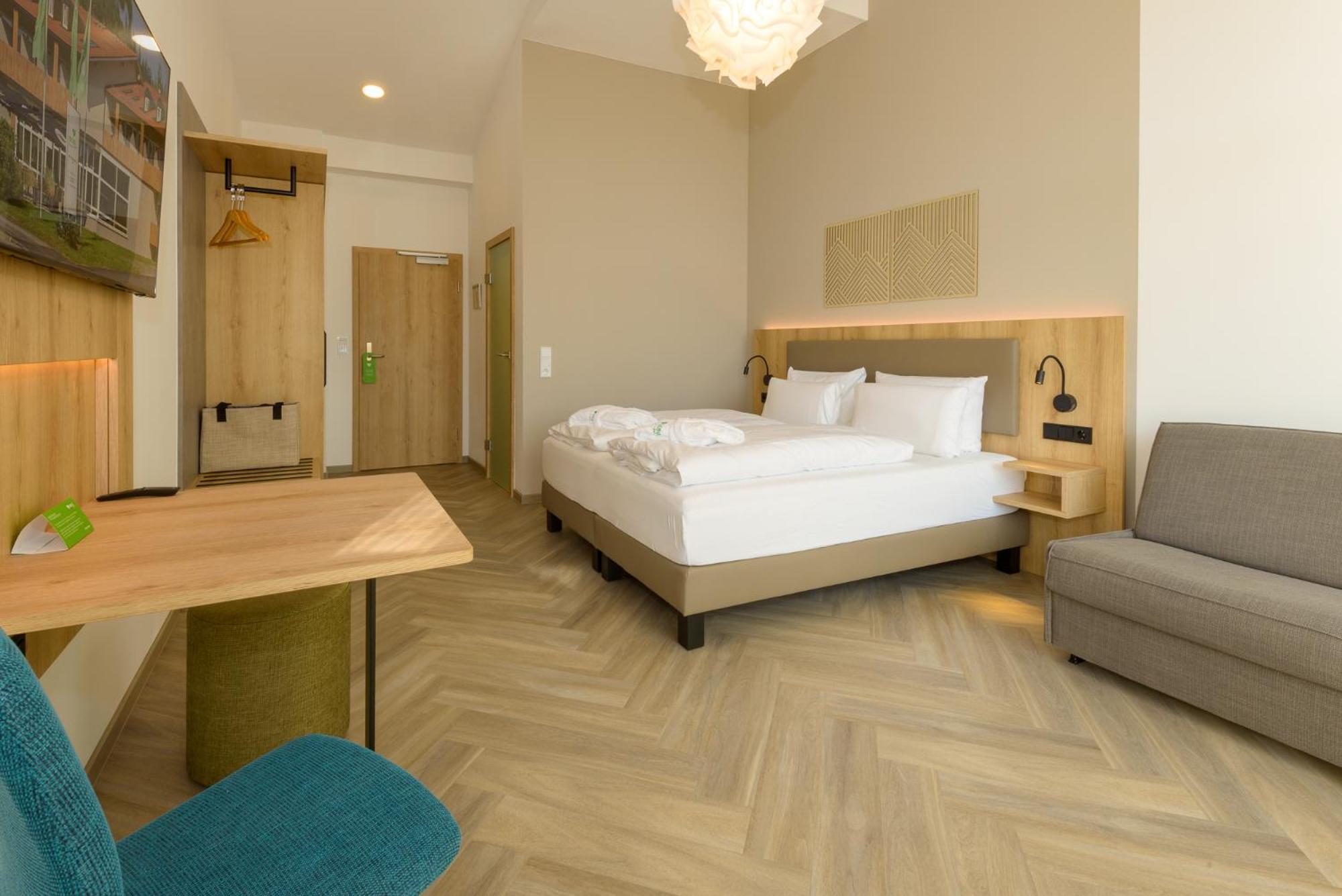 Das Hotel ist modern und schön eingerichtet. Alles war sehr sauber. Das Zimmer war super ausgestattet. Der Saunabereich ist sehr schön. Mit der im Preis inbegriffenen AktivCard können viele Ausflüge zu rabattierten Preisen oder ganz ohne Zusatzkosten gemacht werden. Das Parken auf den Parkplätzen im Ort ist ebenfalls mit der AktivCard kostenfrei.