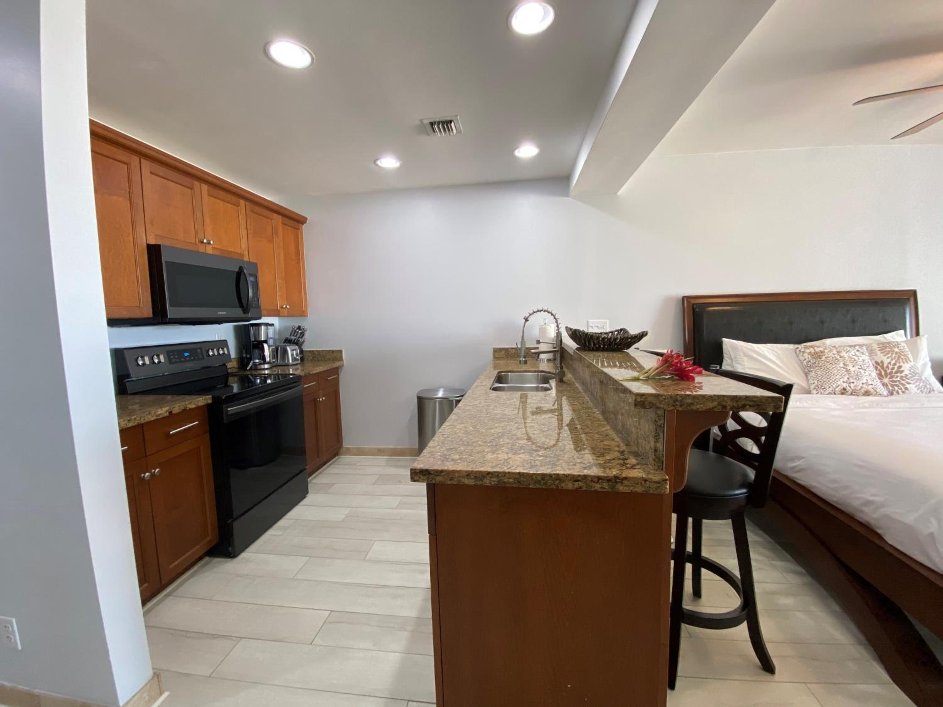 Very close to Turtle Cove, good surface interval place, nice balcony view, great pool, nobody there , glad we dodge the bullet with Hurricane Melissa. I had no clue there was a washer and dryer, all beach stuff in the room, cooler , portable lounge chairs, there was even a tv dinner tray to eat on , full kitchen