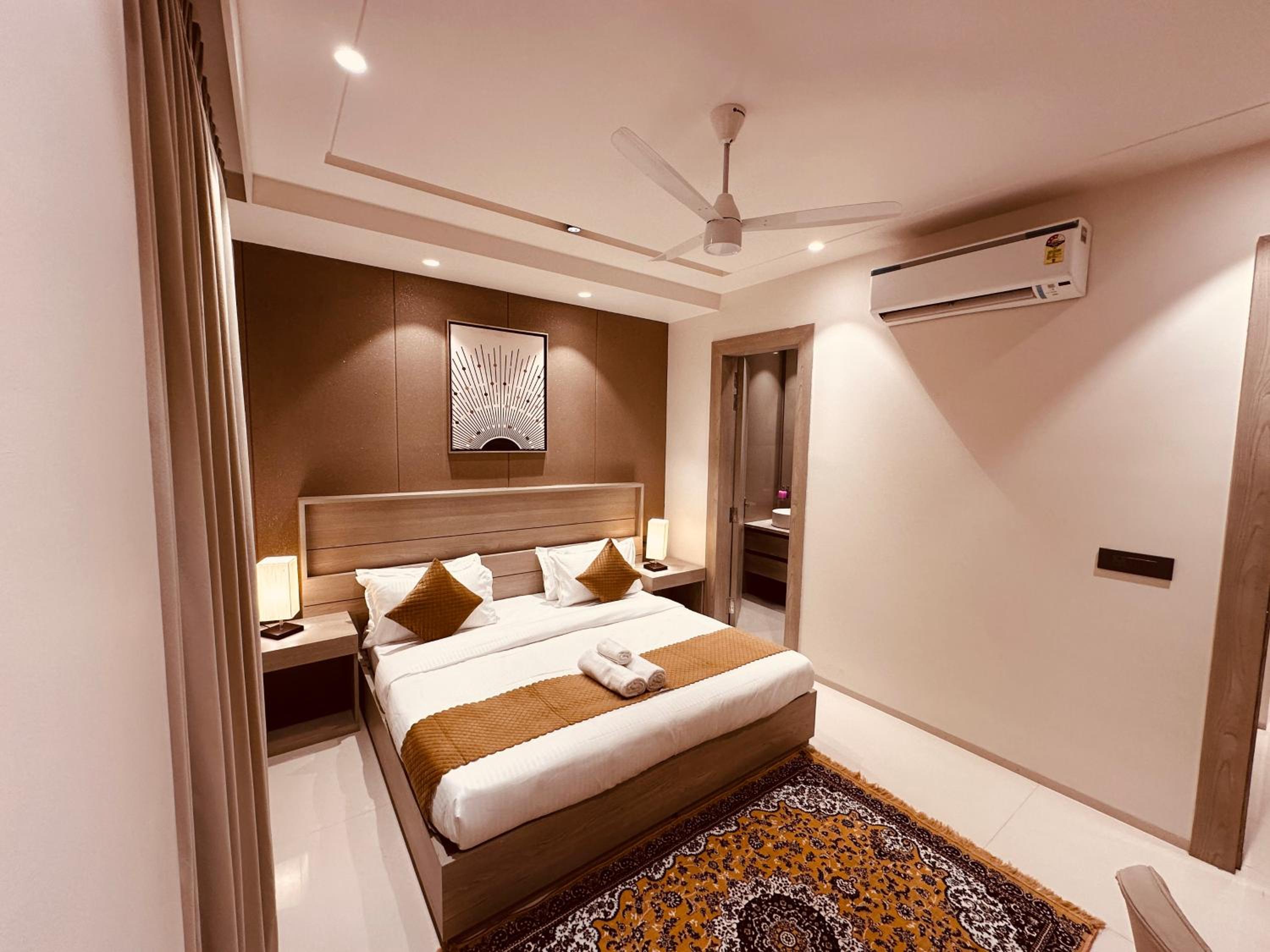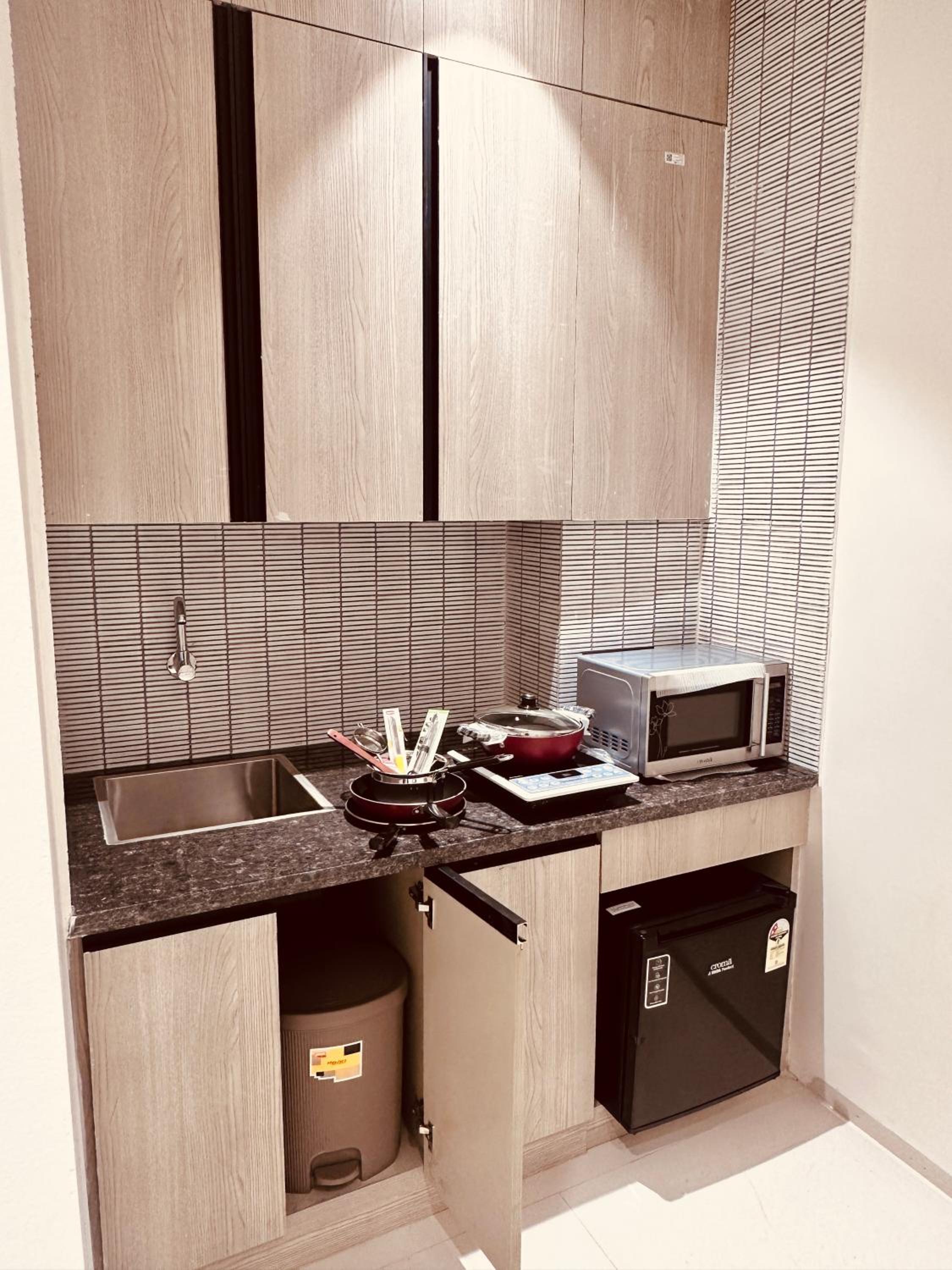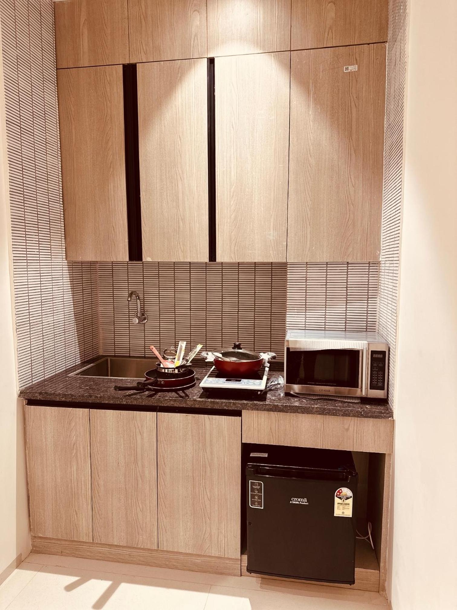 Modern Amenities: Enjoy air conditioning, a patio, and city views in our well-equipped 1 BHK serviced apartments. With a 24-hour front desk and outdoor fireplace, your comfort is our priority.
