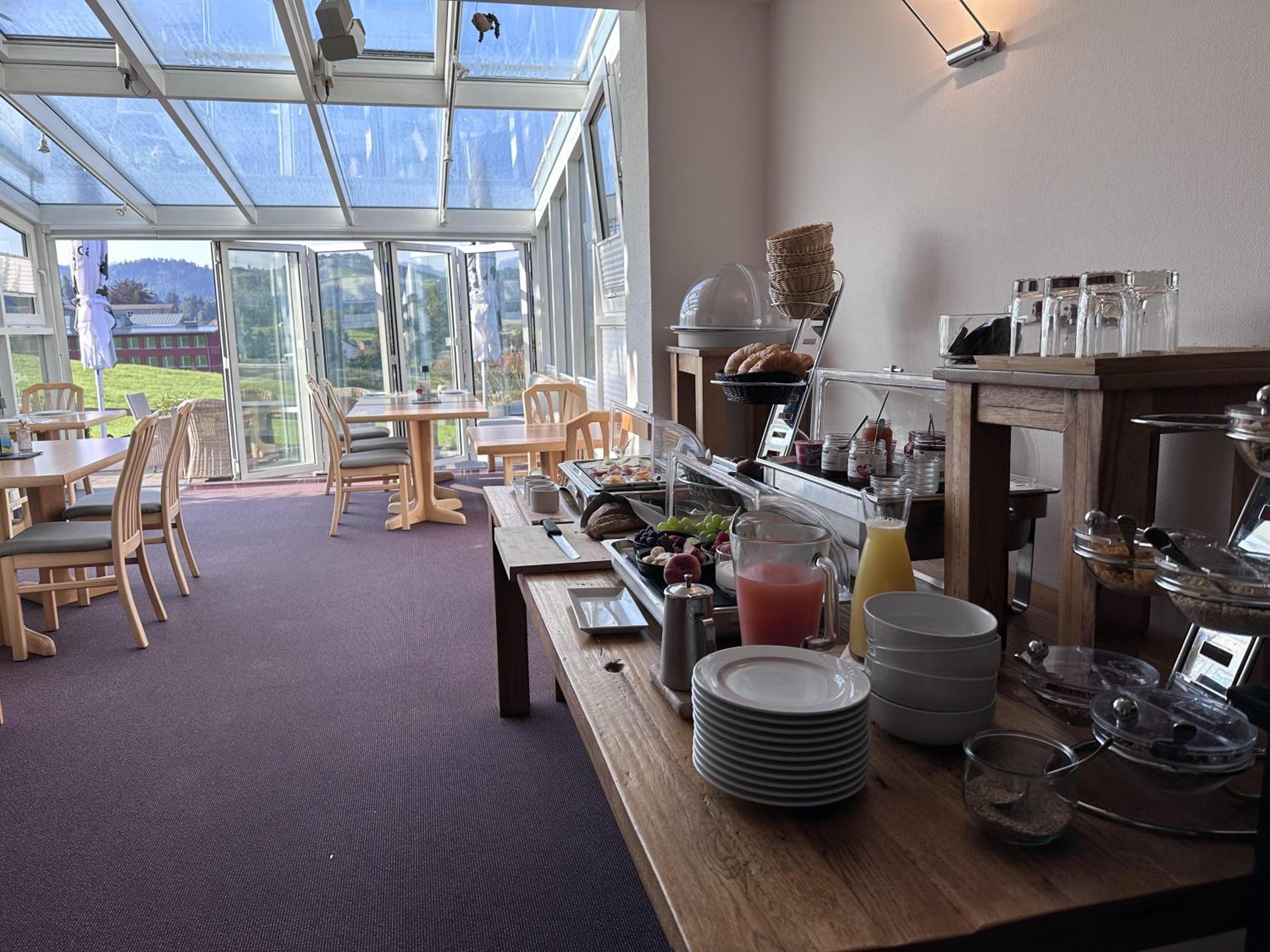 Ein Frühstück, von dem sich viele grosse Hotels eine Scheibe abschneiden können! Sehr nette Gastgeber. Wir wollten nach zwei Nächten noch etwas länger bleiben und durften das auch sehr spontan. Wir wurden auf die Oskar-Gästekarte für 51 Fr./Person hingewiesen, die wir dann auch ausgestellt bekamen. Mit dieser konnten wir 3 Tage lang den ÖV und diverse Bergbahnen nutzen, ausserdem hatten wir freien Eintritt in Museen und diverse weitere Vergünstigungen. Das Hotel hat eine wunderschöne Lage mit Aussicht auf den Alpstein und man ist schnell in St. Gallen, Appenzell oder auf der Schwägalp. Wir kommen gerne wieder!