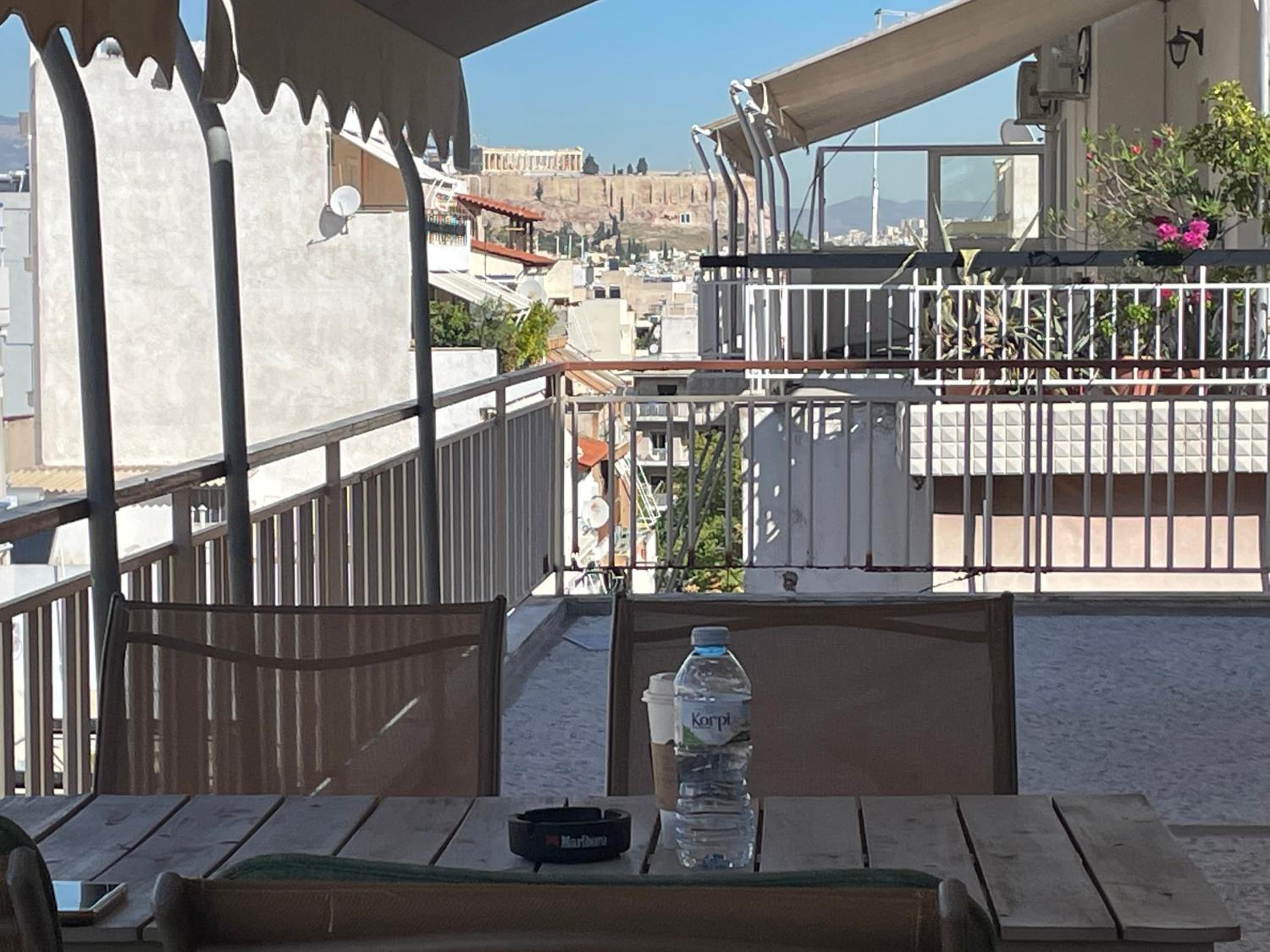 Enjoy breathtaking views of the Acropolis and the mountains from the terrace and balcony of this property.