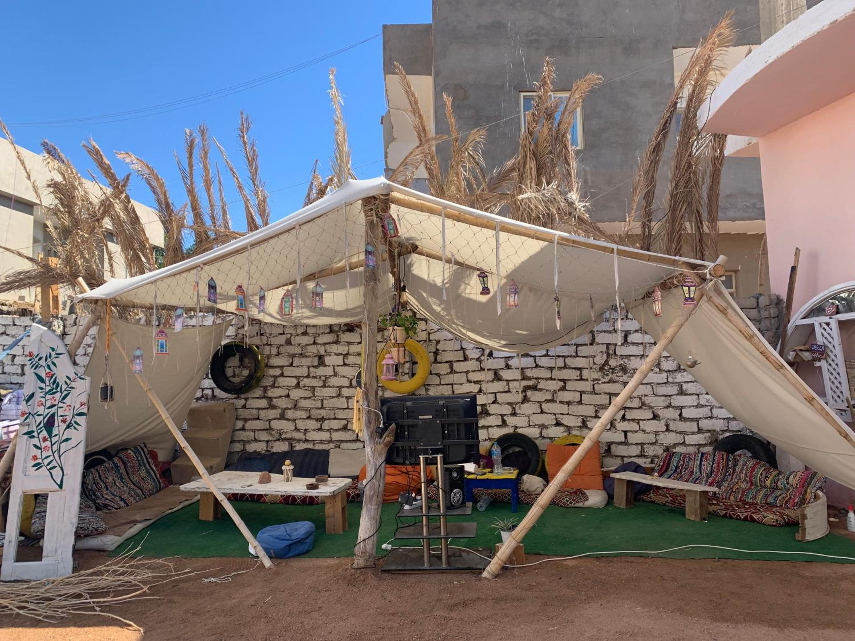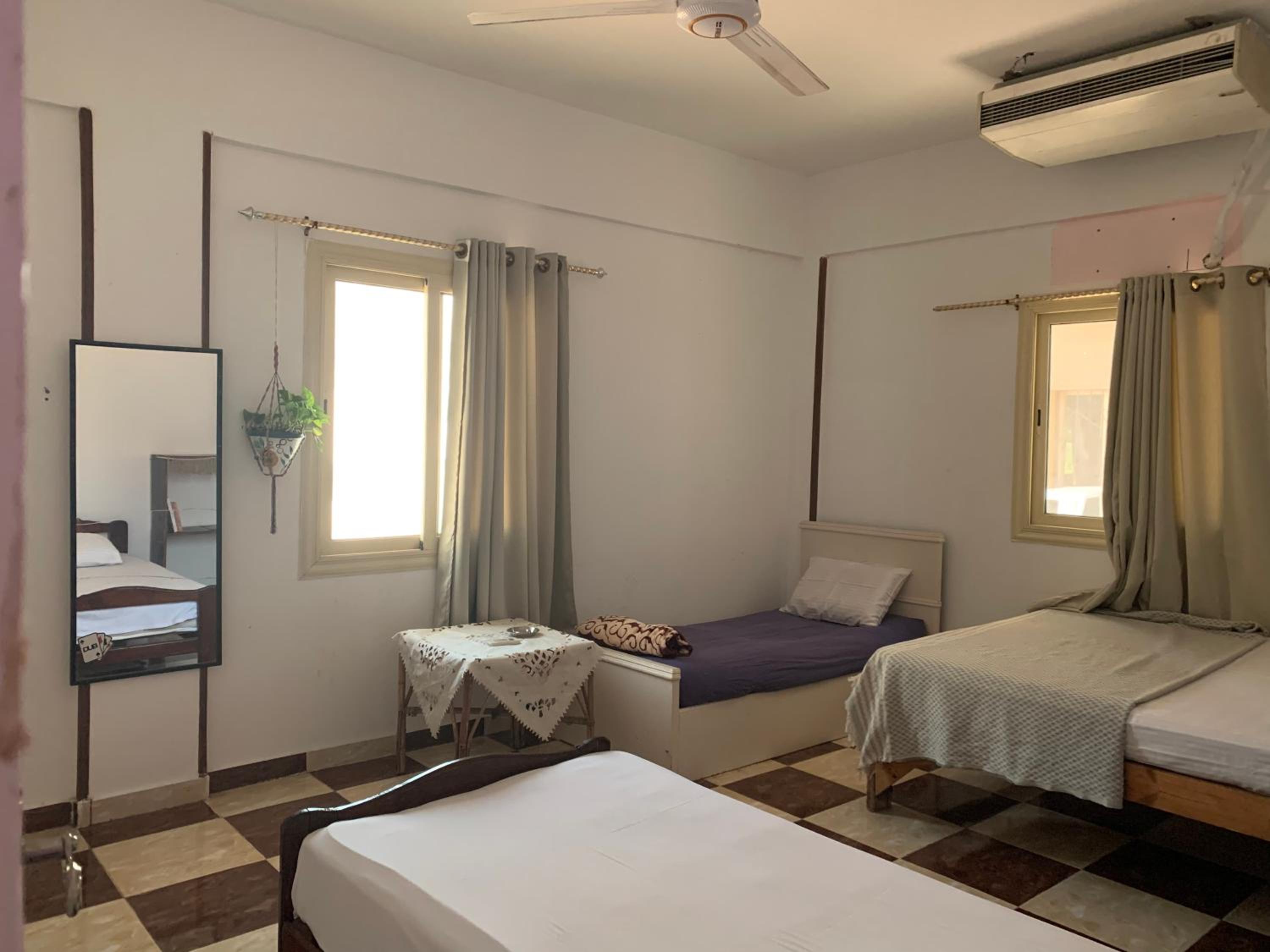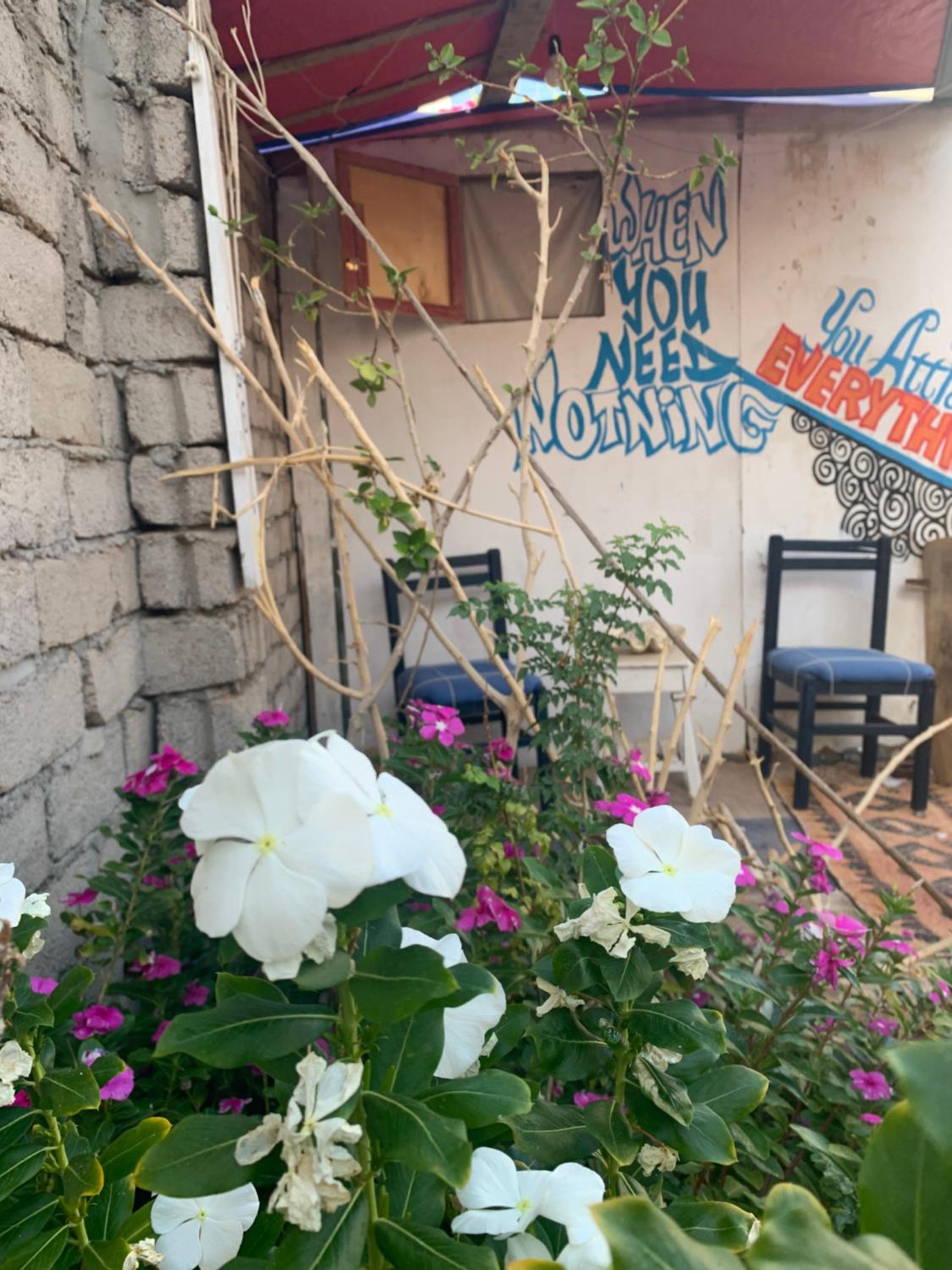 Experience stunning garden views right from your room at The Way Hostel 4 persons Room in Dahab.