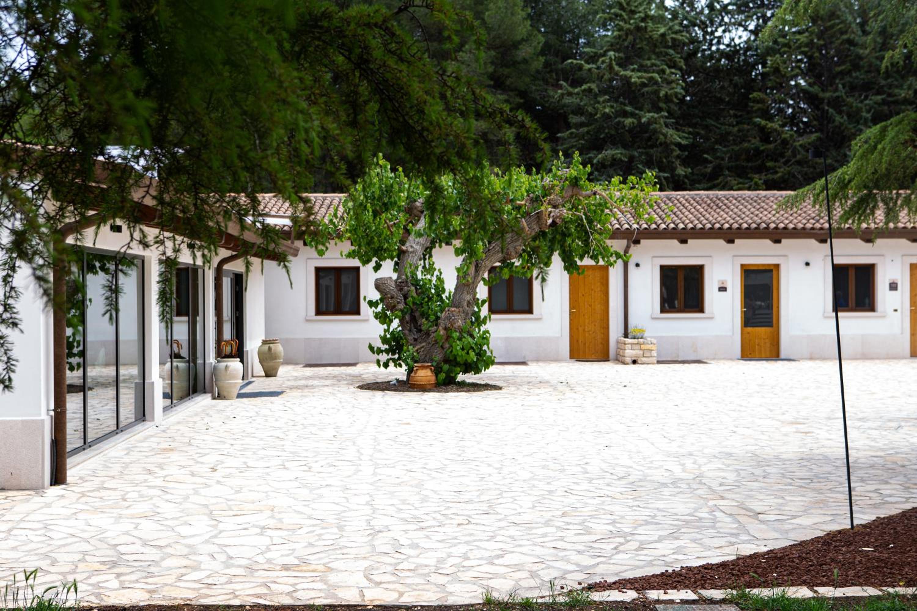 Nous avons passé une nuit dans cet établissement. Emplacement idéal pour visiter le château Castel del Monte, juste à côté. Les lieux sont jolis et soignés. La chambre était sobrement décorée mais un peu spartiate et manquait de charme/personnalité et, on s'attendait à mieux pour un hôtel qui se vente d'être "luxury" et par rapport au reste des lieux. La literie et les oreillers beaucoup trop fermes à notre goût, nous avons mal dormi tellement ce n'était pas confortable. En revanche, le dîner dans le petit restaurant de l'établissement était excellent ! Nous nous sommes régalés ! Le petit déjeuner très bien aussi. Personnel de l'établissement très aimable.