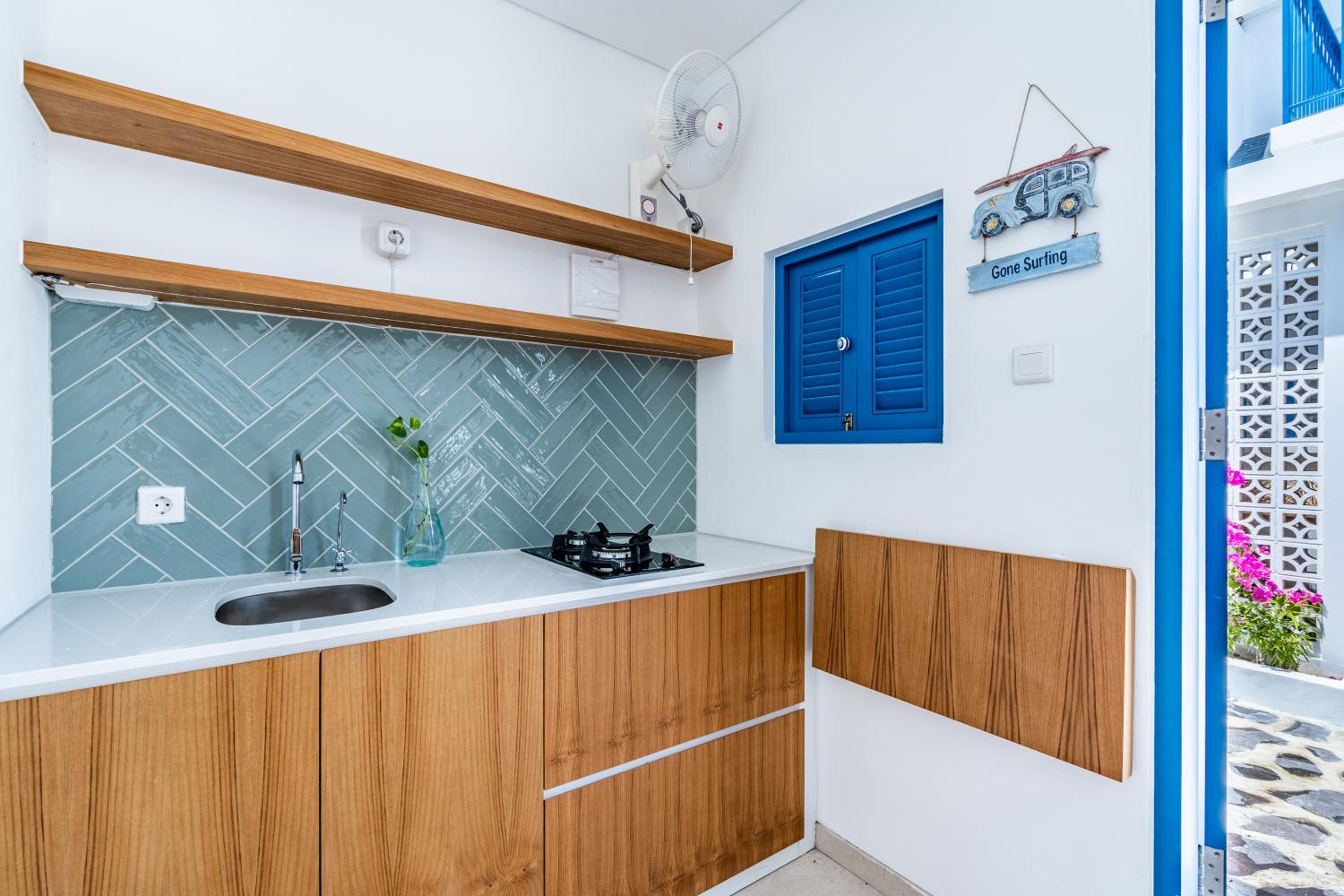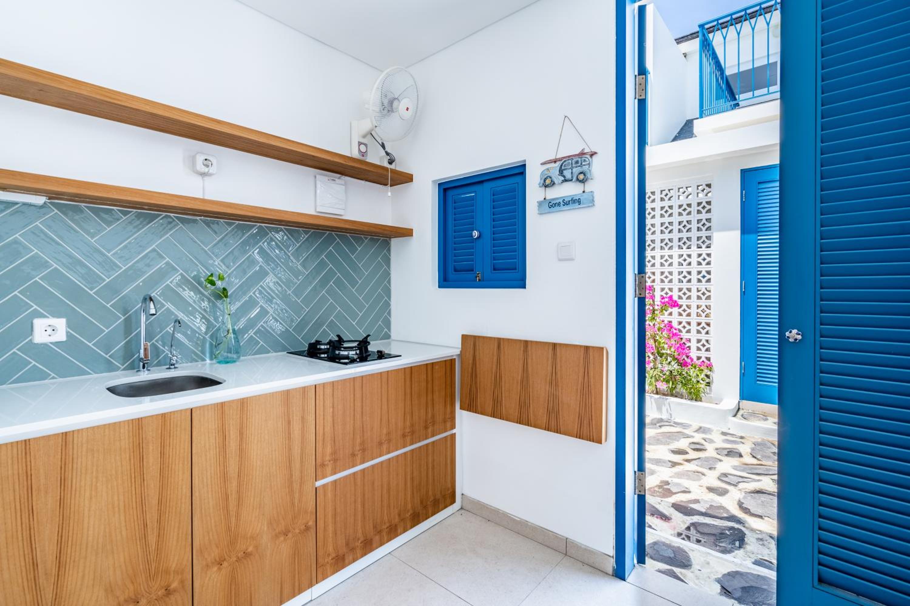The place made us feel like we were in Santorini and it was a very comfortable place. It had good amenities and also the location is really good especially having a Grab shuttle just down the road to get around Canggu.