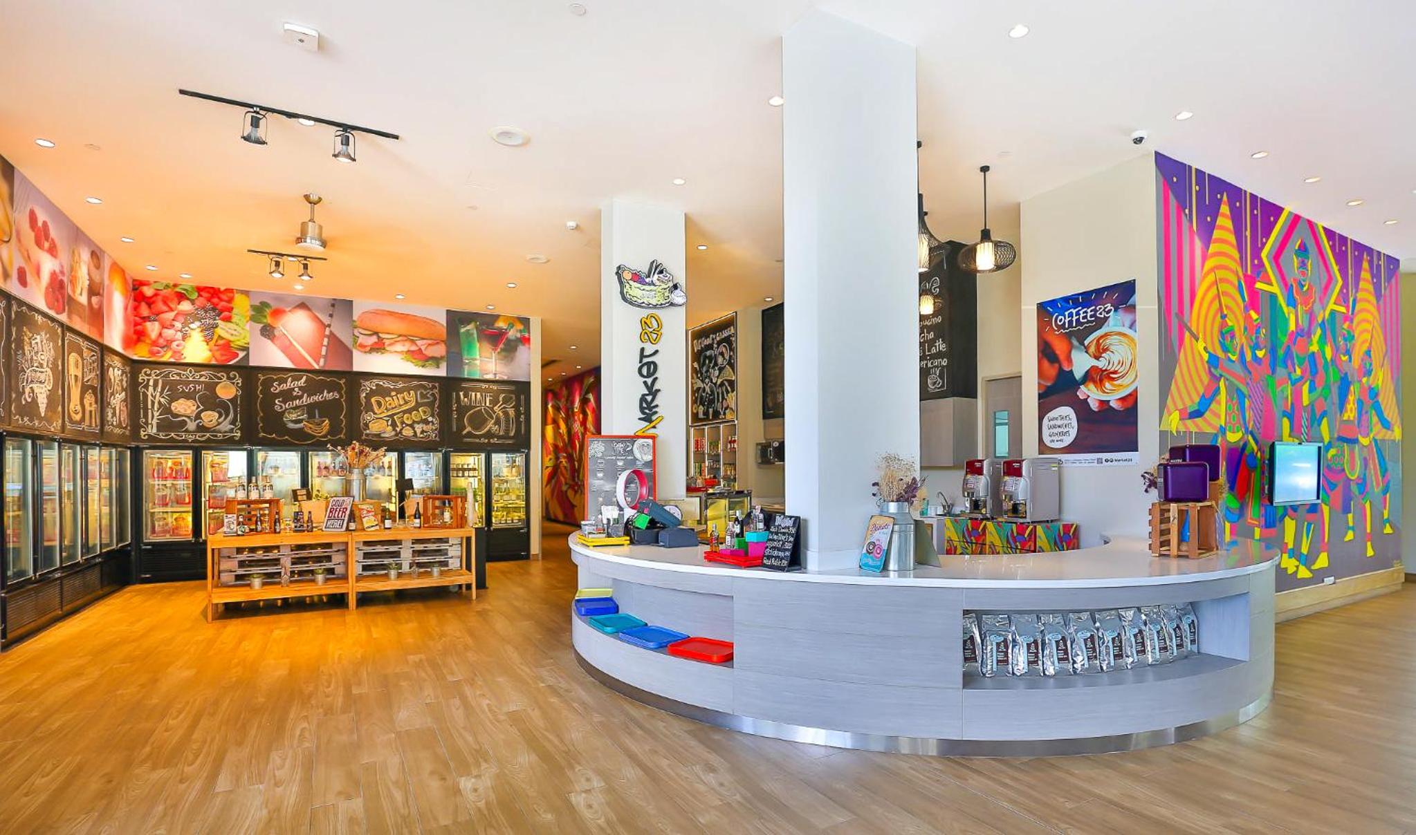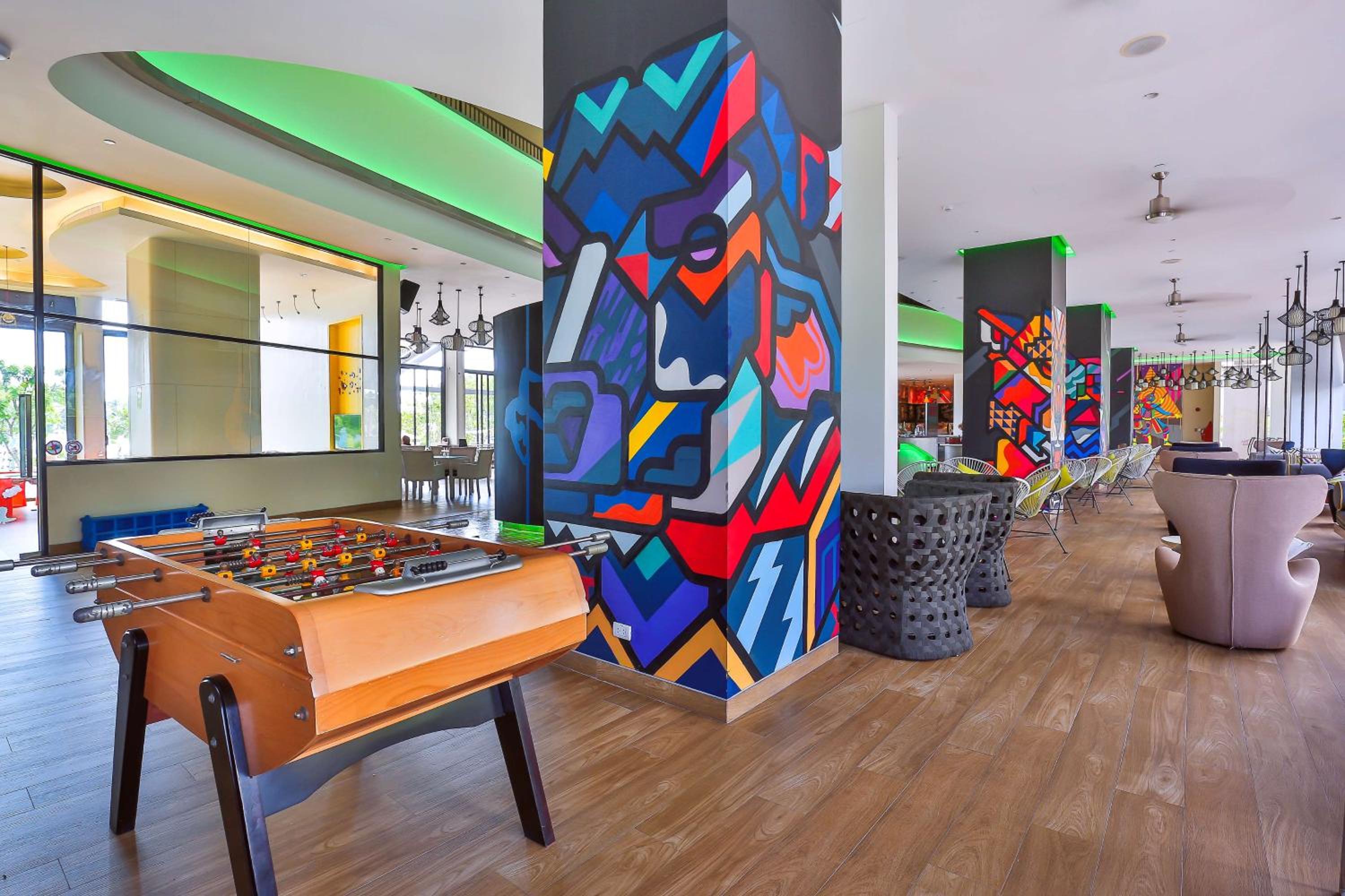 The location, the bright colours and the staff. Nice kiosk at the hotel and play area for little ones.