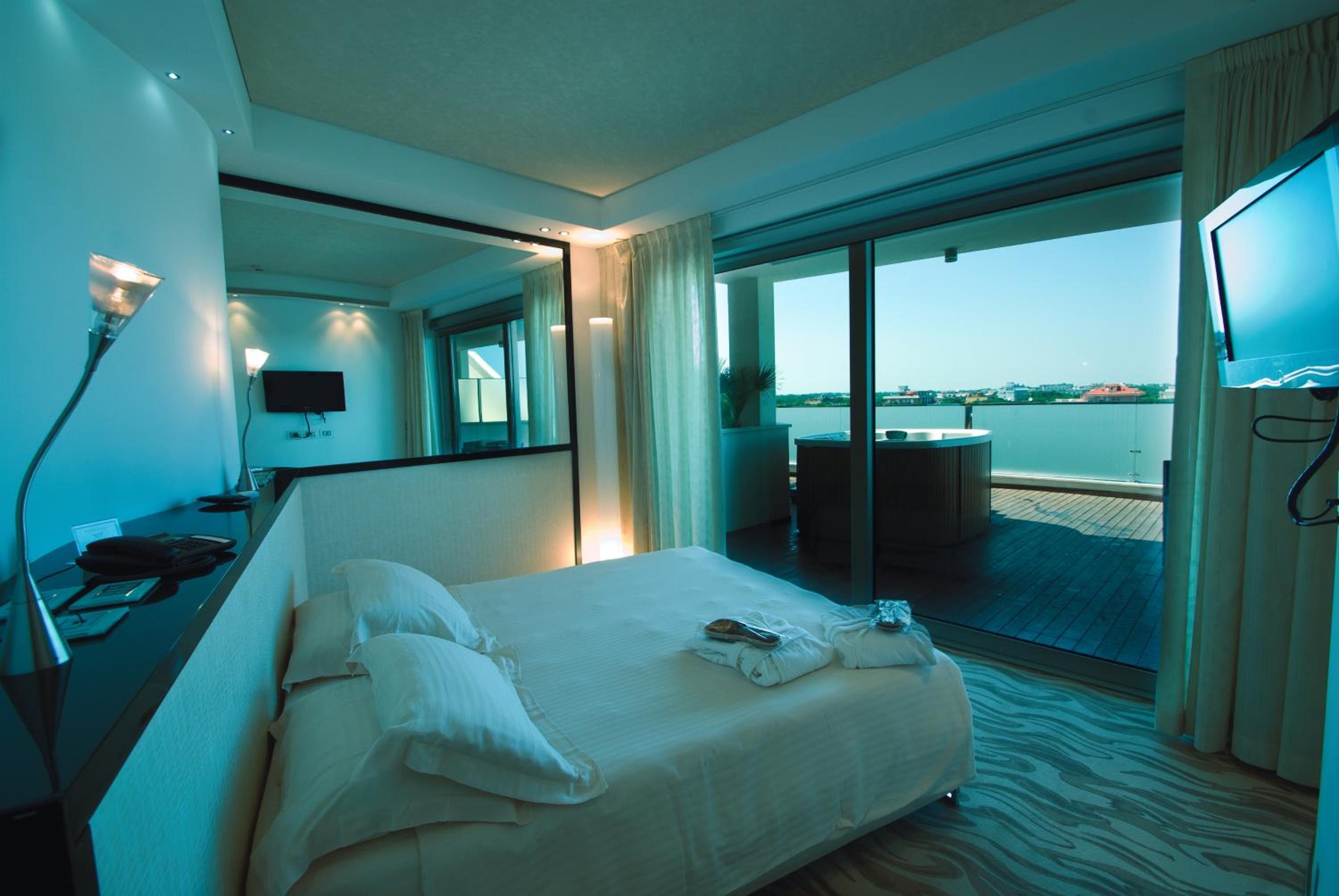 The Premier & Suites, a 5-star hotel in Milano Marittima, offers spacious rooms with free WiFi and Sky channels, some with stunning sea views. Indulge in a relaxing bath or hydromassage shower in each room, while suites feature hot tubs and panoramic sea vistas.