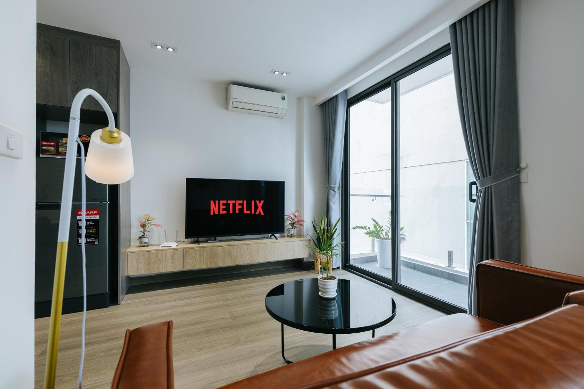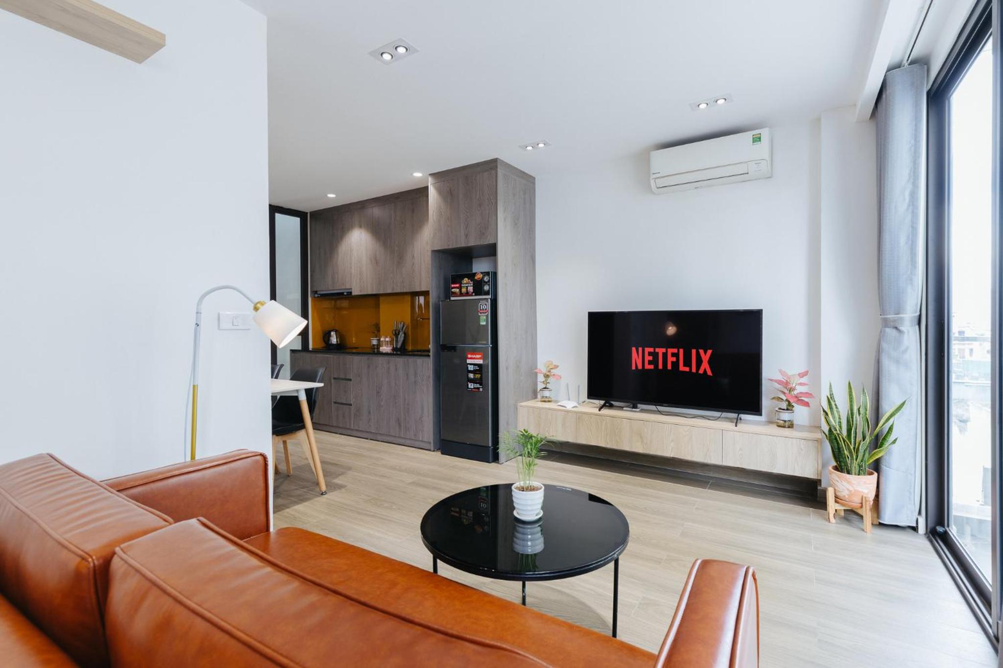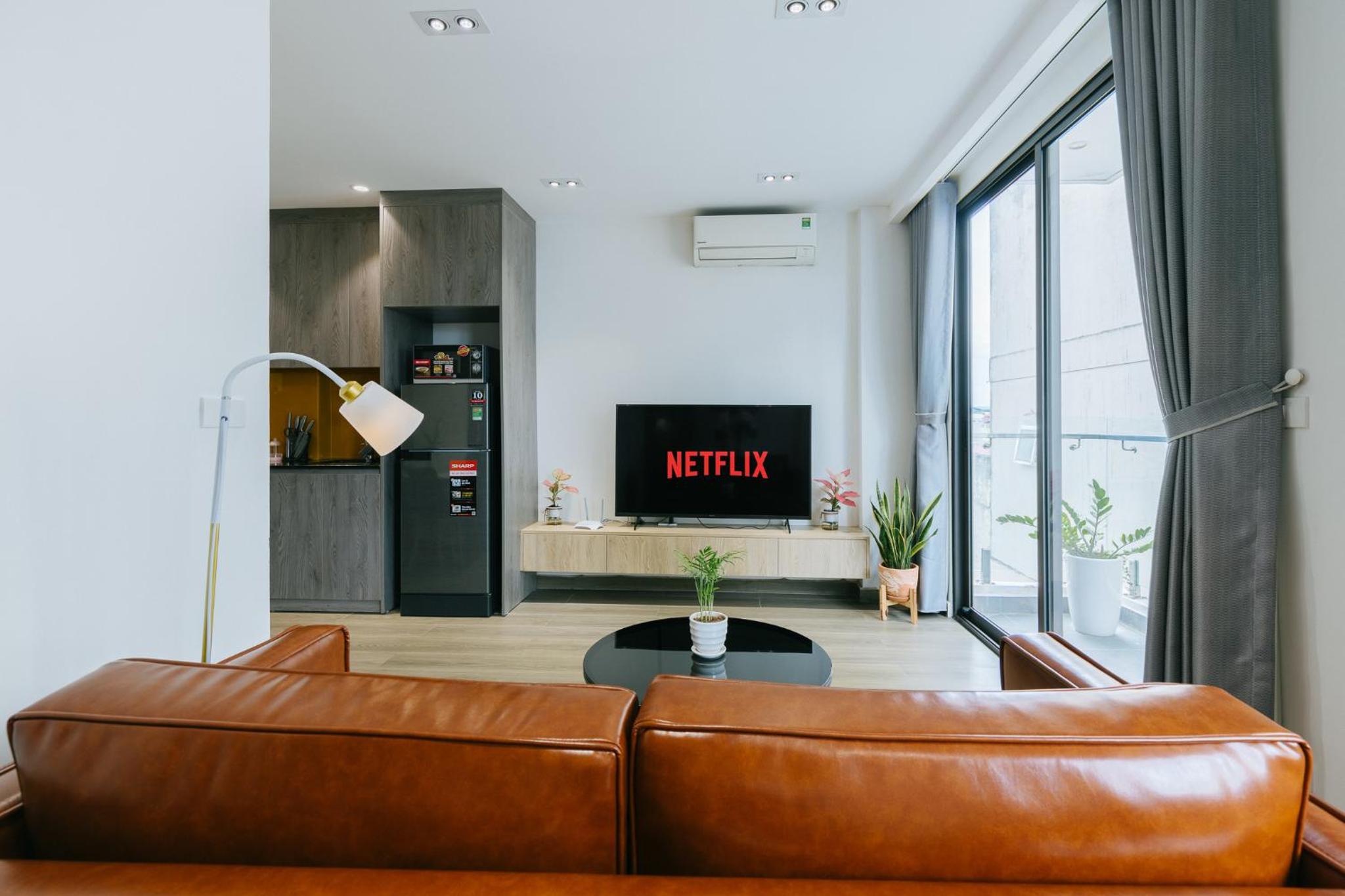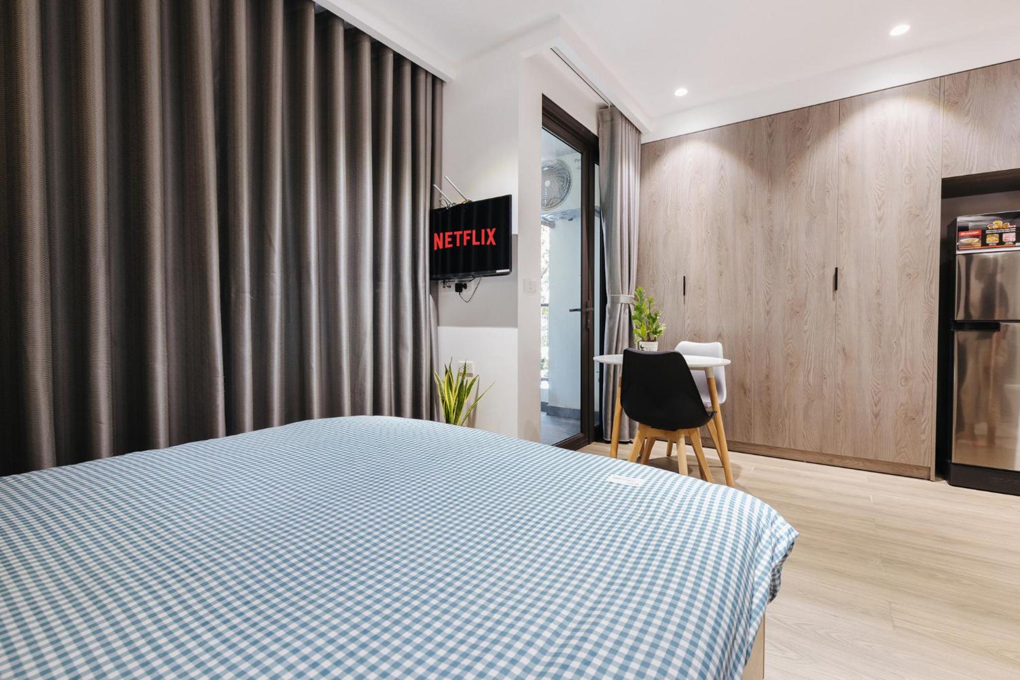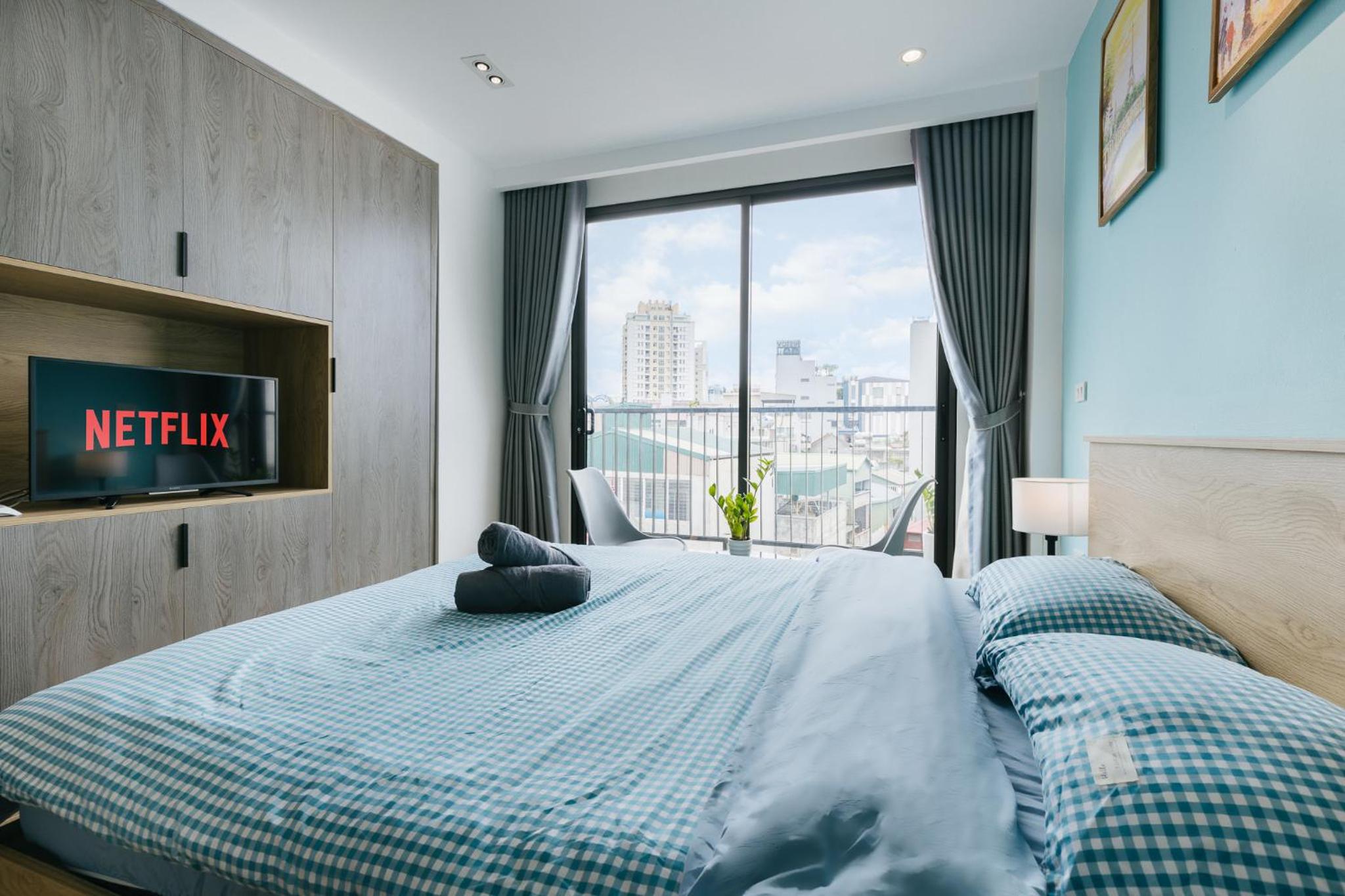 soft bed, cozy room, everything is very clean, there is a TV, Netflix and other functions, you can cook food, there are enough tools. Very cool apartments