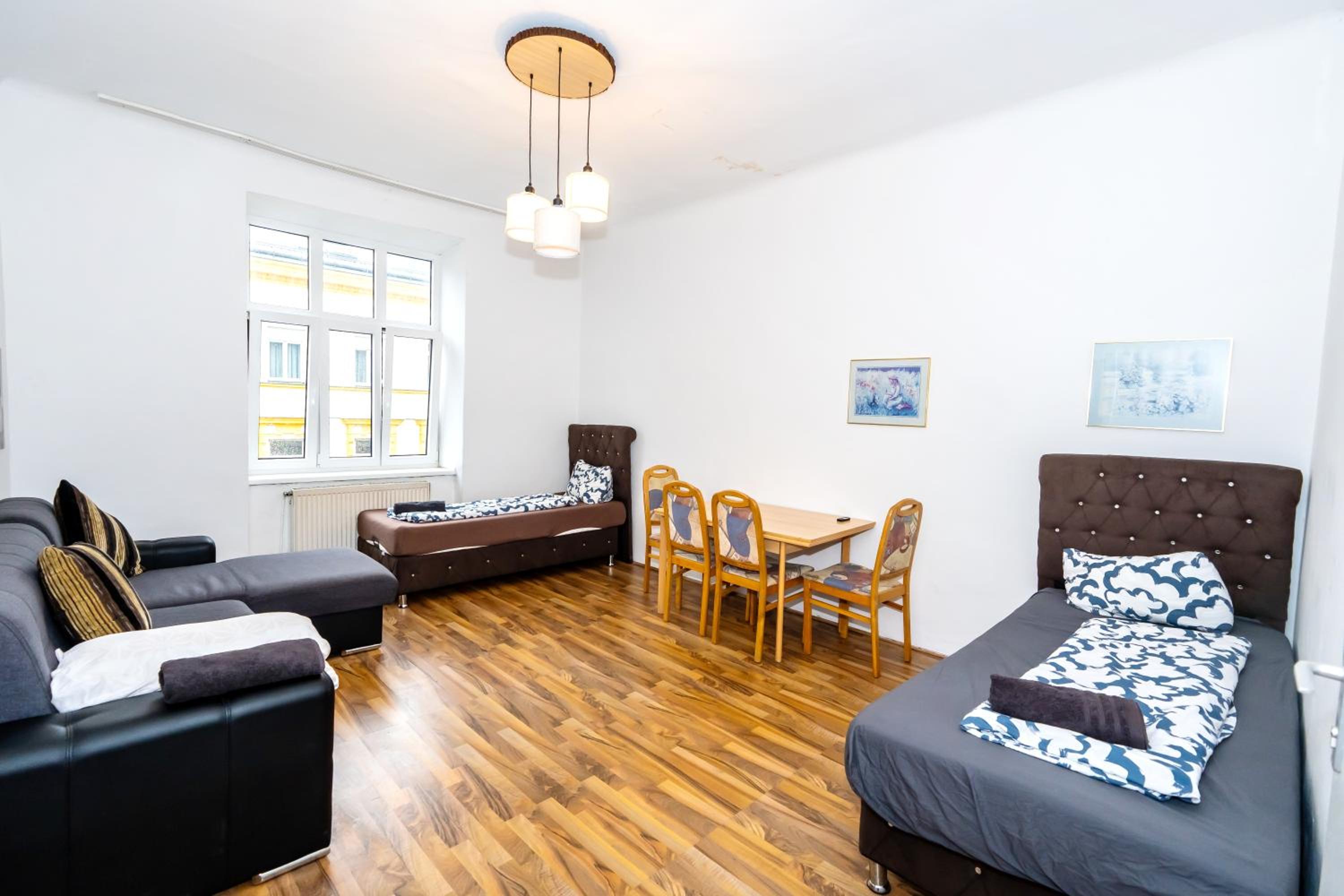 Located in the heart of Vienna, just minutes away from popular attractions such as Schönbrunn Palace, this family room offers easy access to transport links and key landmarks in the city.