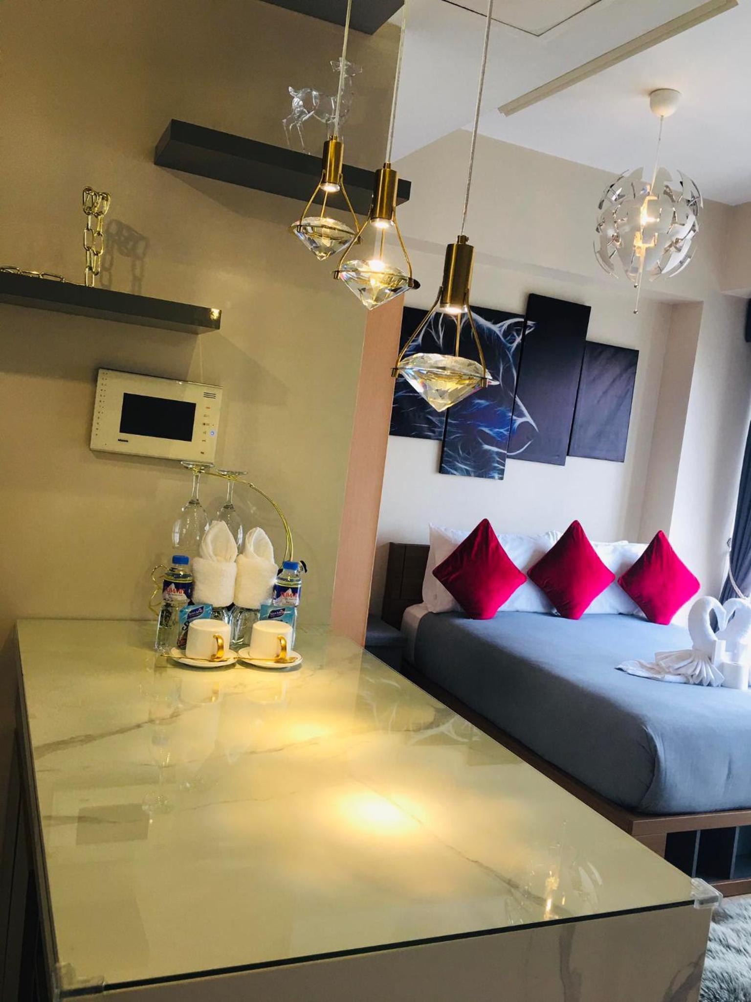 Experience the ultimate comfort at NAIA Terminal 3 Insane Interior, Be the Boss with a private pool, garden, and breathtaking city views. The air-conditioned aparthotel offers a fully equipped kitchenette, dining area, and flat-screen TV for a relaxing stay.