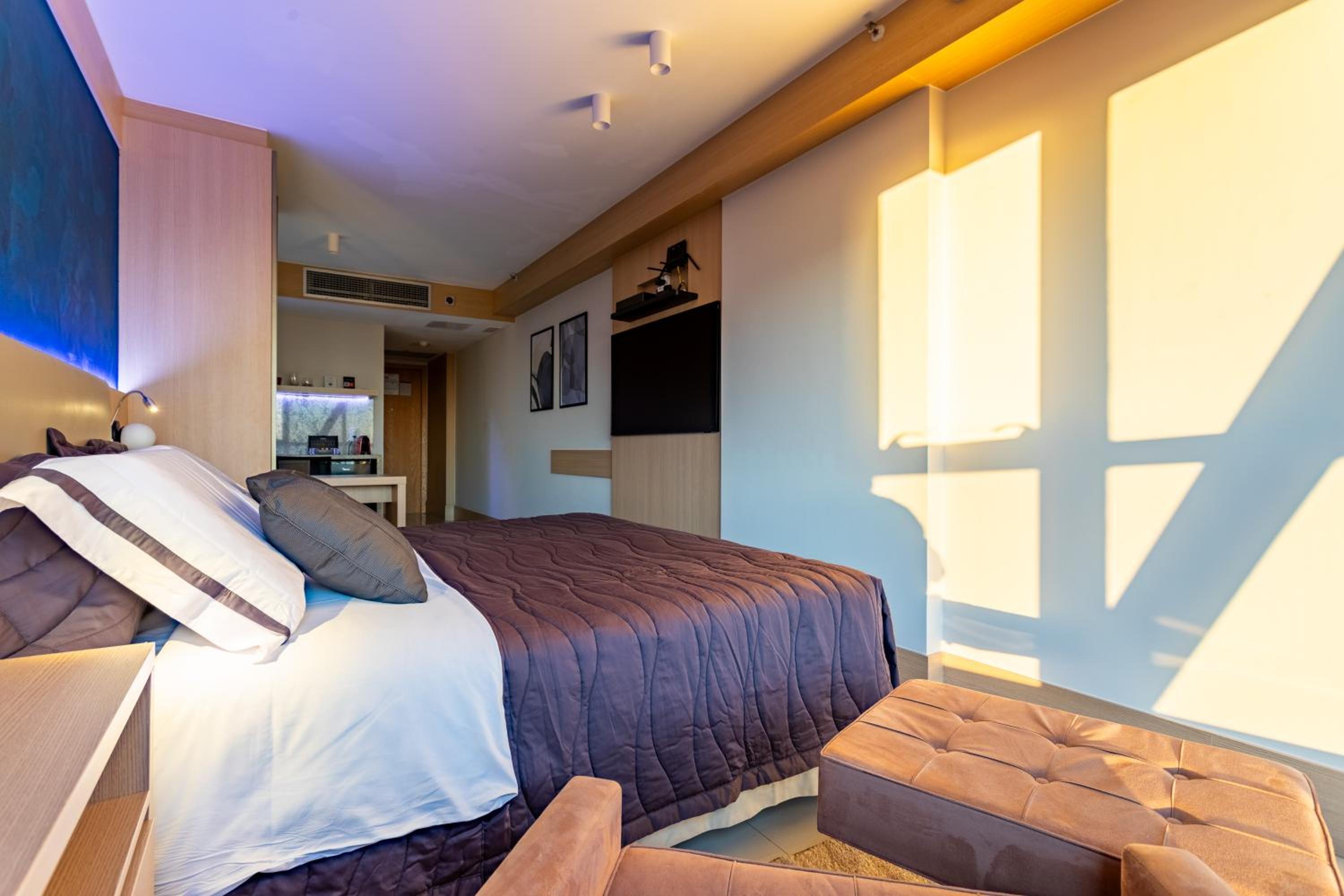 Indulge in our air-conditioned rooms equipped with modern amenities and elegant decor for a comfortable stay.