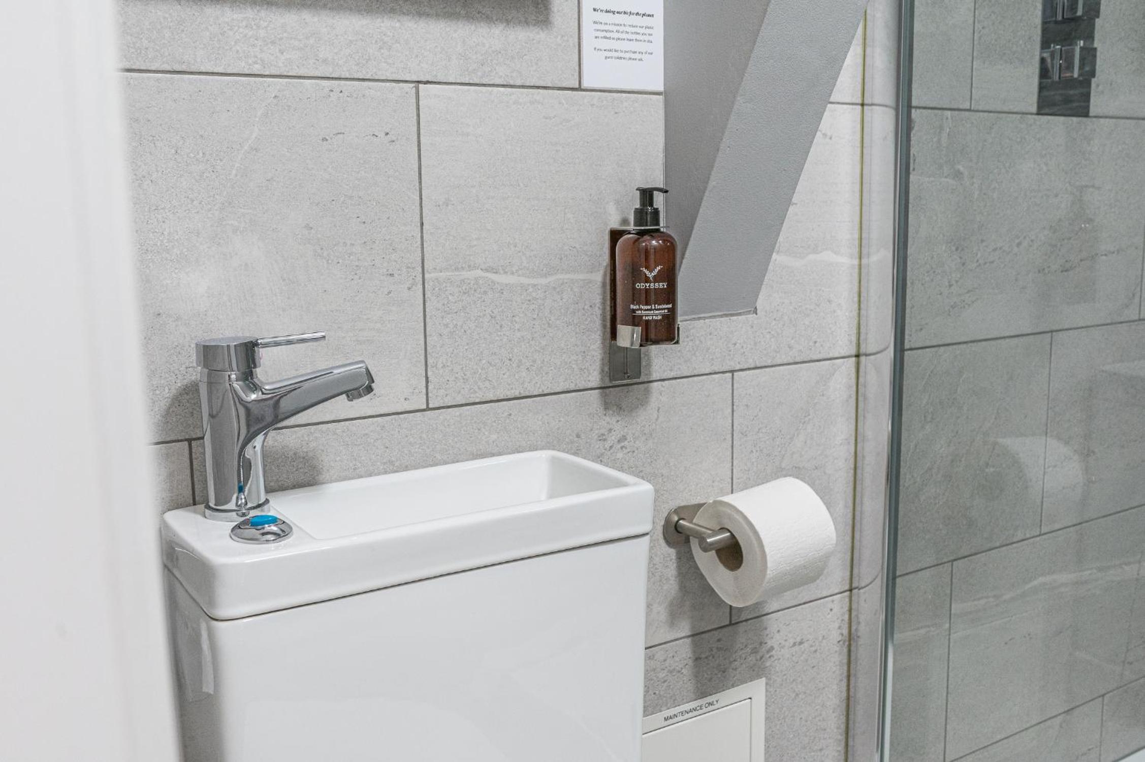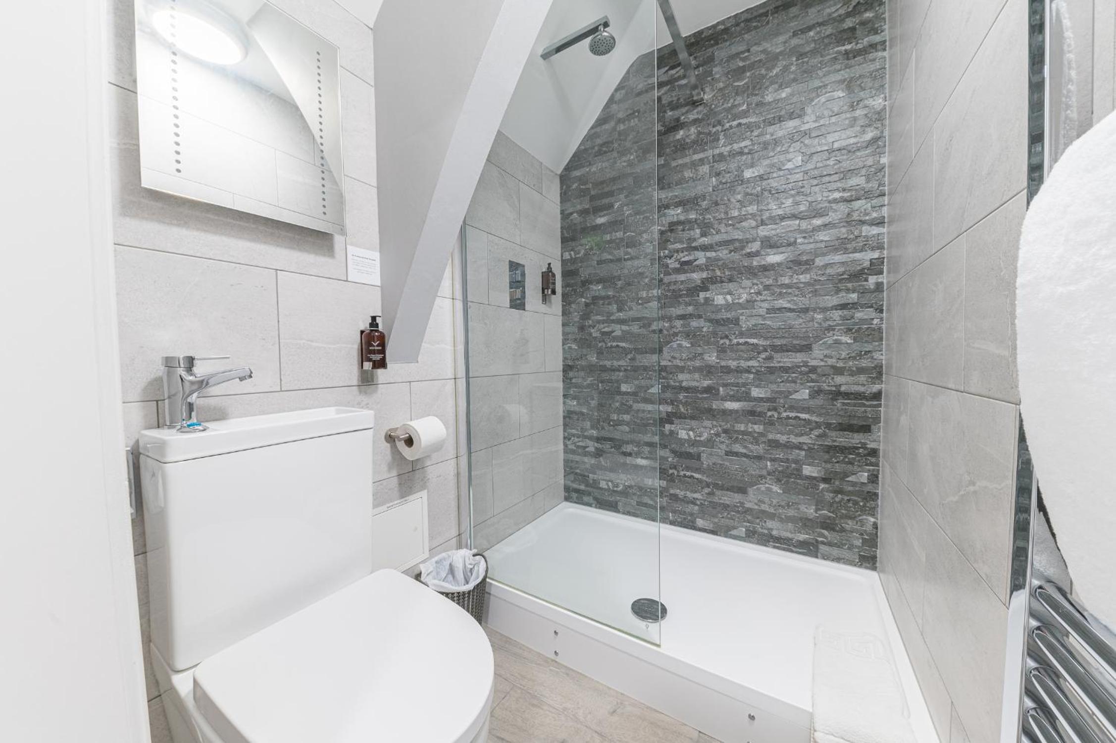 Lovely room with waterfall shower. Easy check-in process