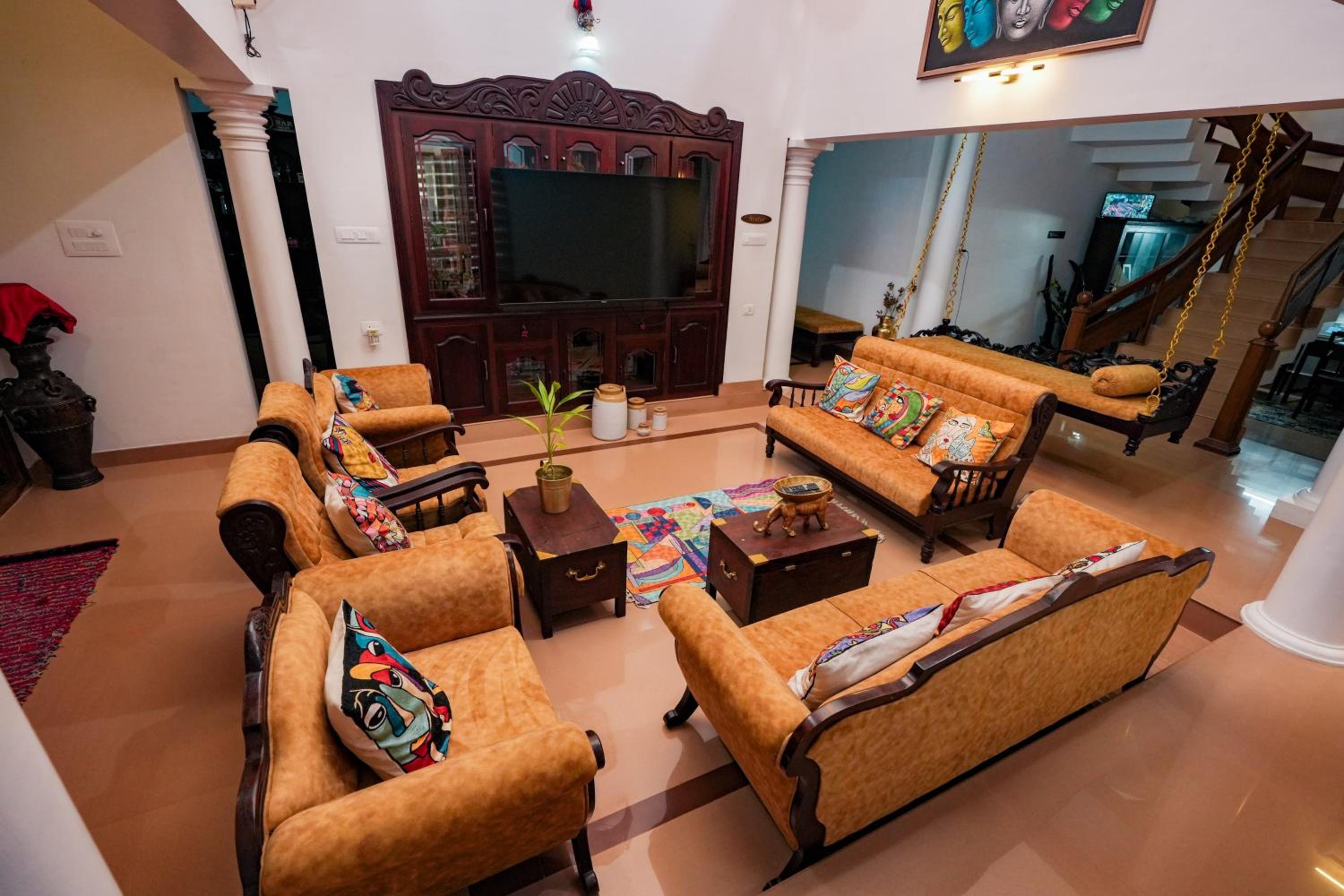 It is a beautiful traditional Kerala home with modern amenities in a very quiet neighbourhood for a peaceful stay. Overall, the house, in particular the Beds, linen and bathroom are excellent quality. Likewise, interior fittings, furnitures, and kerala artefacts installed inside/outside are very impressive, some of which were new to my kids.