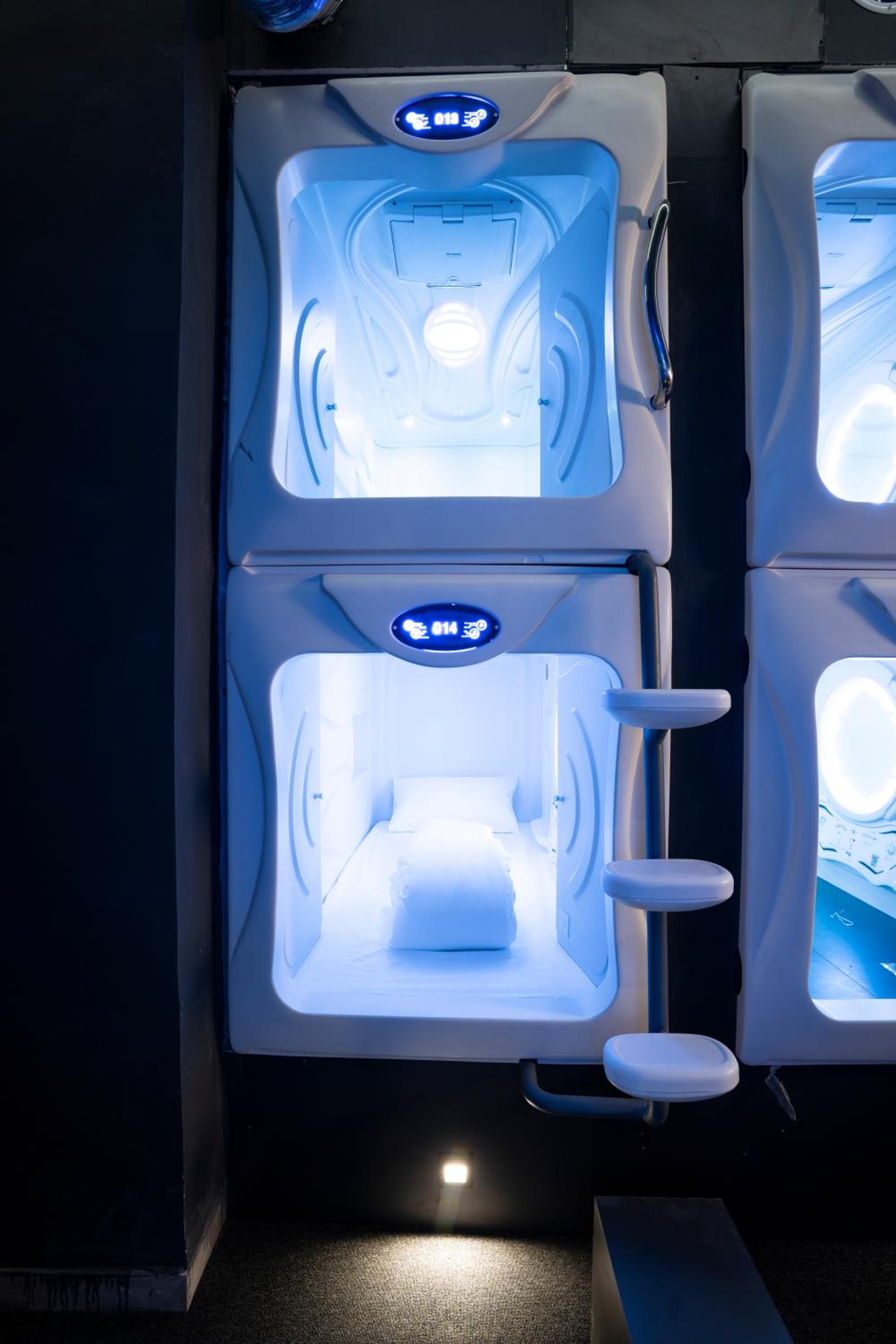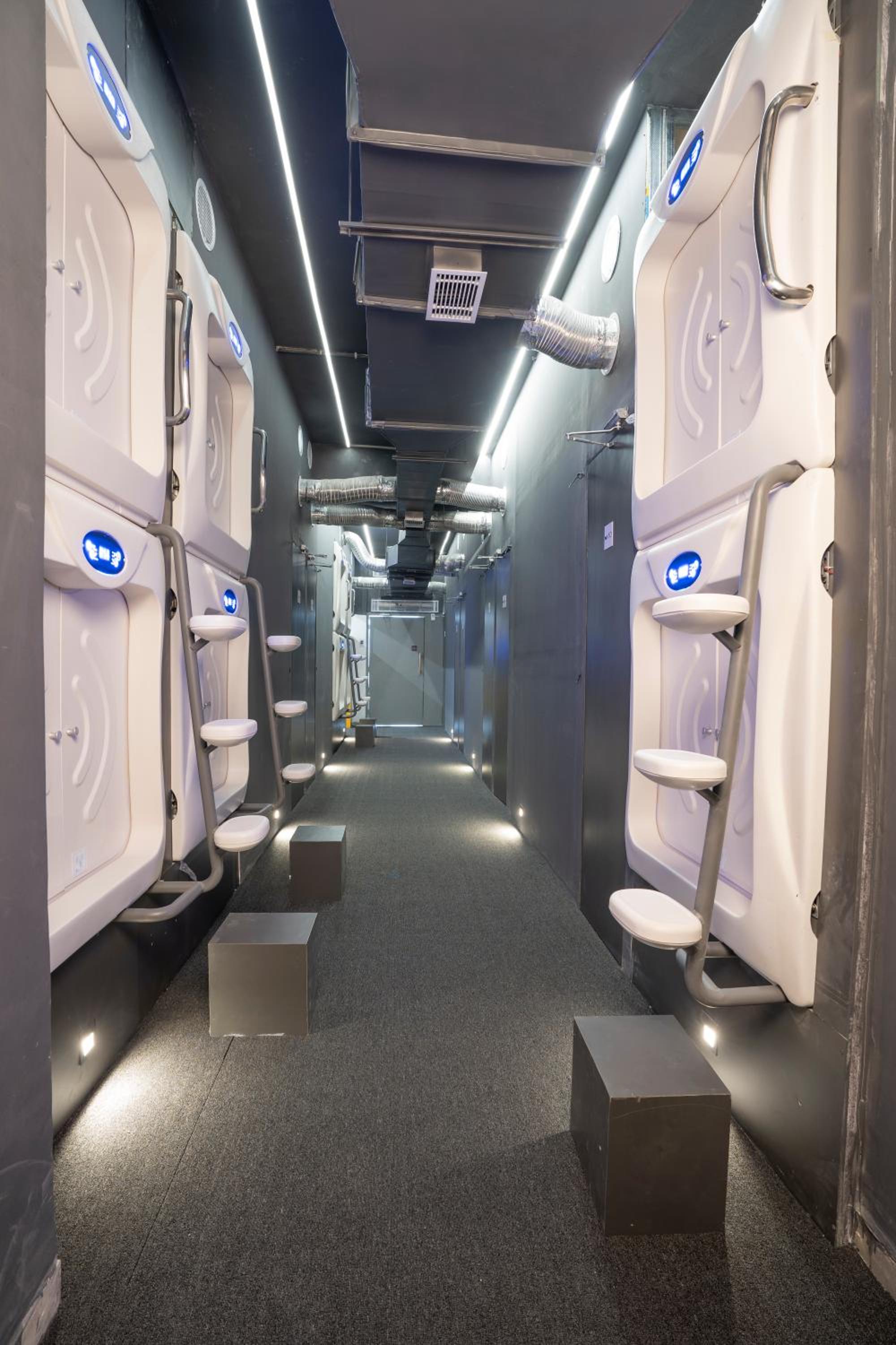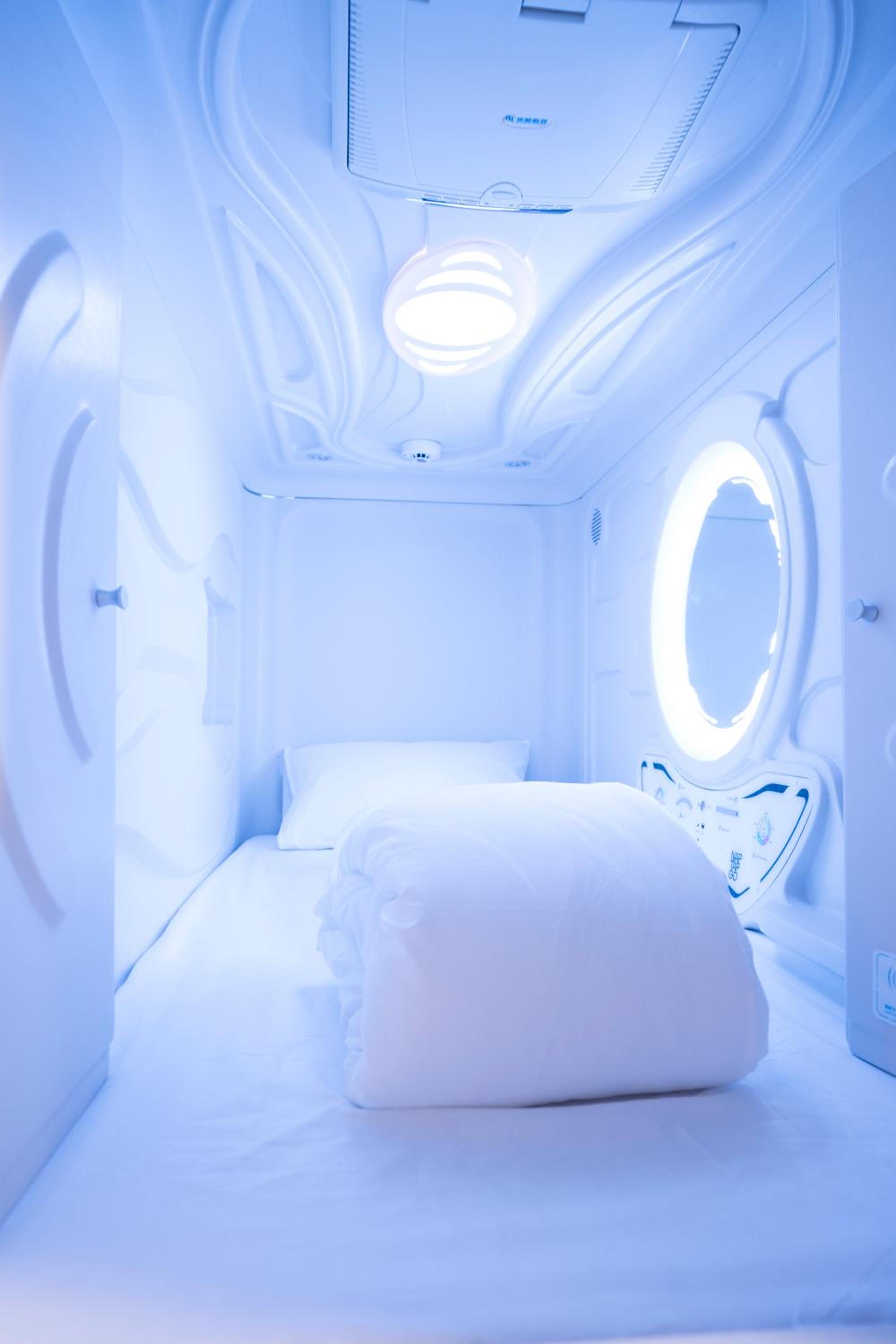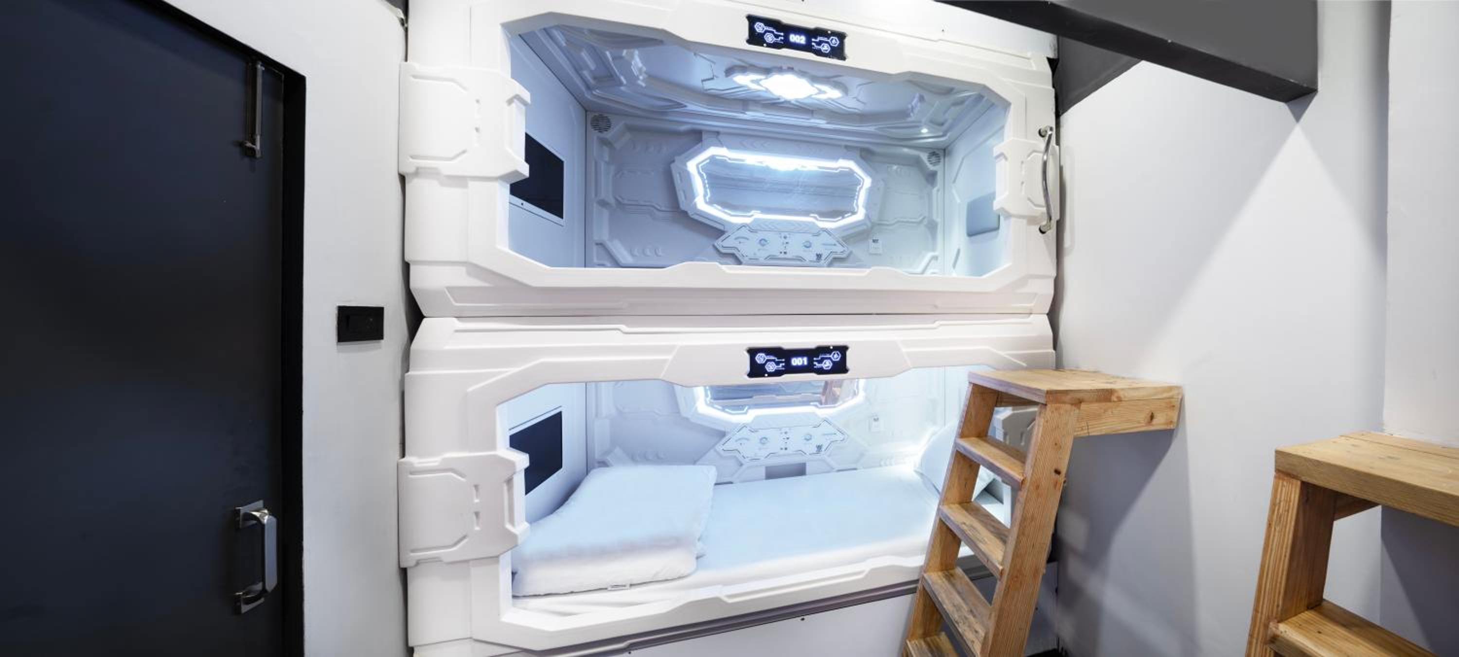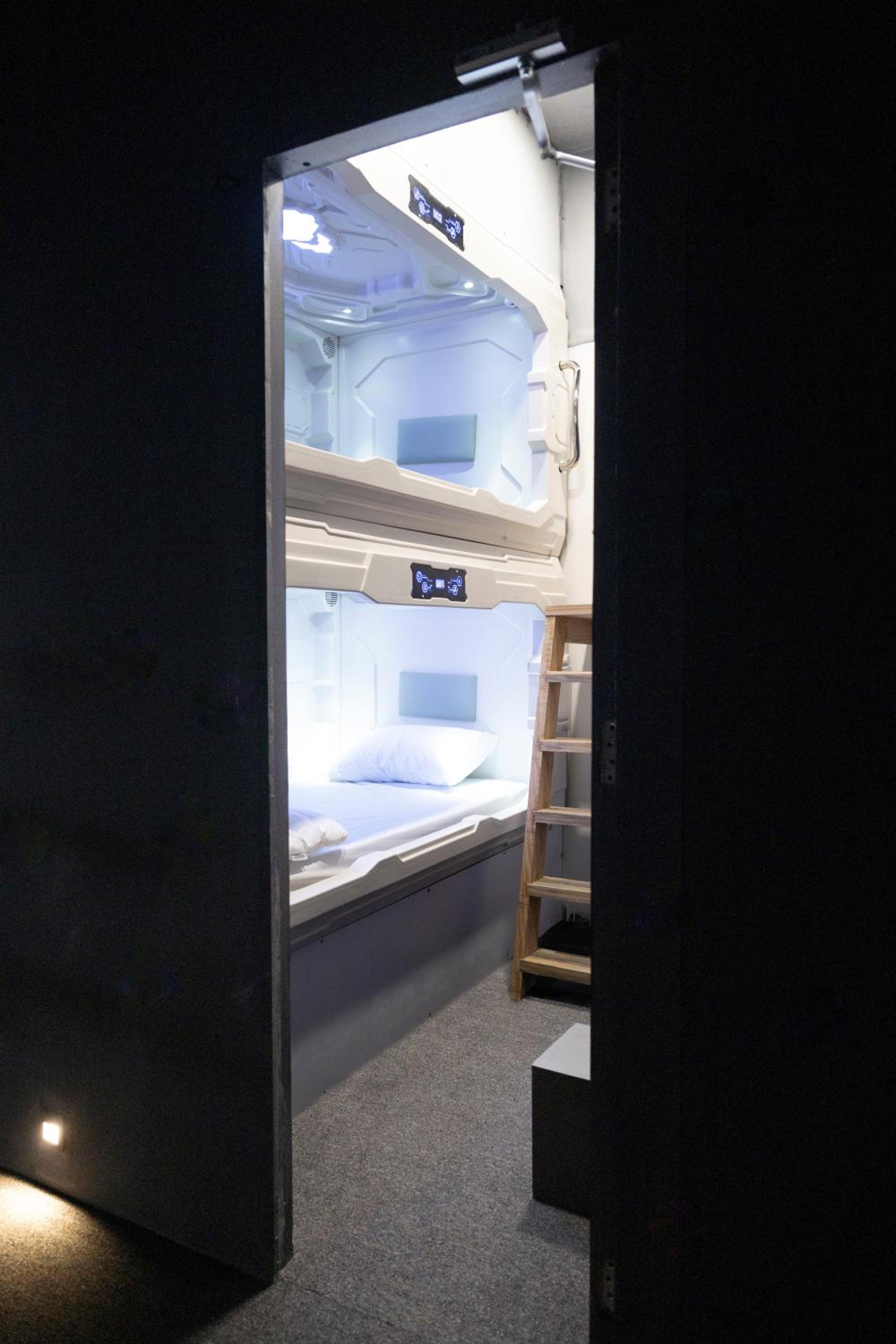 Experience the sleek and minimalist design of our premium POD hotel, featuring comfortable capsules with all the amenities you need for a relaxing stay.