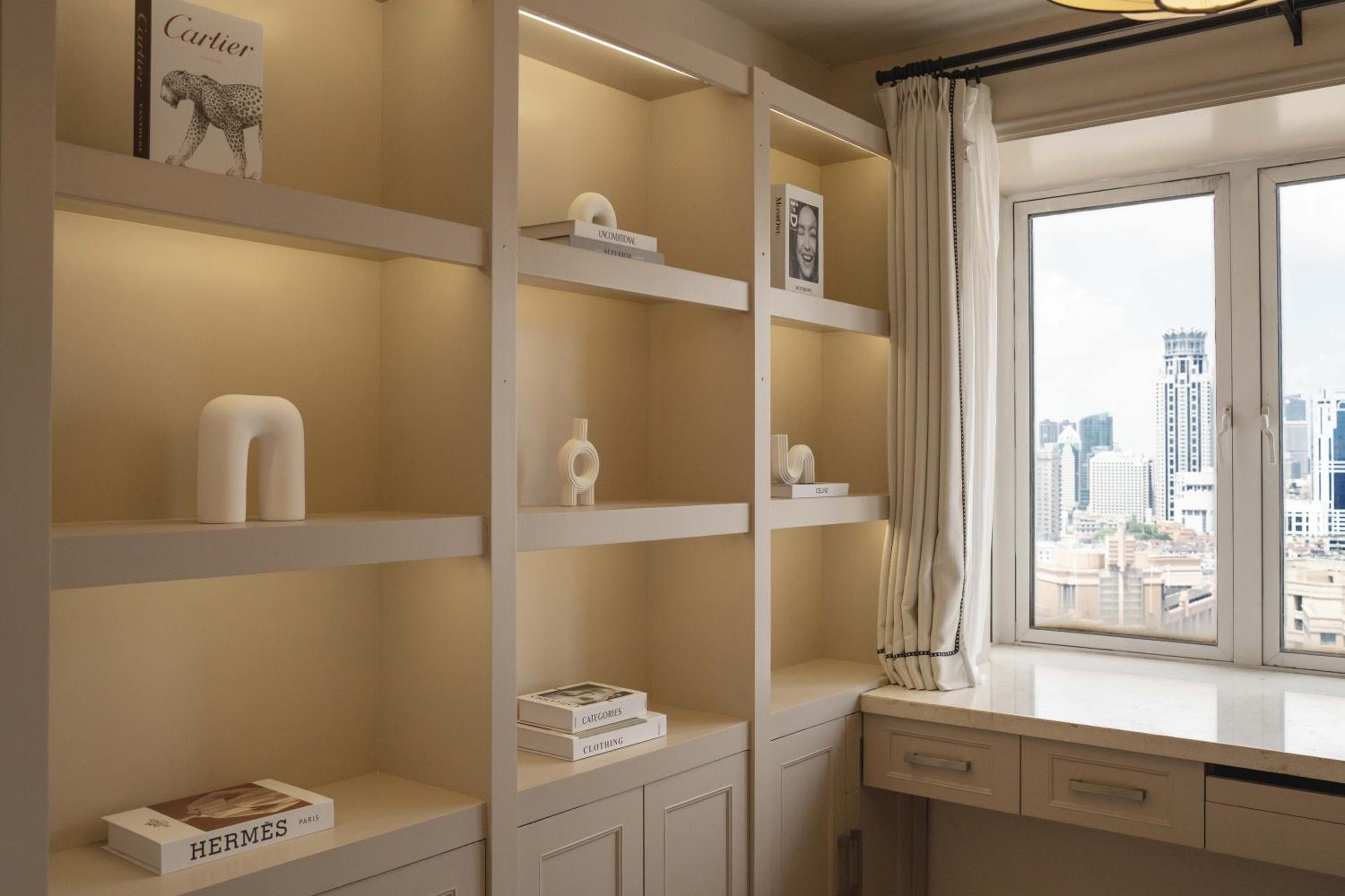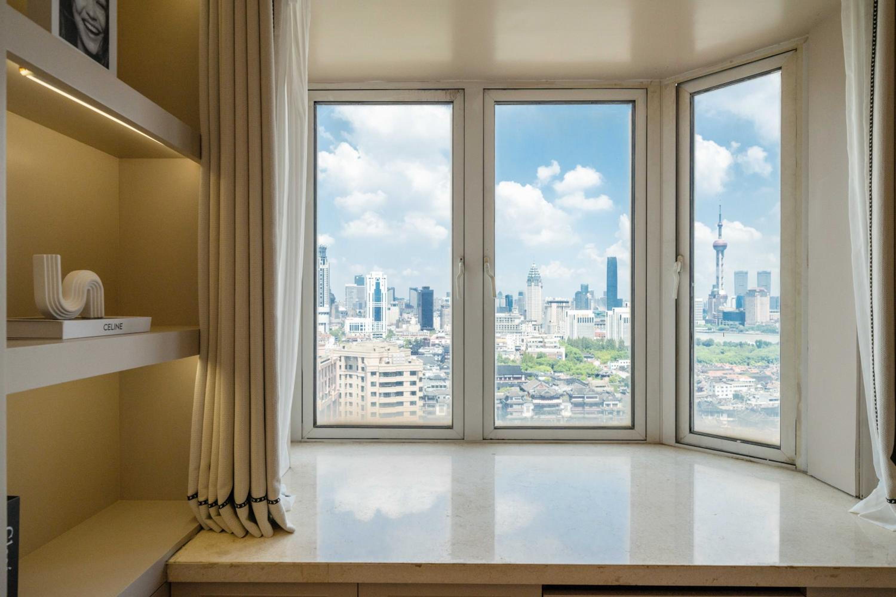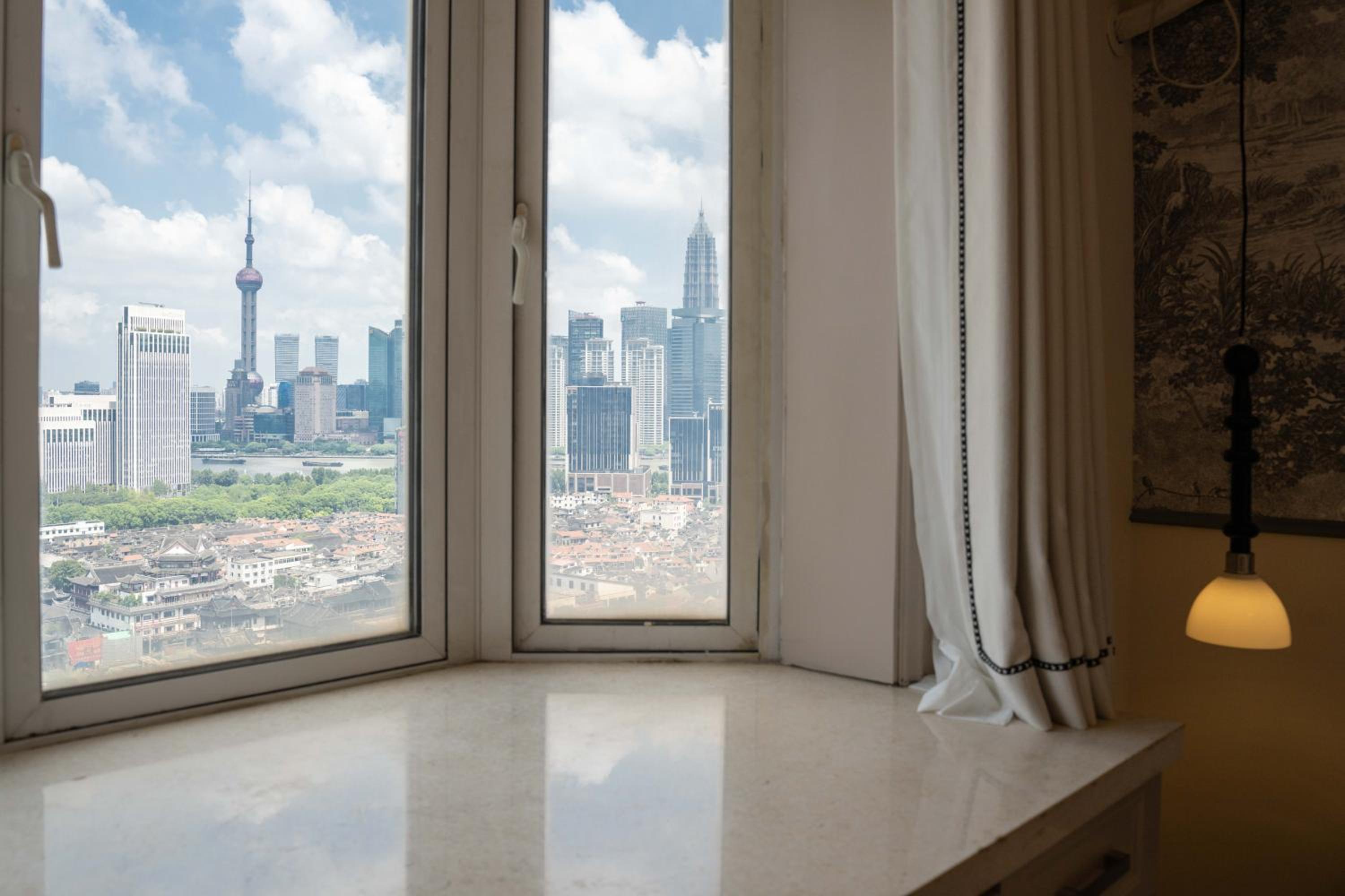 Have living room and night view. Can see Yuyuan garden and Shianghai Tower.