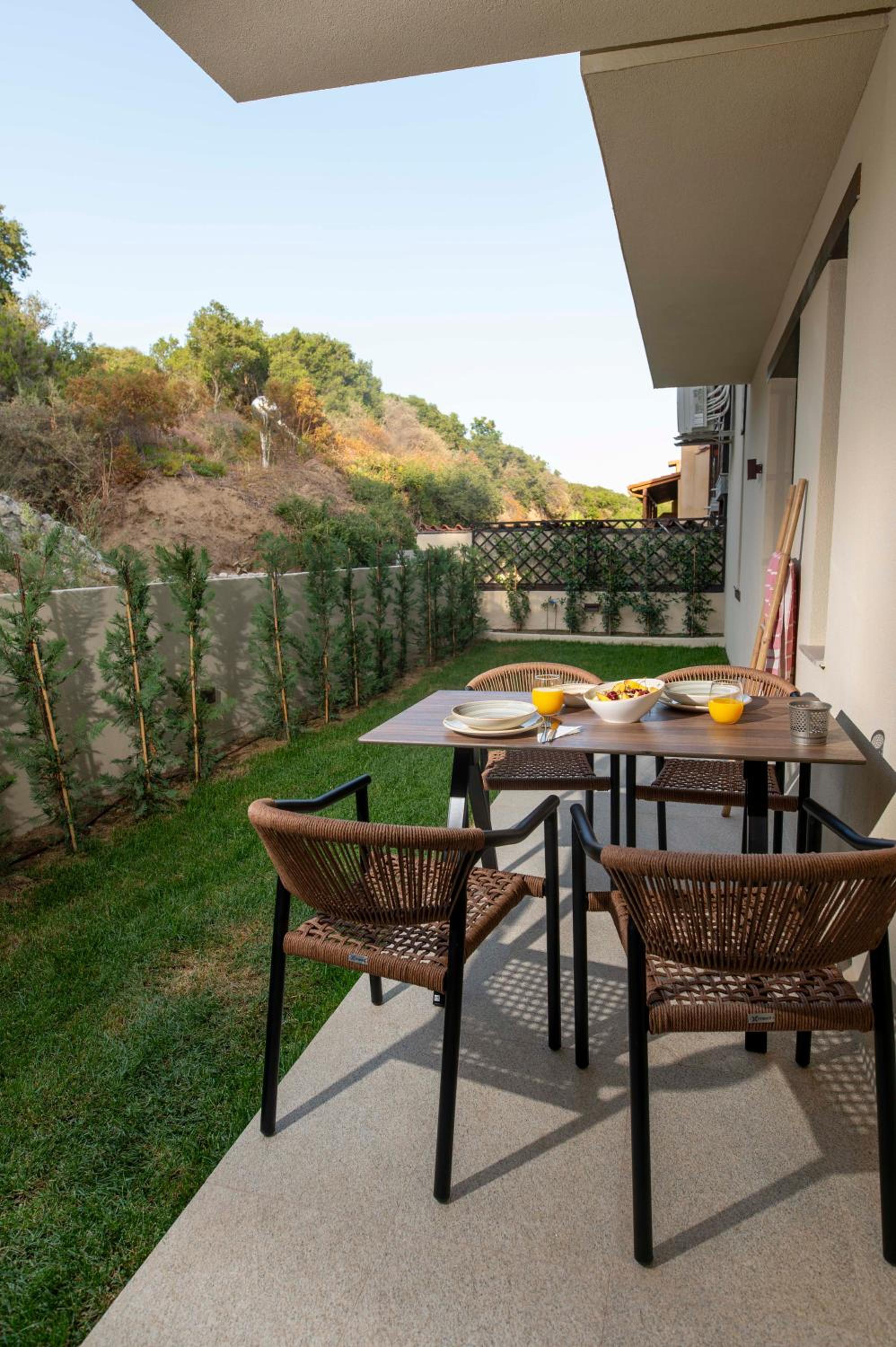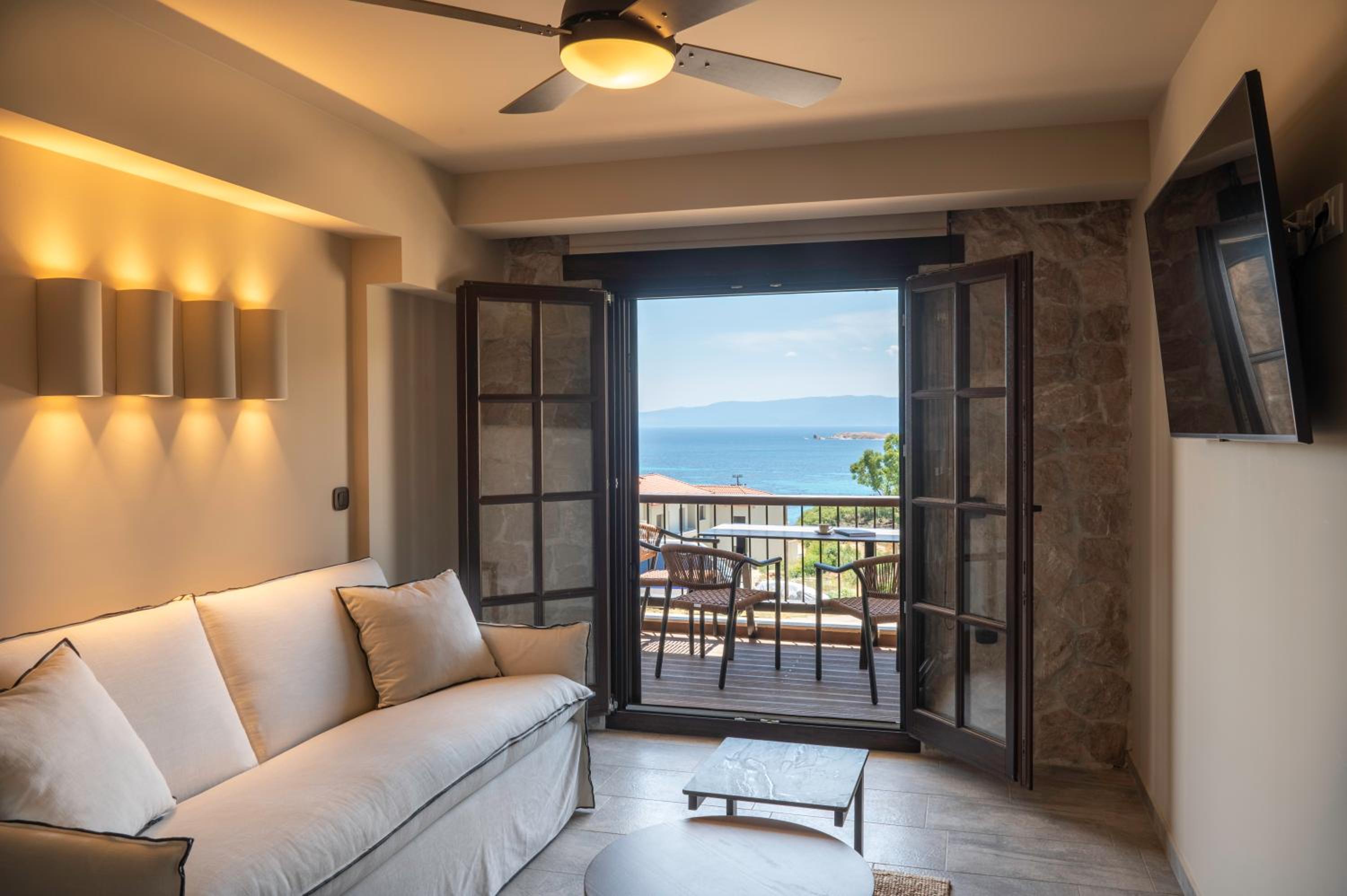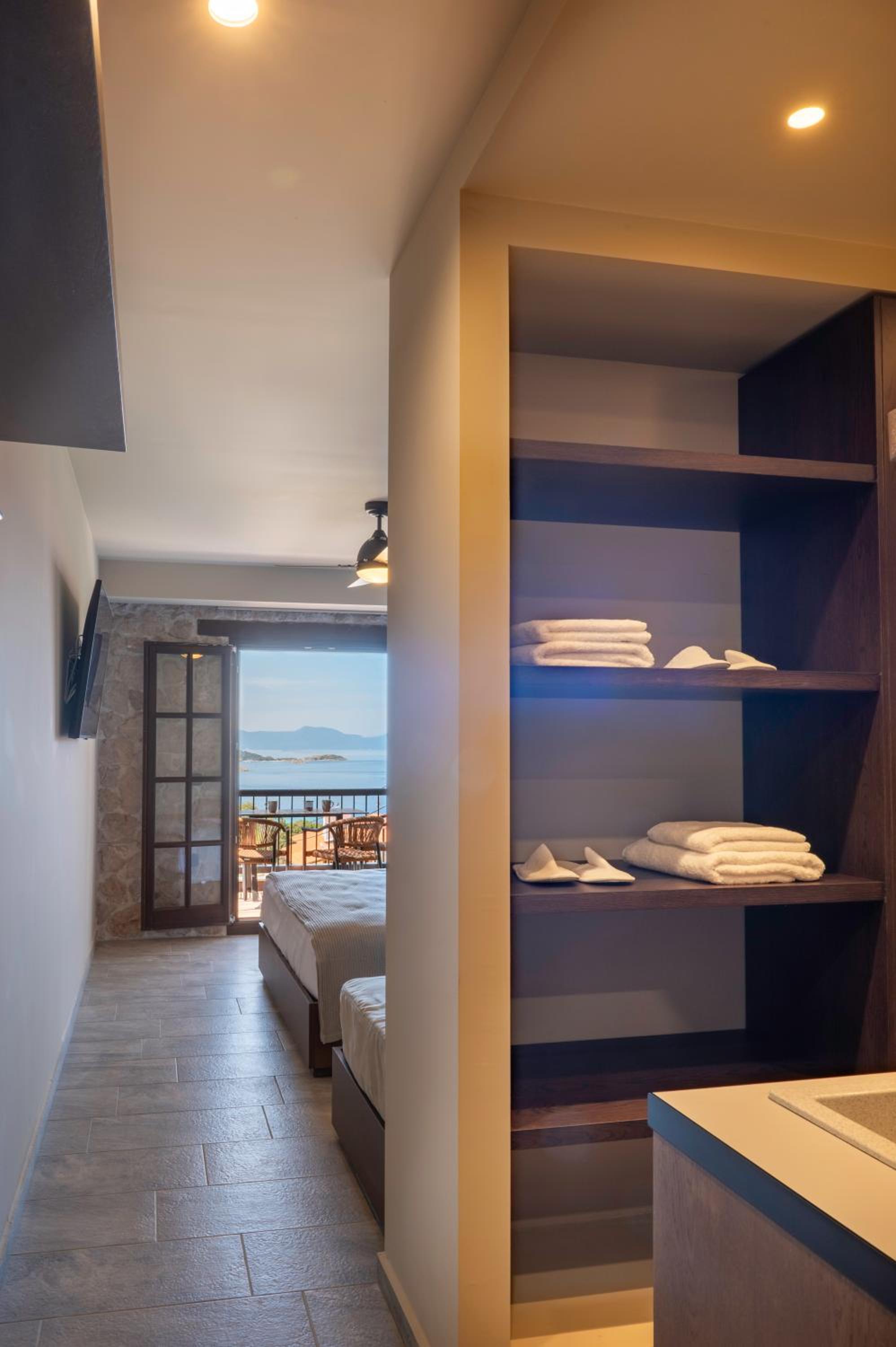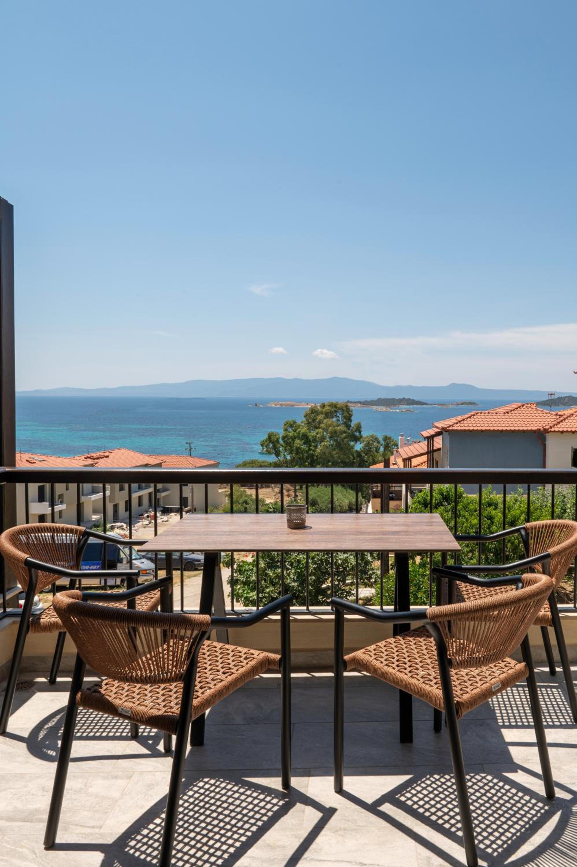The location was excellent, with a beautiful view of the sea from the balconies. 3 minute drive to downtown and 3 minute drive to excellent organized beaches in the other direction. Super clean and new! Great water pressure (hard to find in Greece) and great amenities. Friendly and hospitable staff who went above and beyond for my family of 5. Very fairly priced.