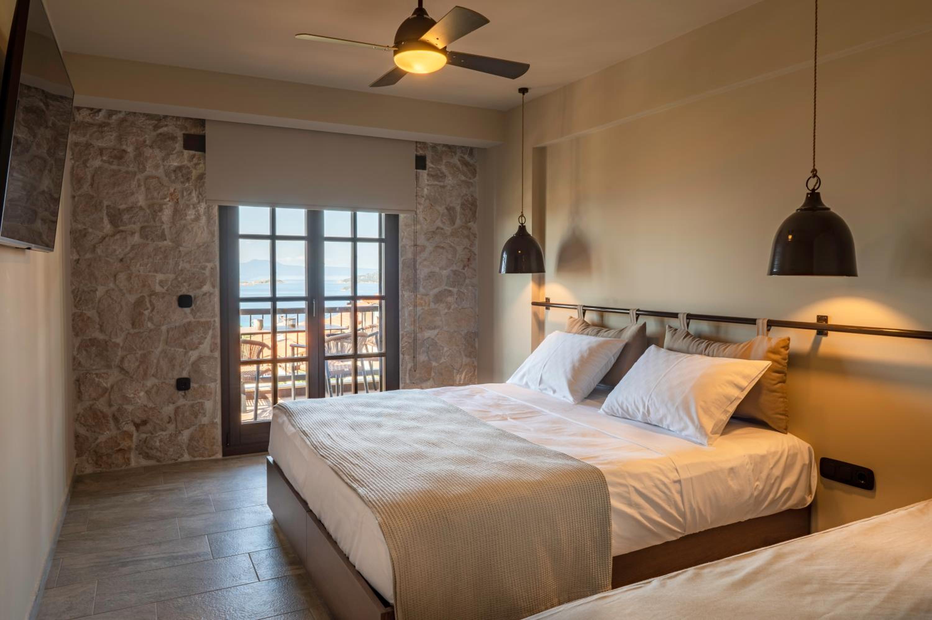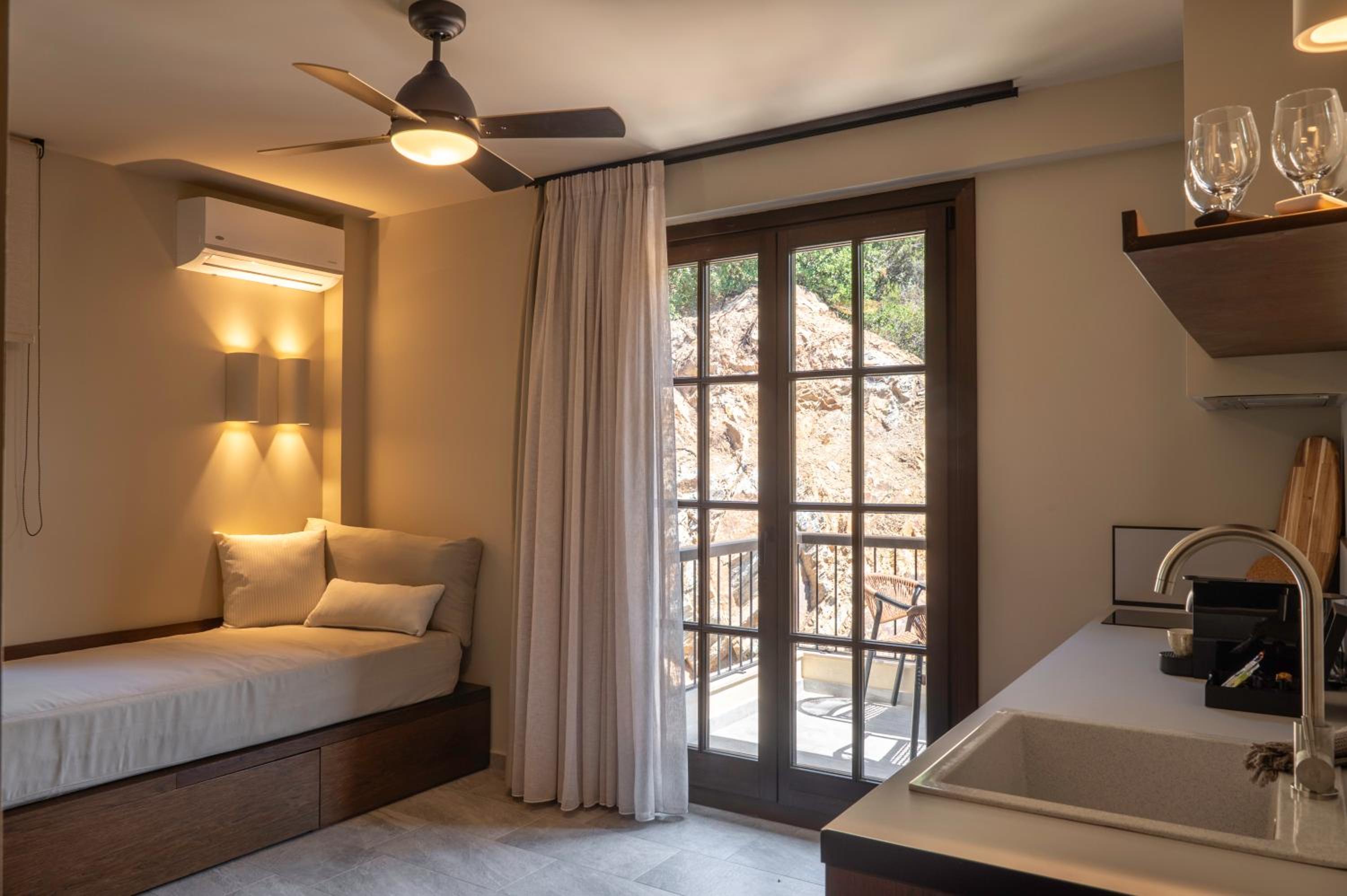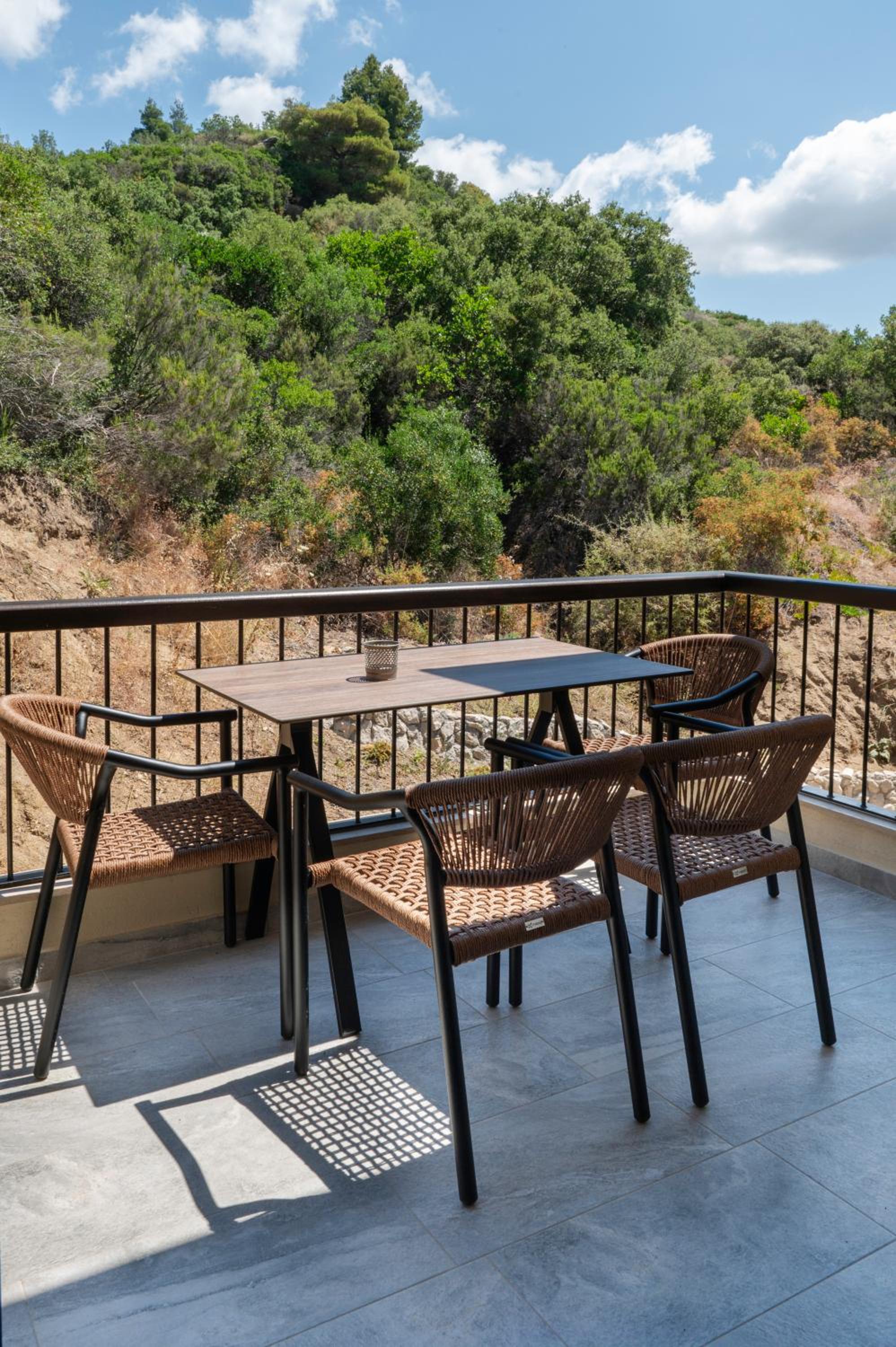 Στα συν το ωραίο μπαλκόνι με τη θέα στα Δρένια απέναντι