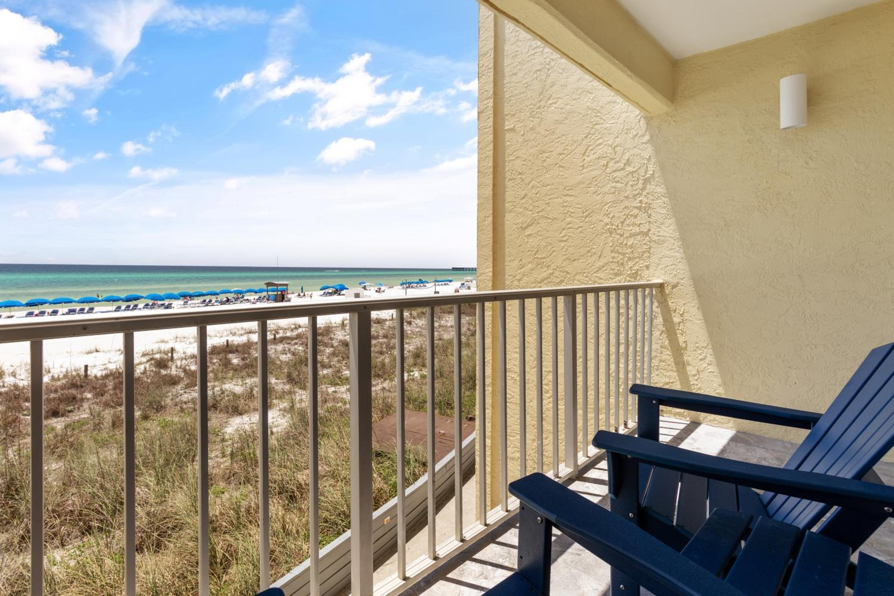 Enjoy breathtaking views of the sea from your balcony at K and J Panama City Beach.