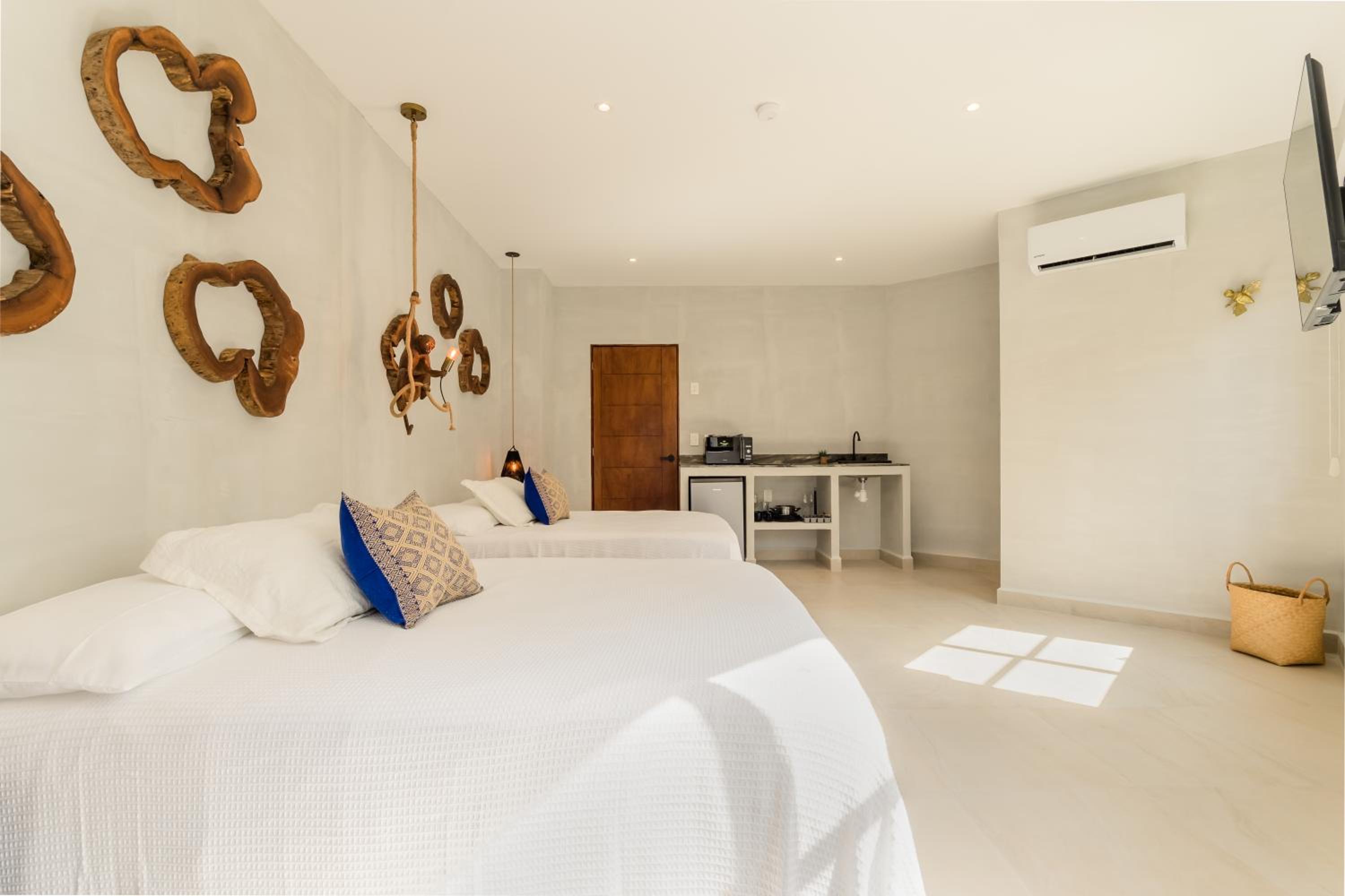 Friendly staff and good, consistent WiFi. Good location with restaurants walking distance and an Oxxo for groceries and essentials like adapters. Beach access a 15 minute walk.