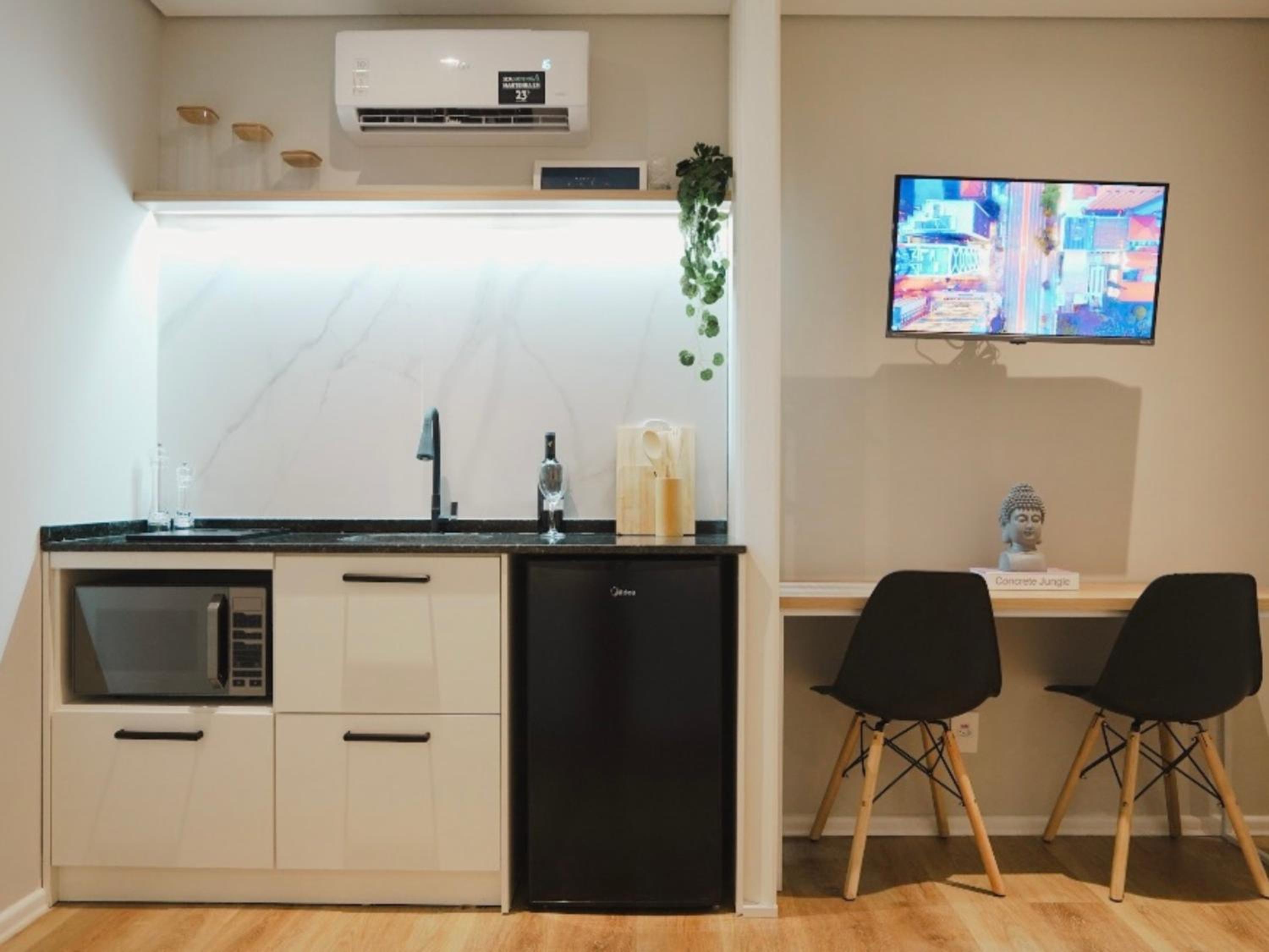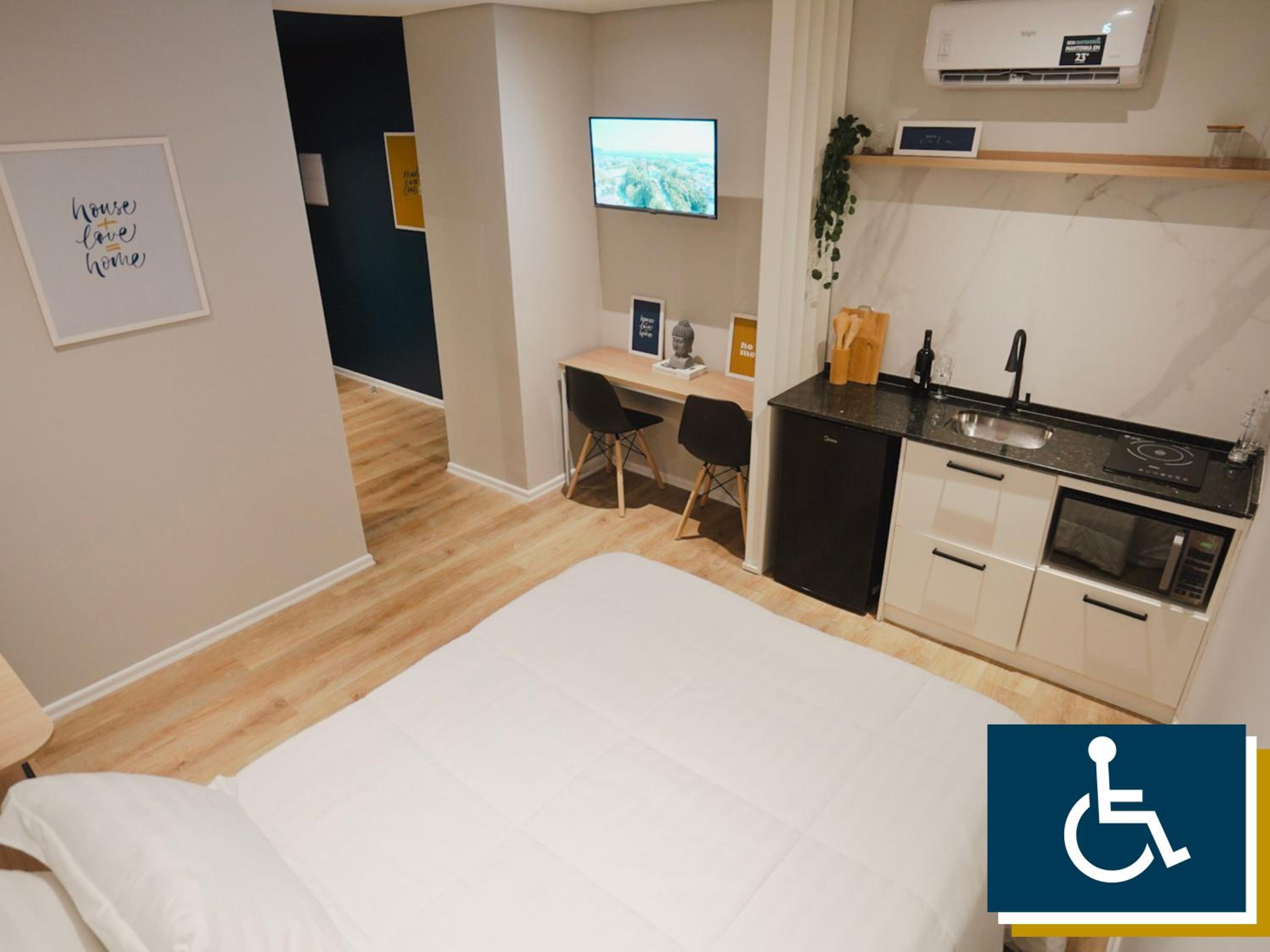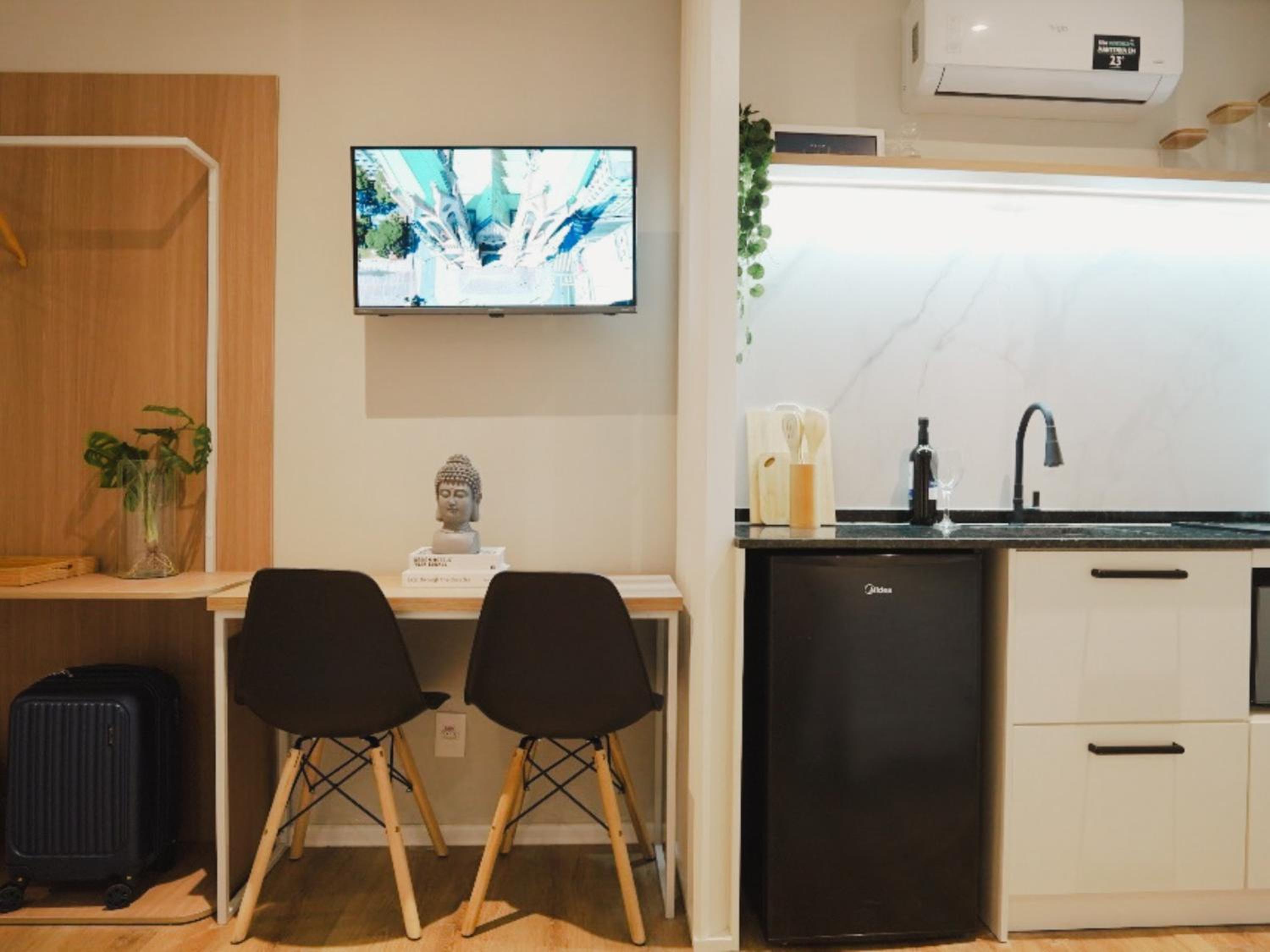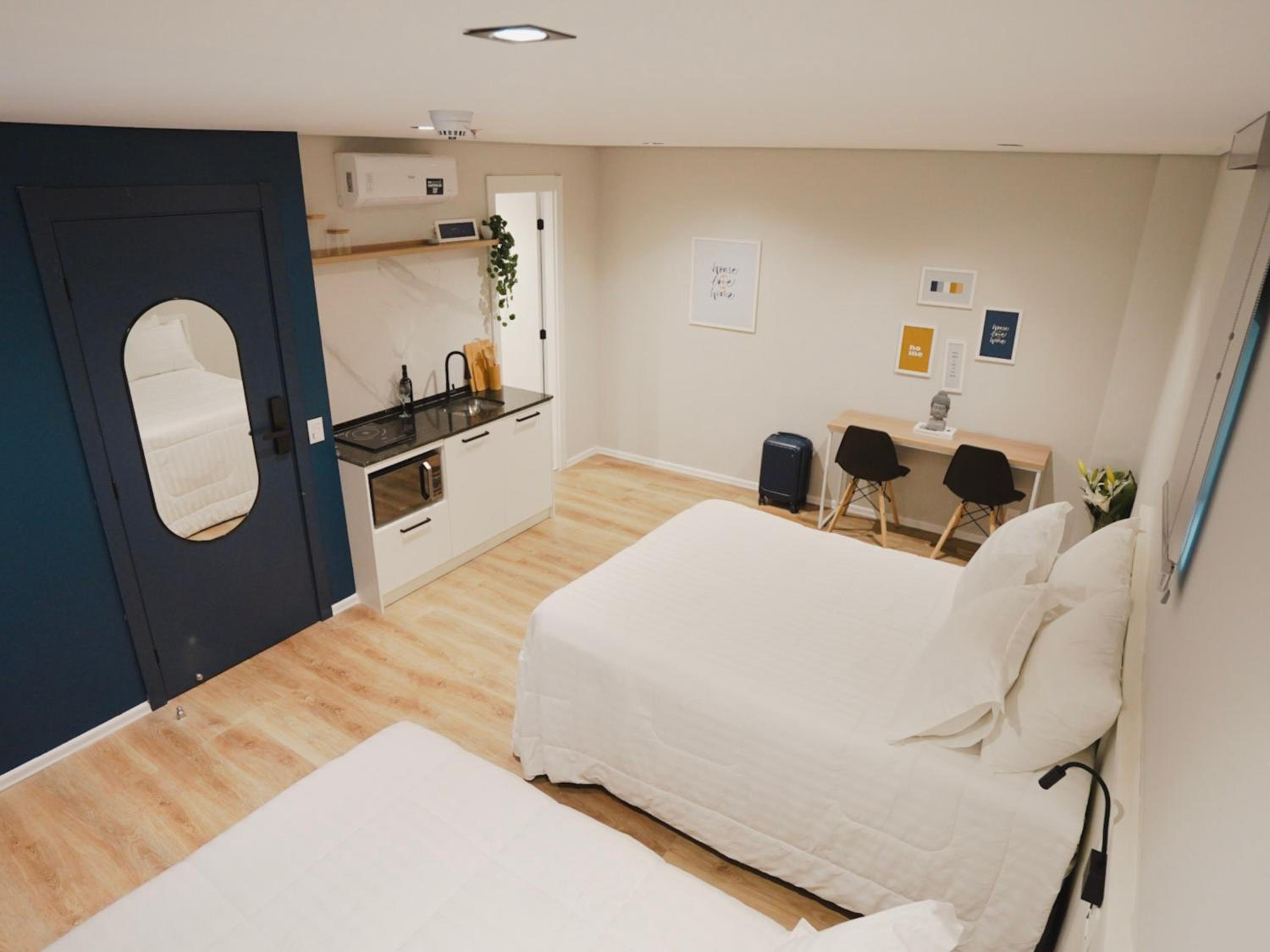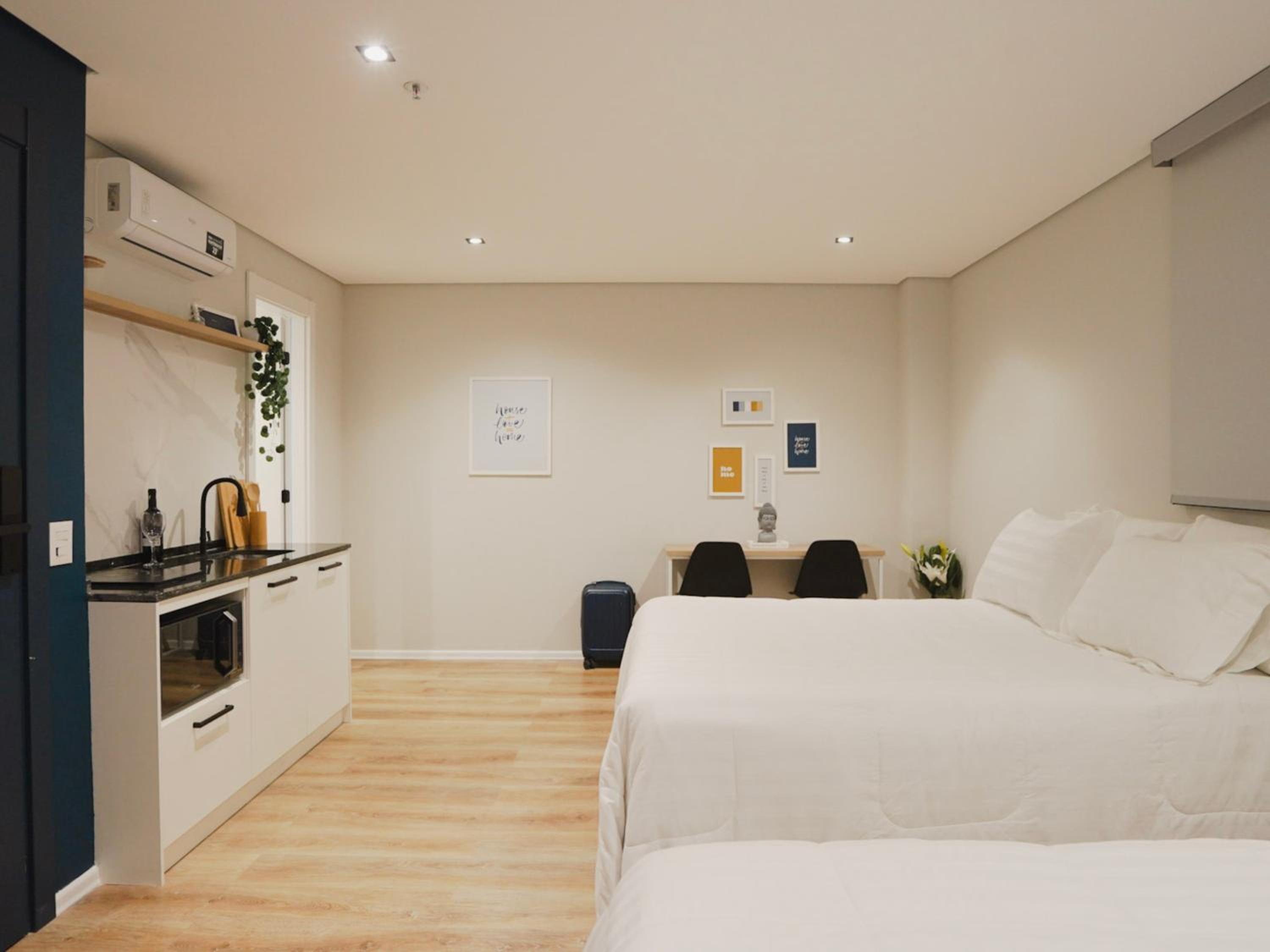 Each unit at the aparthotel is thoughtfully designed with a flat-screen TV, private bathroom, and cozy bed linen. Guests can also enjoy the convenience of free WiFi and kitchenware during their stay.