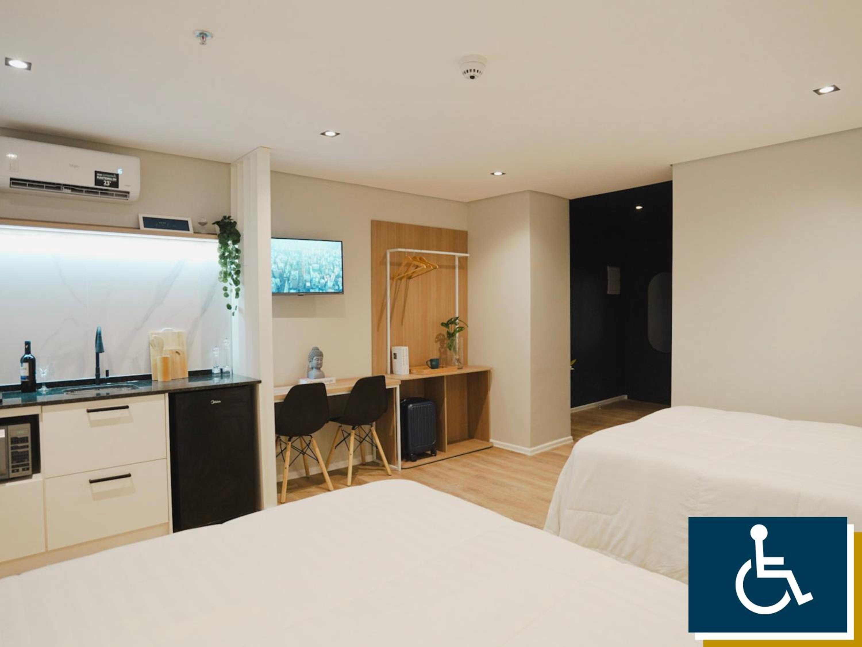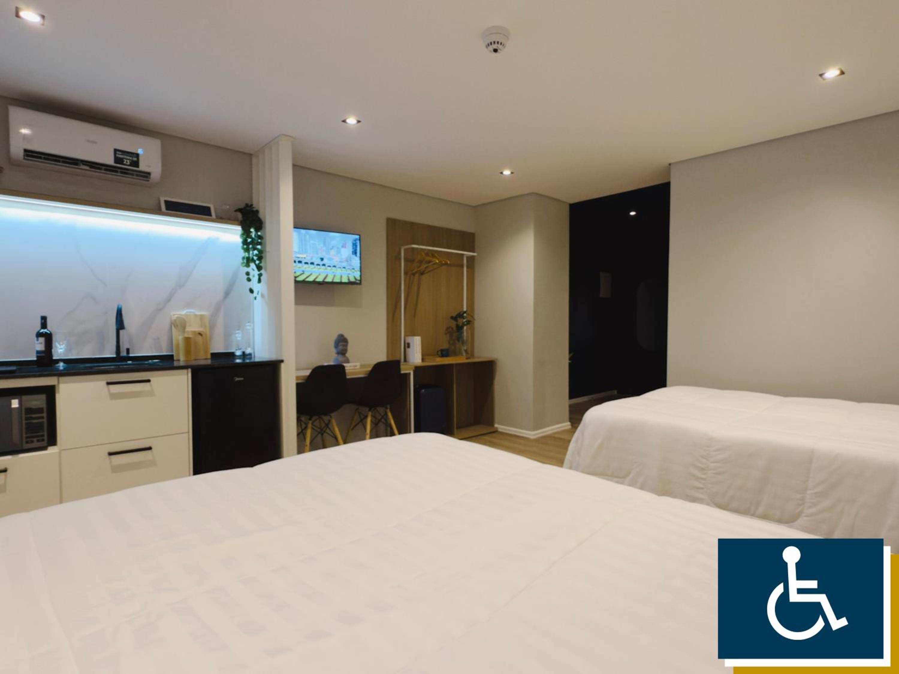 Barulho demais, paredes finas - você ouve as pessoas passando e conversando no corredor a noite inteira. Além disso, eu pedi uma cadeira ou banco para minha mãe, deficiente, poder tomar banho e eles disseram que não oferecem isso. Reservei o quarto para PCD e no banheiro só haviam as barras, não tinha a cadeira fixa na parede, como de praxe em outros hotéis. Será que dá para instalar? Fica a dica.