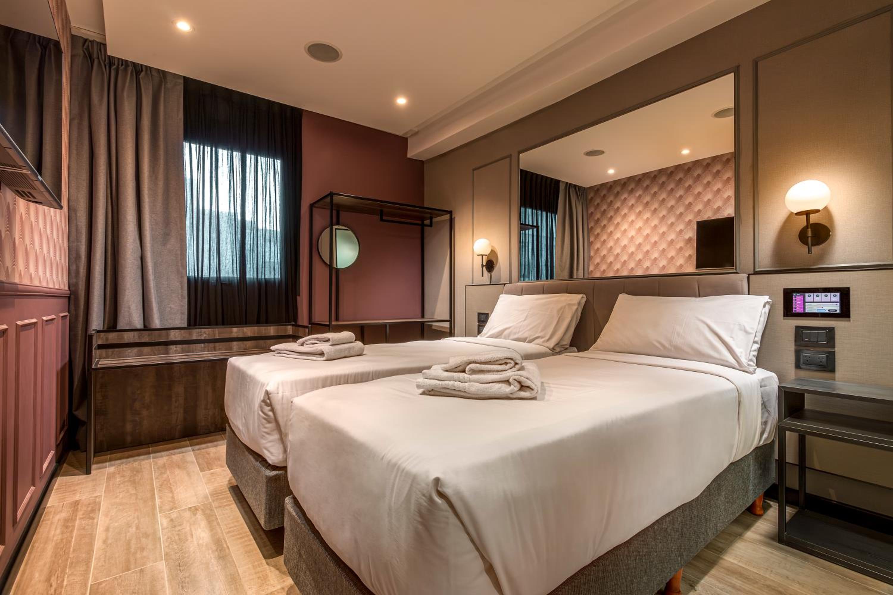 Air-conditioned rooms with modern amenities such as a safety deposit box and flat-screen TV.
