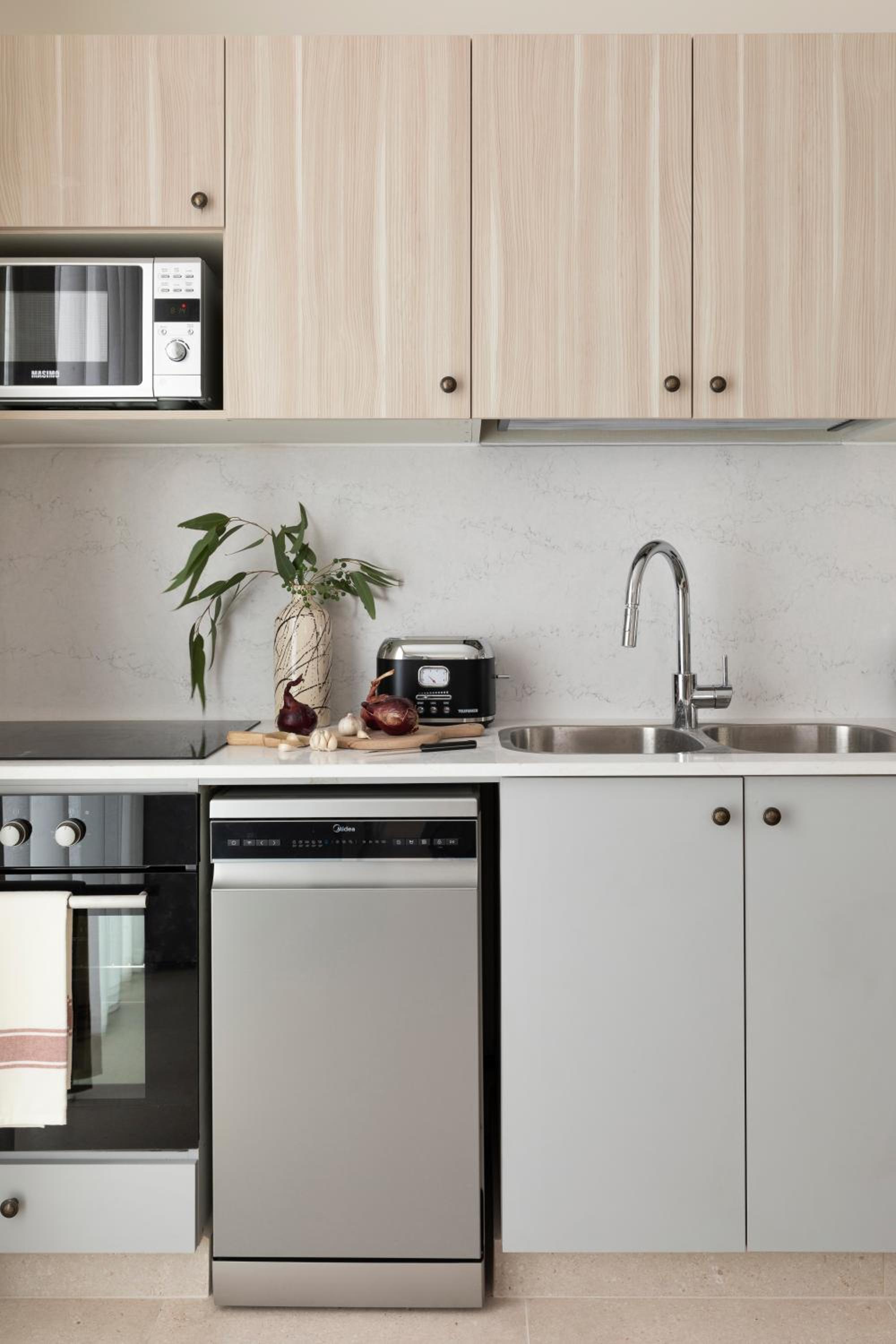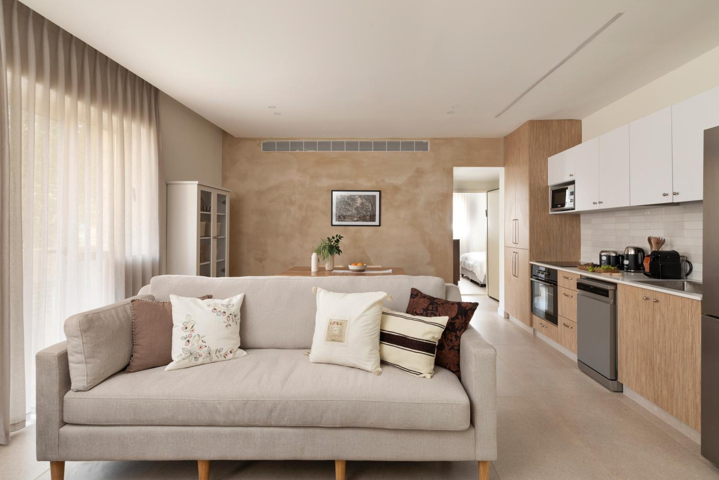 הדירות מאובזרות בהכל- כולל כלי מטבח, מיקרו, תנור, מקרר, כירה חשמלית ואפילו מכונת כביסה.
