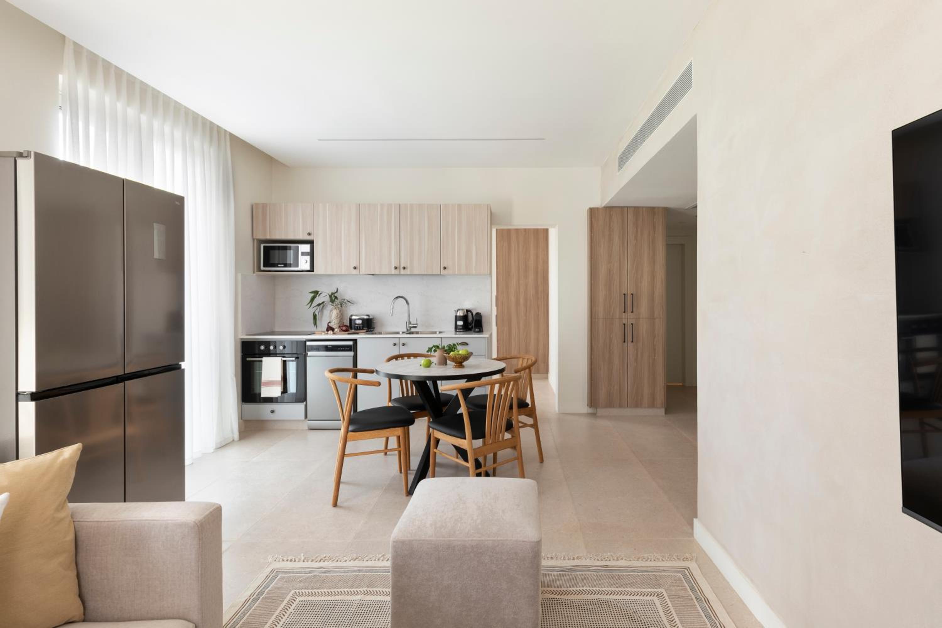 The property was beautiful! The staff were very nice and helpful and helped with all of our questions. We had some requests to make sure we can stay there on Shabbat and they provided everything. The apartment was centrally located and we were able to walk to everything we wanted to go to. We were even able to do laundry in the in unit laundry machine!