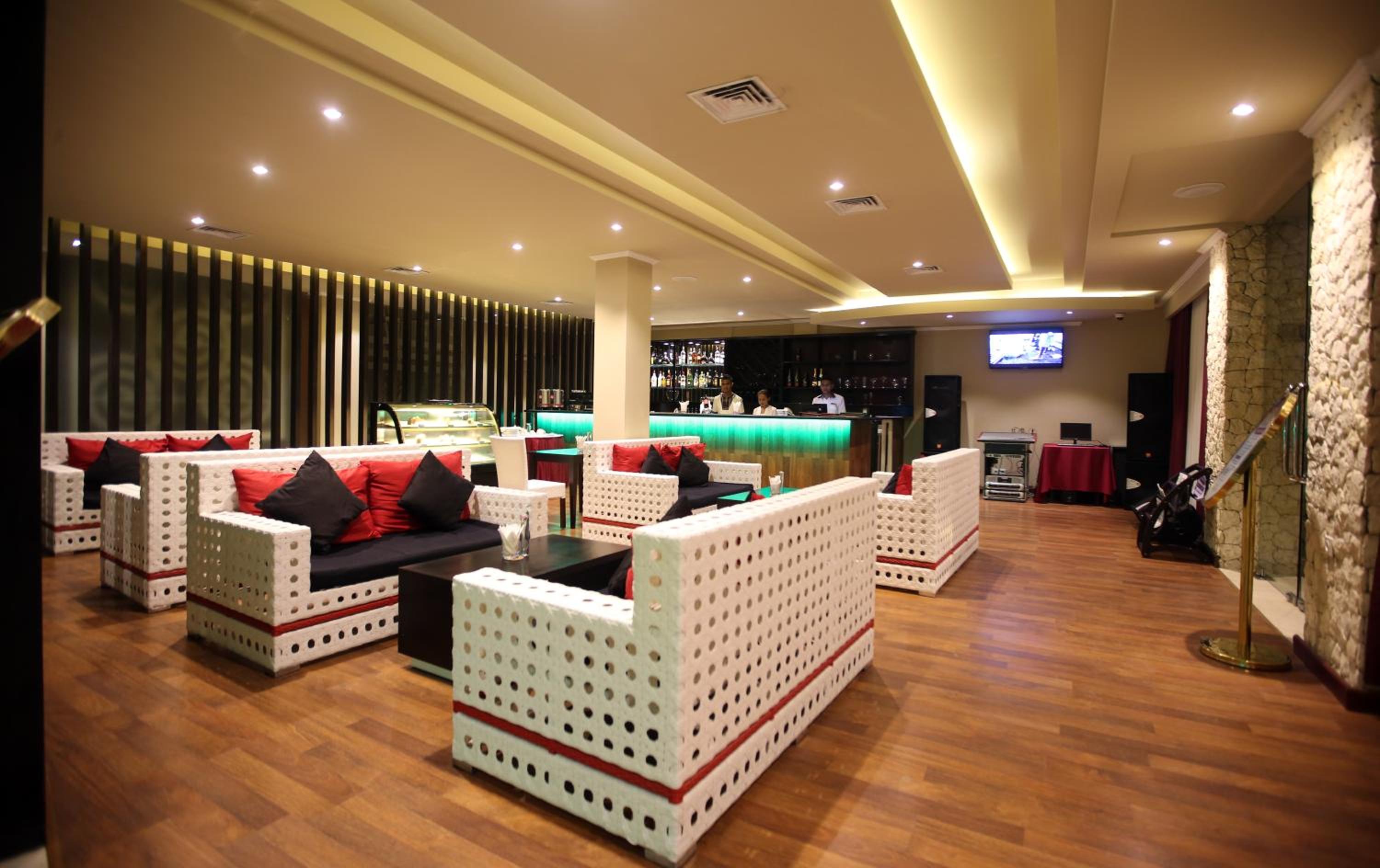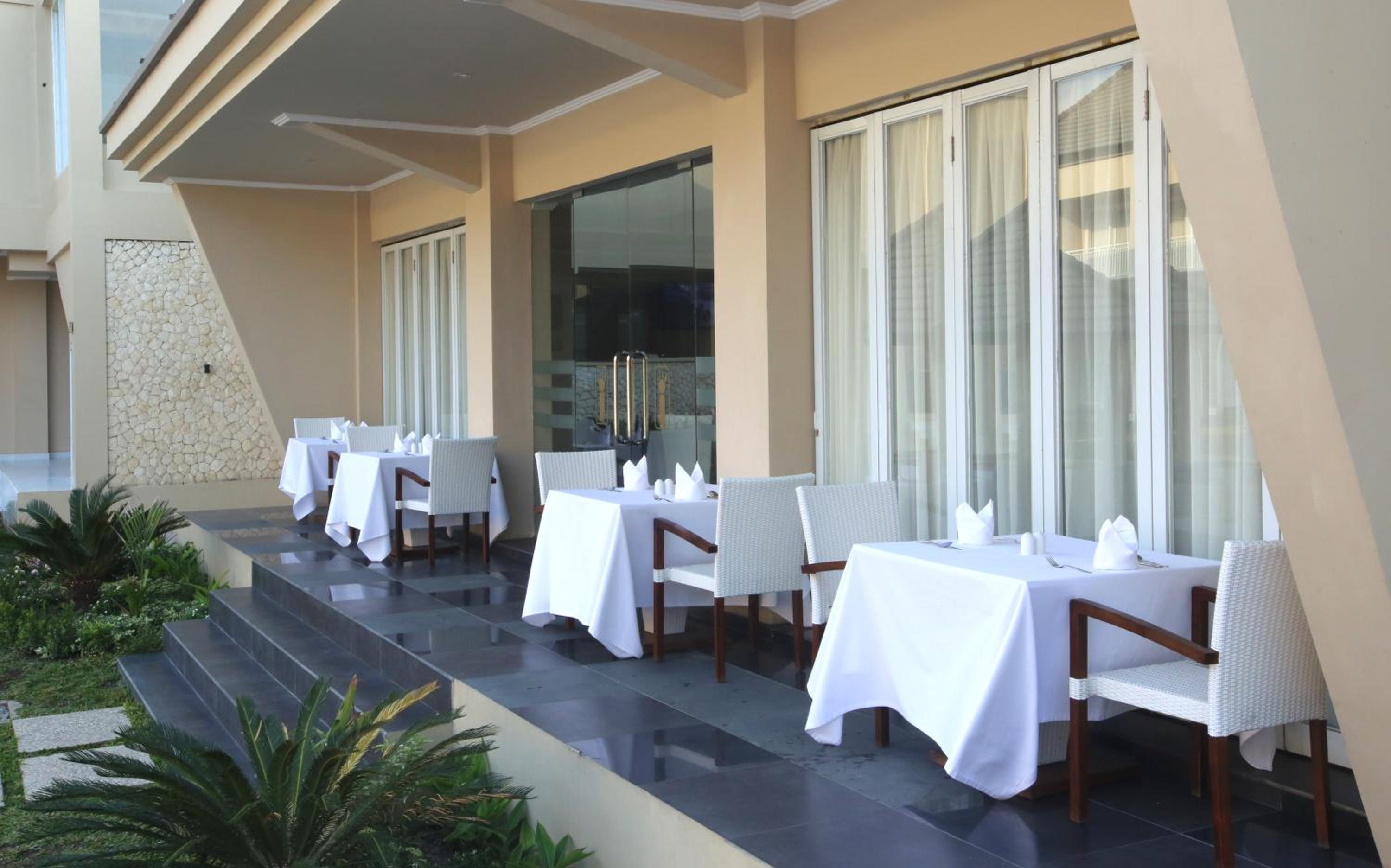 The breakfast was either by the pool if conferences were on or in the dining room, it was great. The room, pool exceeded expectations. I was visiting my son, most guests were there working. Amazing staff. Across the road a bar/restaurant where you can charge your room, overlooking the sea. Visited Hotel Timor which was also a choice and was so happy that I choose Novo, far exceeded other hotels. My son and I also did our dive certification for my 60th - perfect!