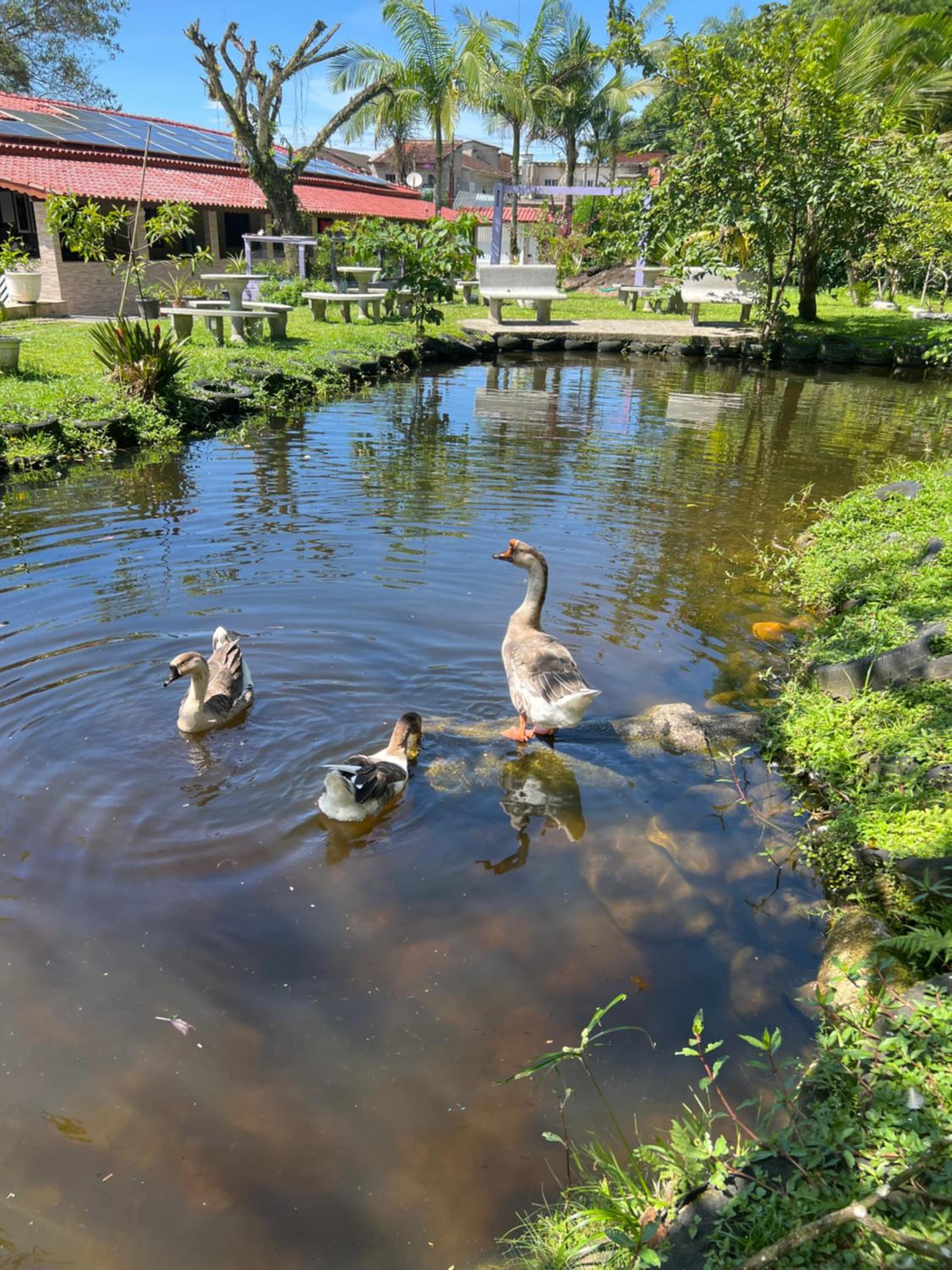 Enjoy stunning lake views and relax in the peaceful garden and terrace of Pousada Recanto do Zeca casa 3.