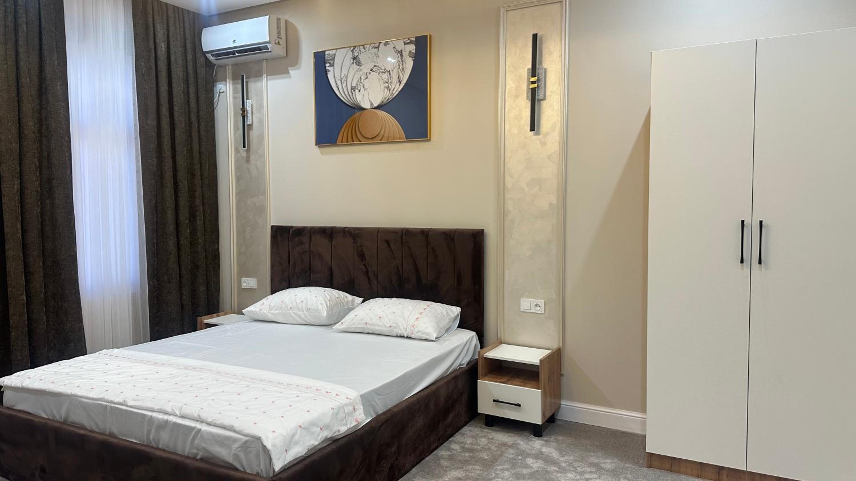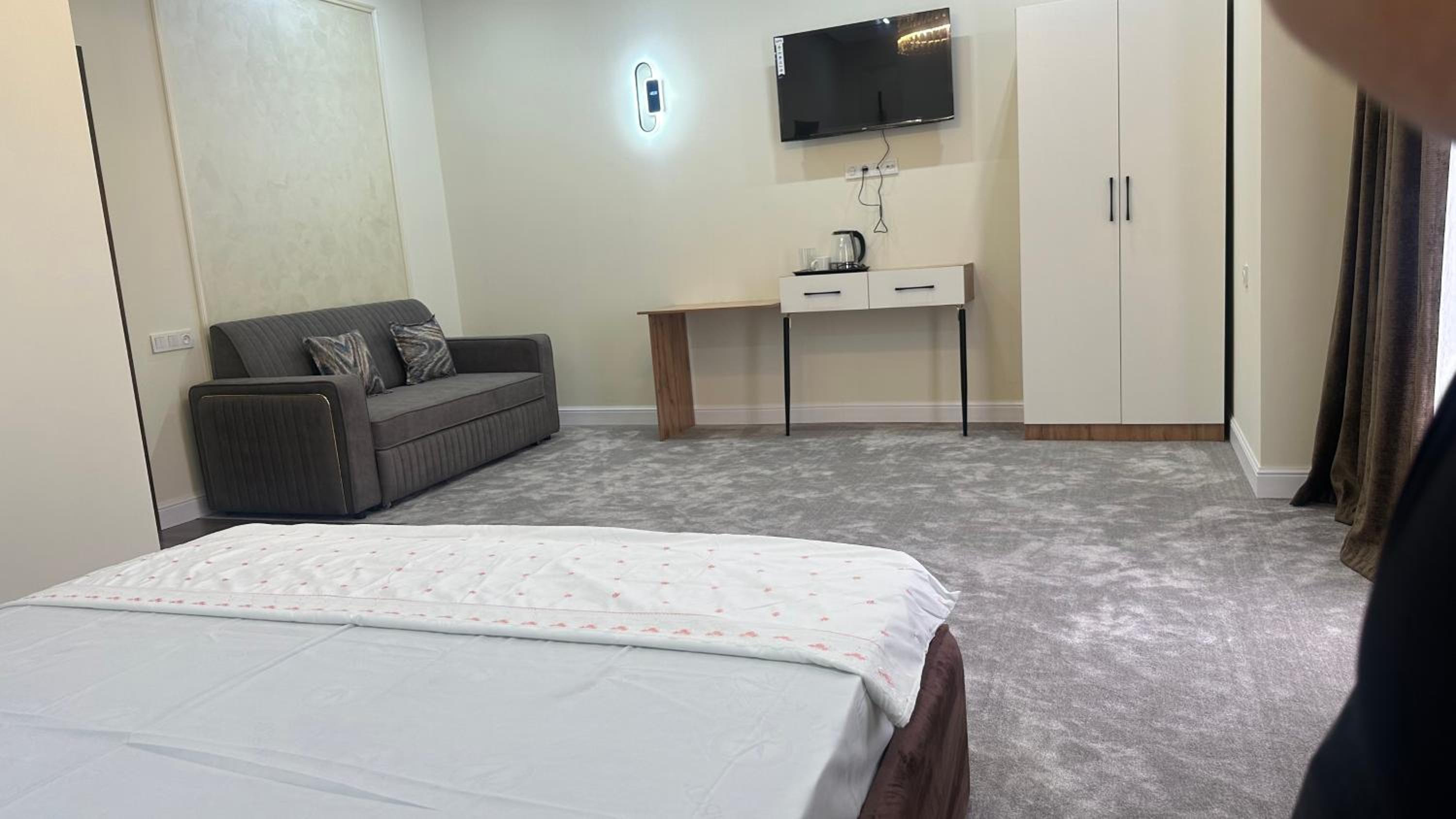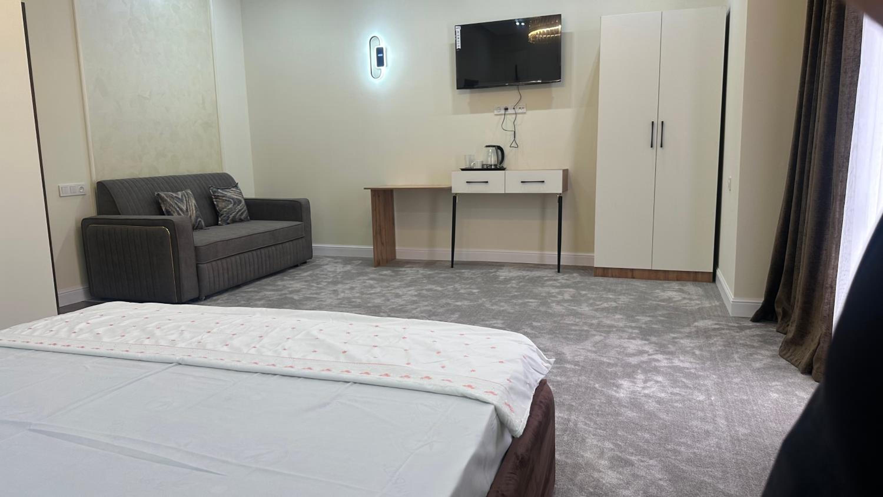 The air-conditioned rooms with wardrobes provide a comfortable and relaxing retreat for guests after a day of exploring Türkistan.