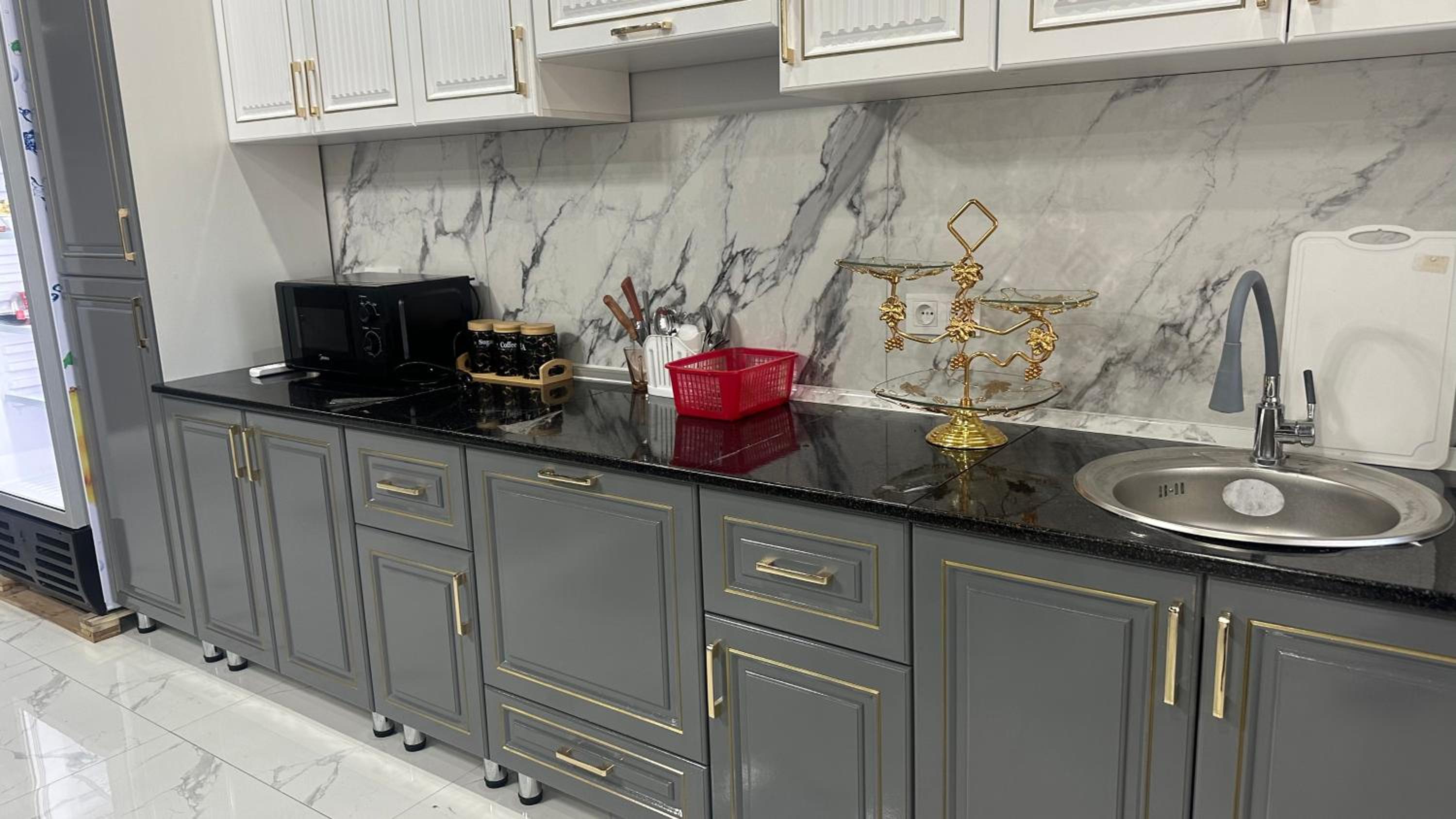 Common kitchen with fridge and microwave