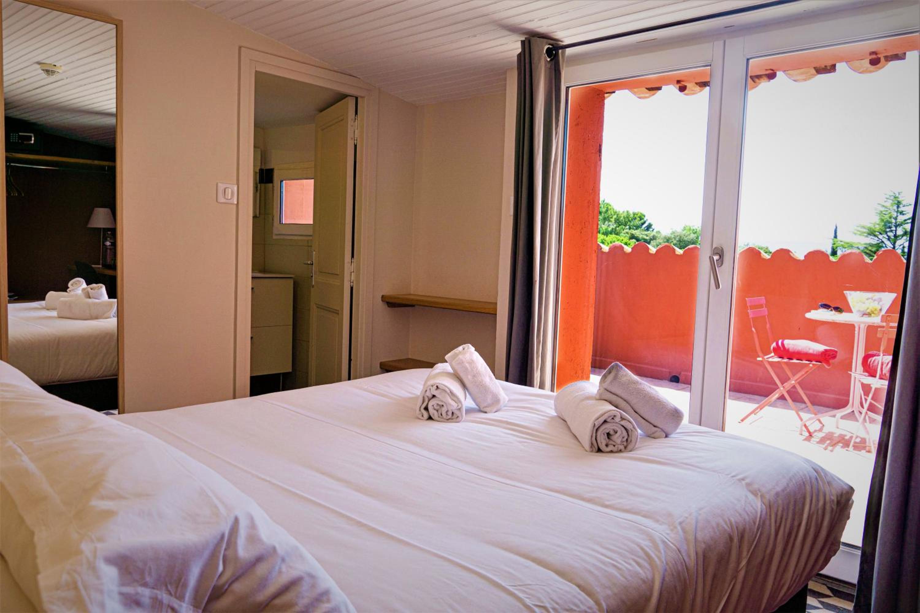 Experience comfort and elegance in our 18 rooms overlooking the picturesque village of Gordes and the valley. Each room is equipped with modern amenities like a flat-screen TV, satellite channels, and a cozy bathroom with a bath or shower.