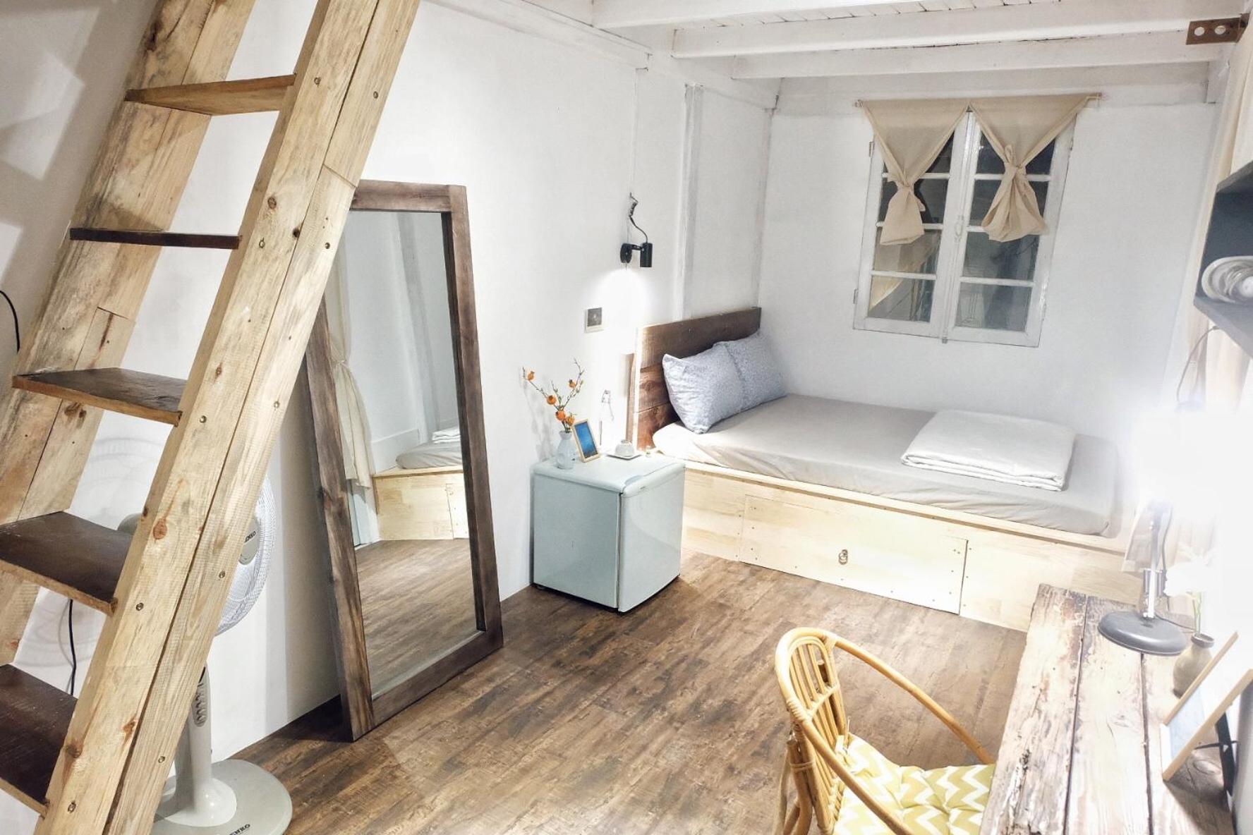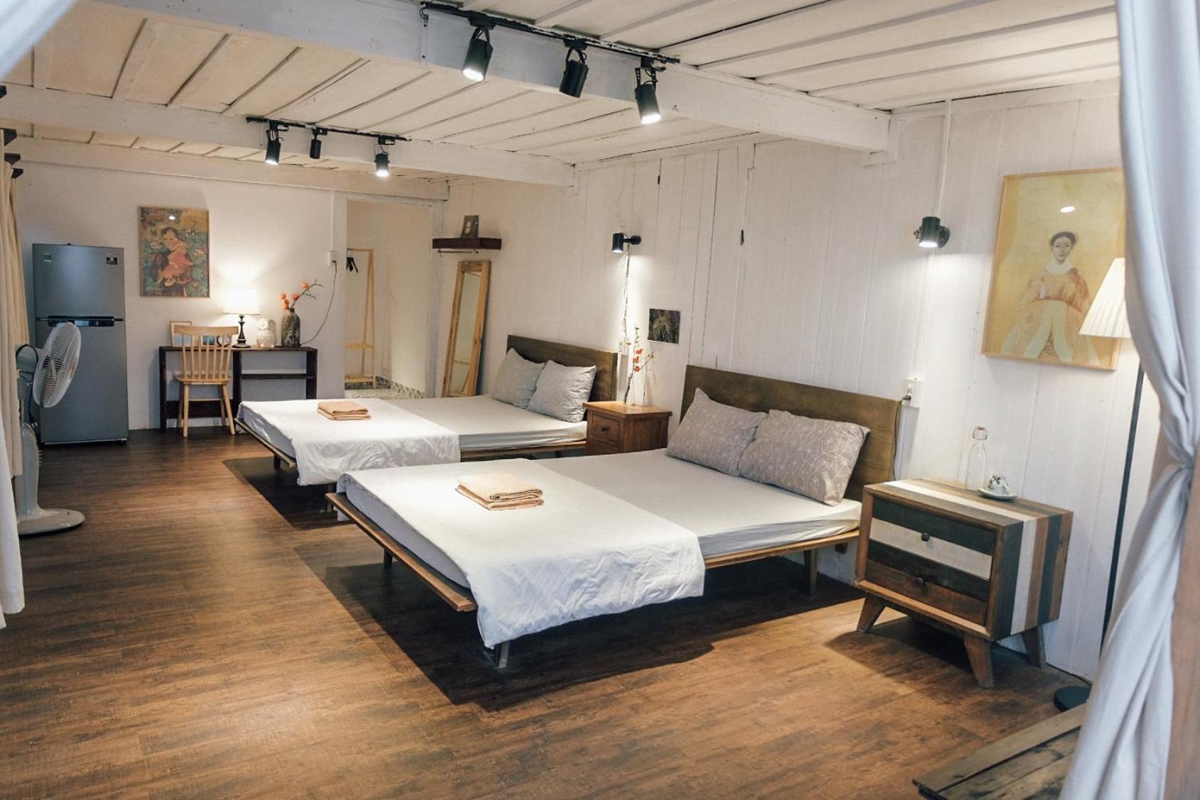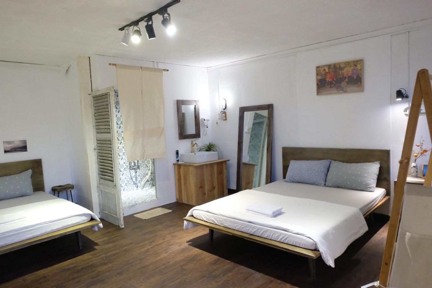 Mình book phòng 3 người dưới 1 giường đôi trên gác giường đơn . Phòng dưới cũng ok trên gác thì nóng ngộp hơi bụi , nên mình chọn book thêm 1 phòng khác ( tuỳ bên host cũng có đề nghị đổi phòng cho mình)