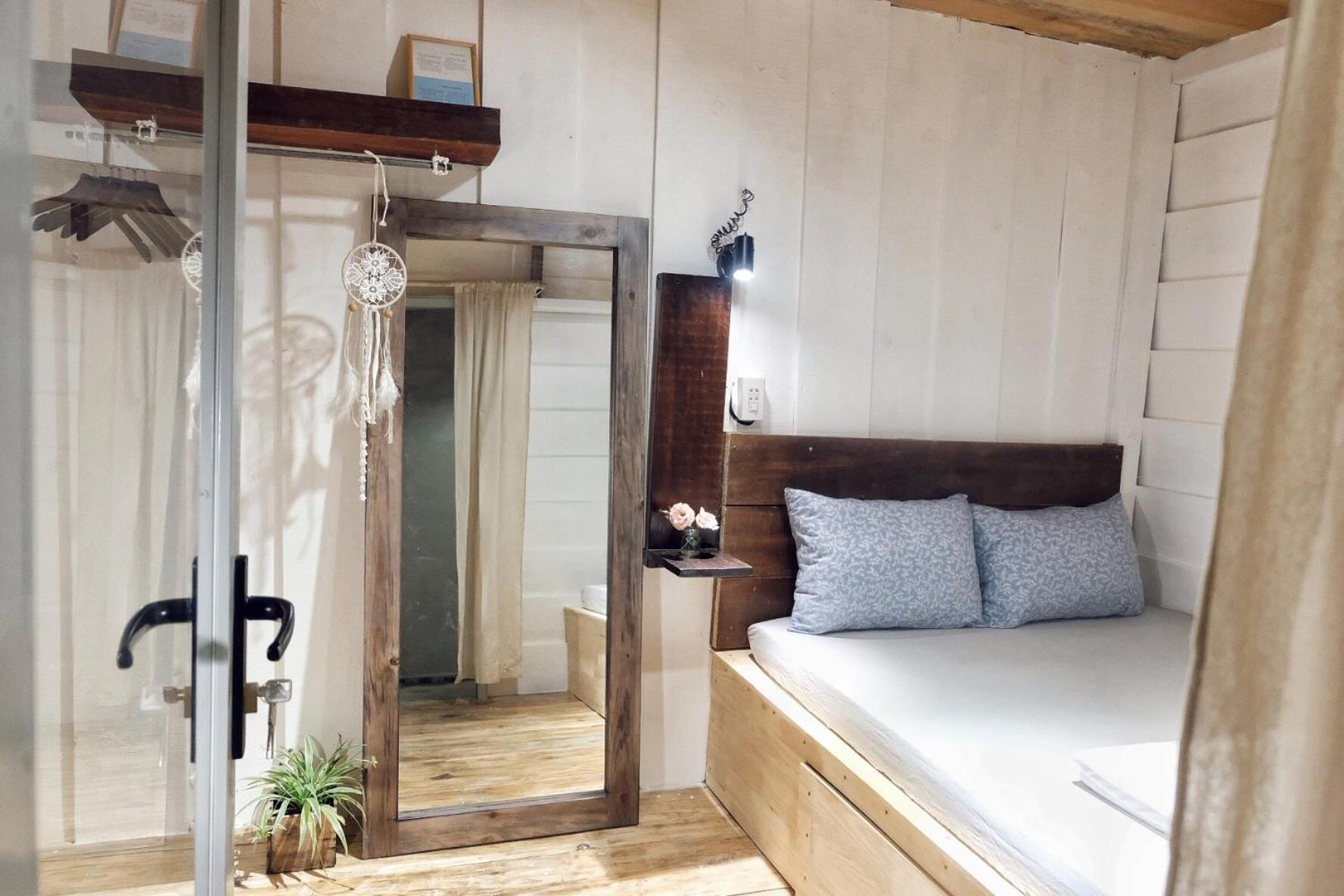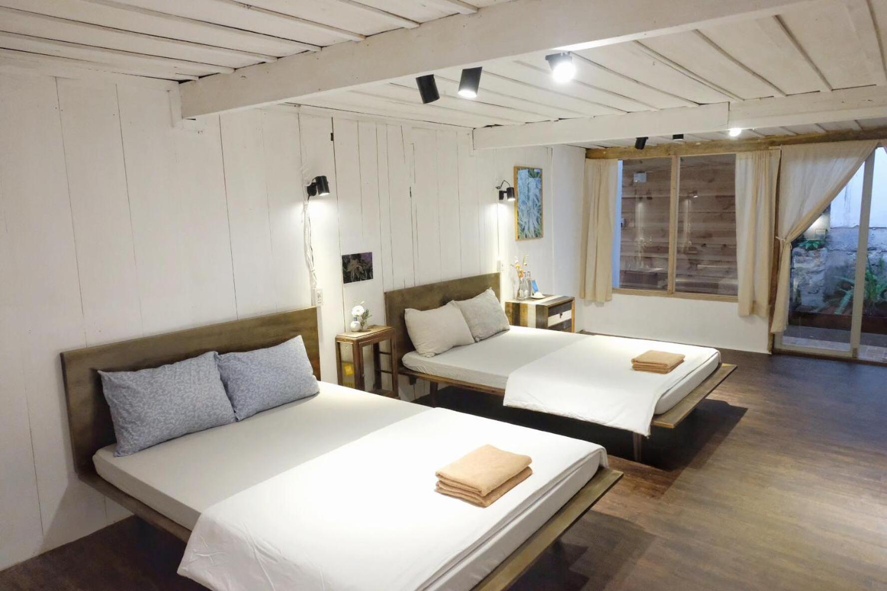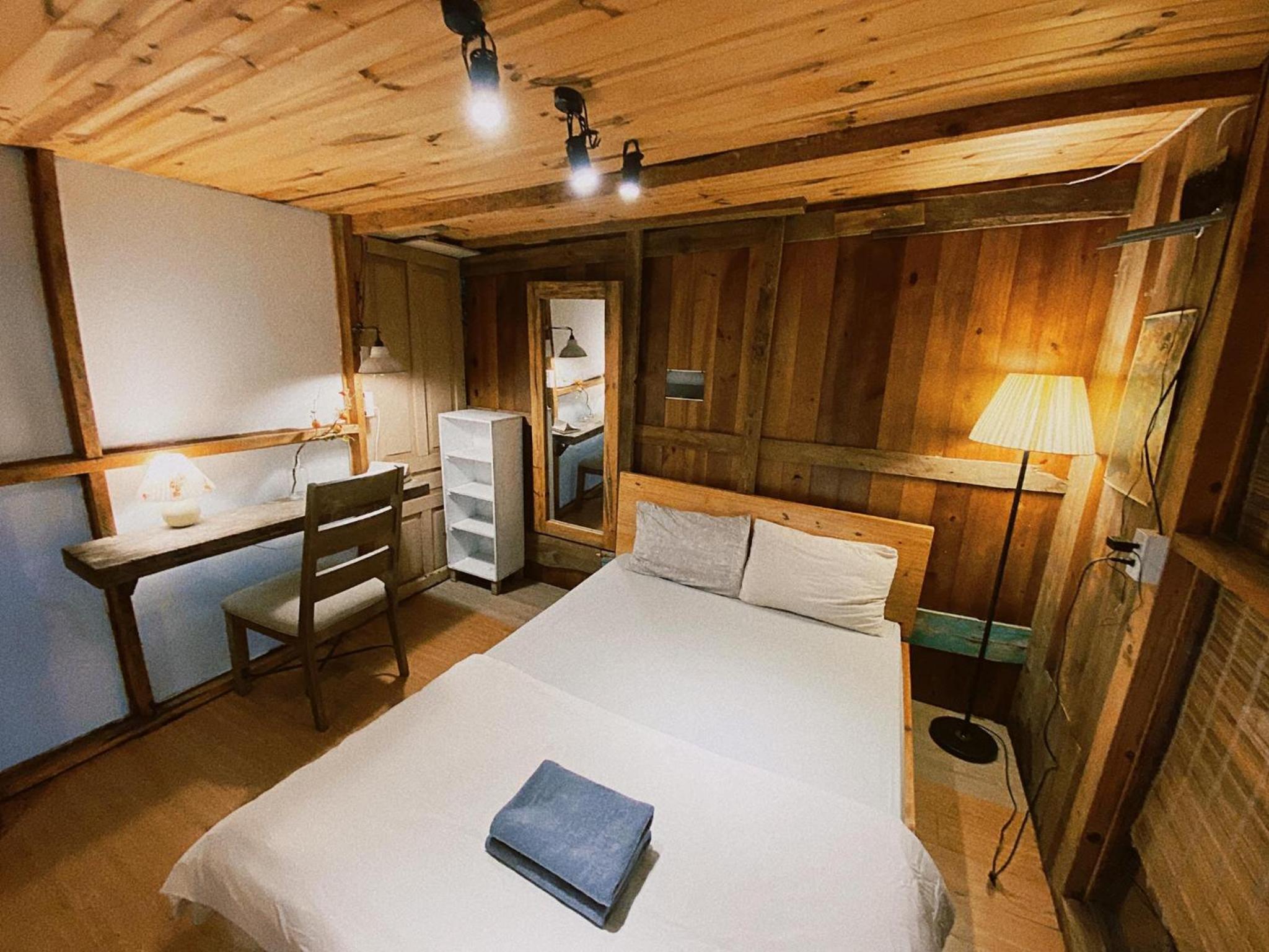Mình book phòng 3 người dưới 1 giường đôi trên gác giường đơn . Phòng dưới cũng ok trên gác thì nóng ngộp hơi bụi , nên mình chọn book thêm 1 phòng khác ( tuỳ bên host cũng có đề nghị đổi phòng cho mình)