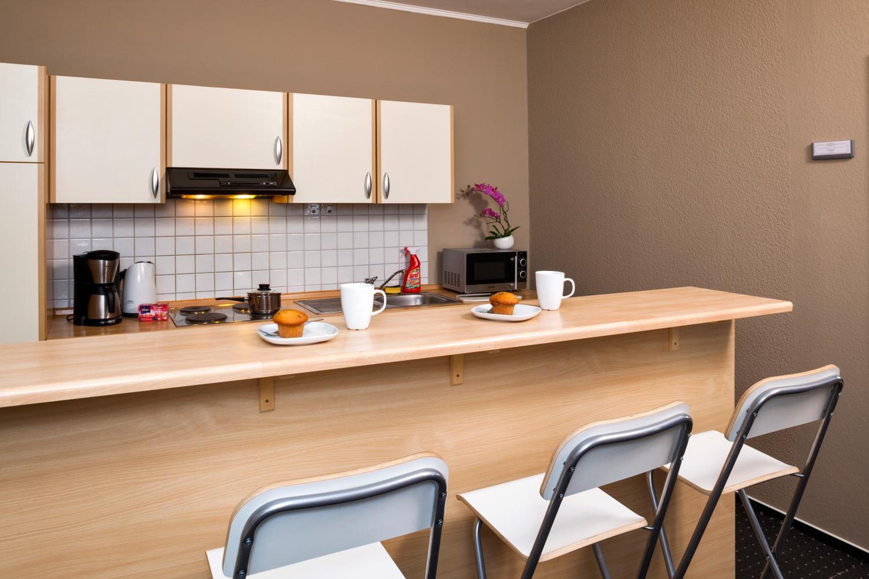 We had a weird stay. Once we opened the door of the Bett-4you apartment, there were lots of boots and shoes on the entrance, about 5 men cooking and watching soccer. We felt like entering at someone's house and interrupting. Even though these men were friendly, it was a weird situation. We believe they were employees of the same company. Plus the building seemed to be different apartments from different owners.