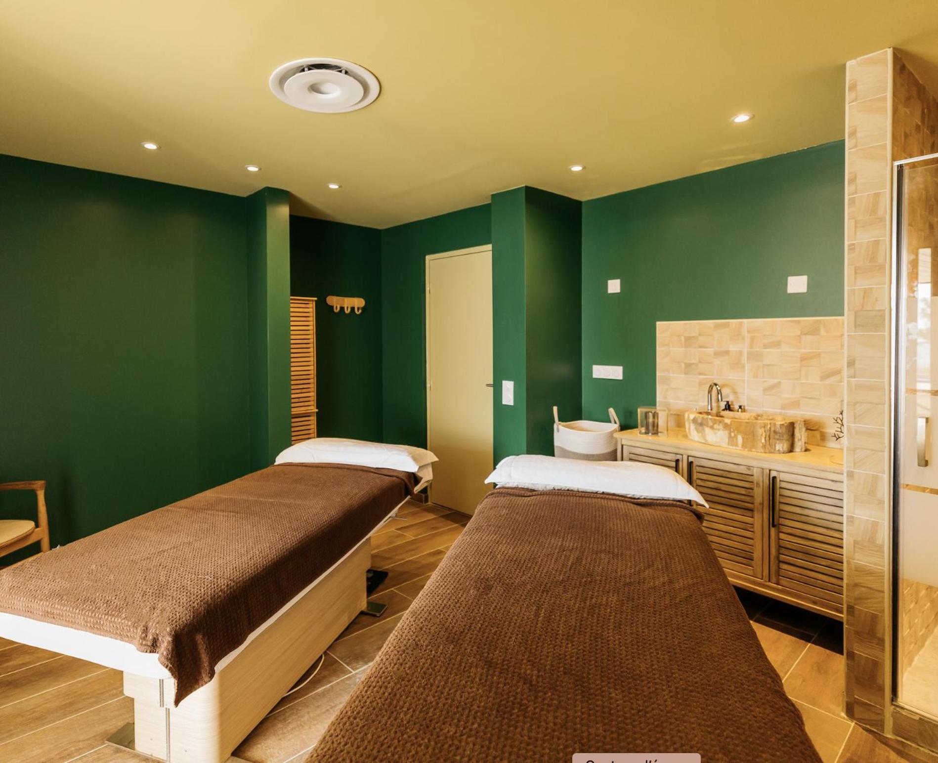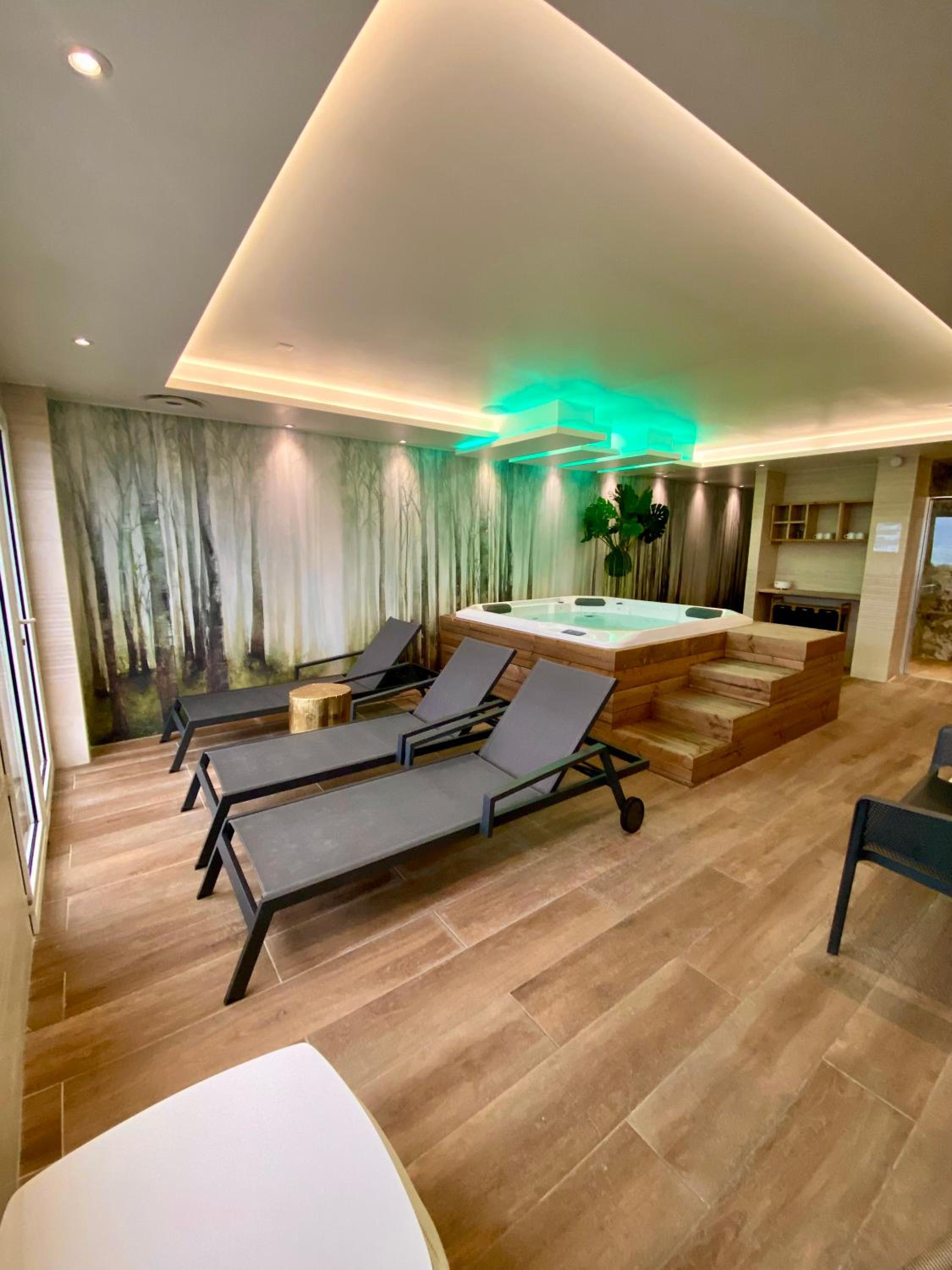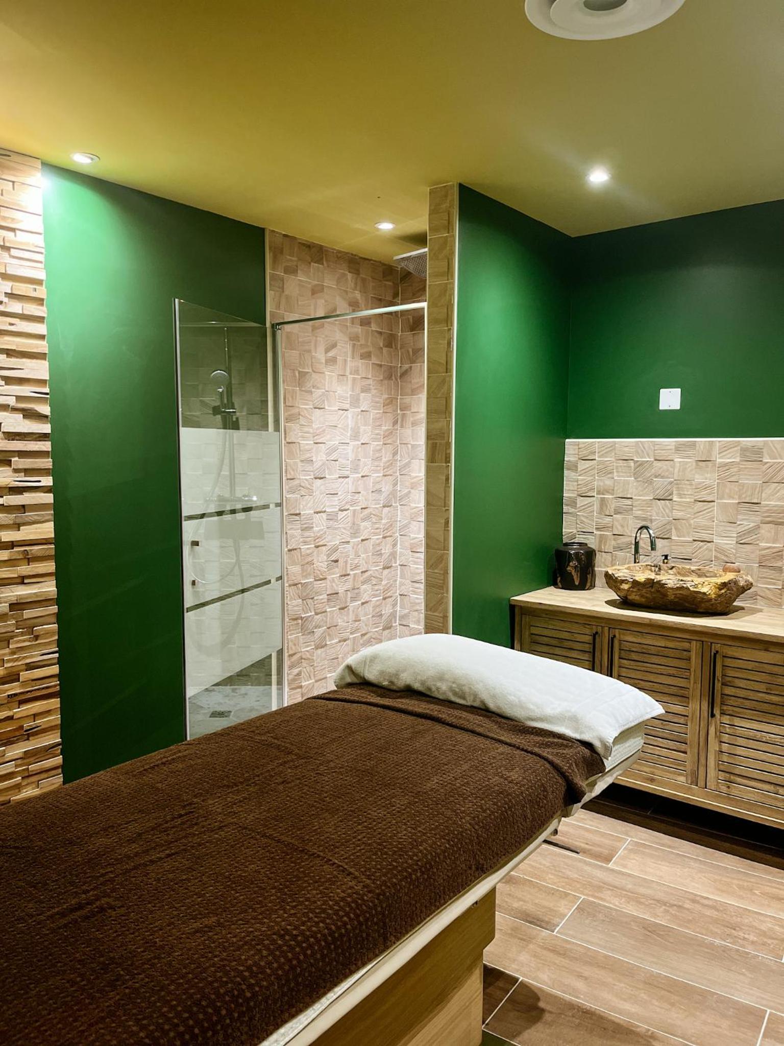 Indulge in personalized treatments at Estime&Sens spa, featuring treatment cabins with sea views, hammam, sauna, jacuzzi, and more for a rejuvenating stay.
